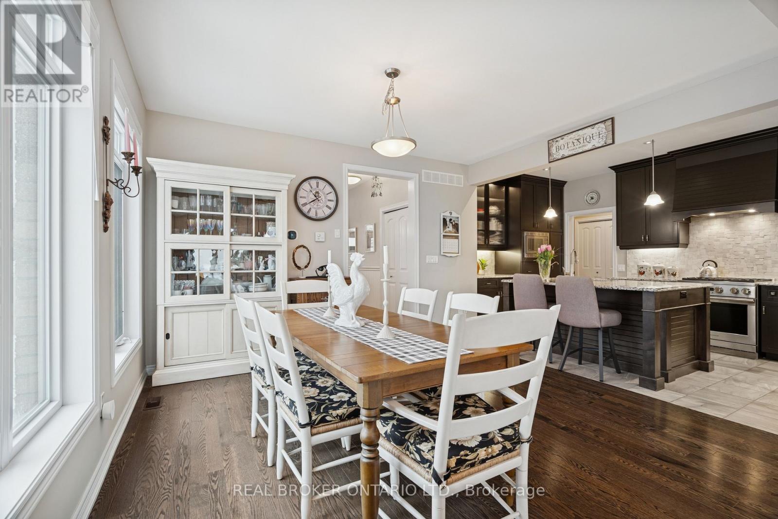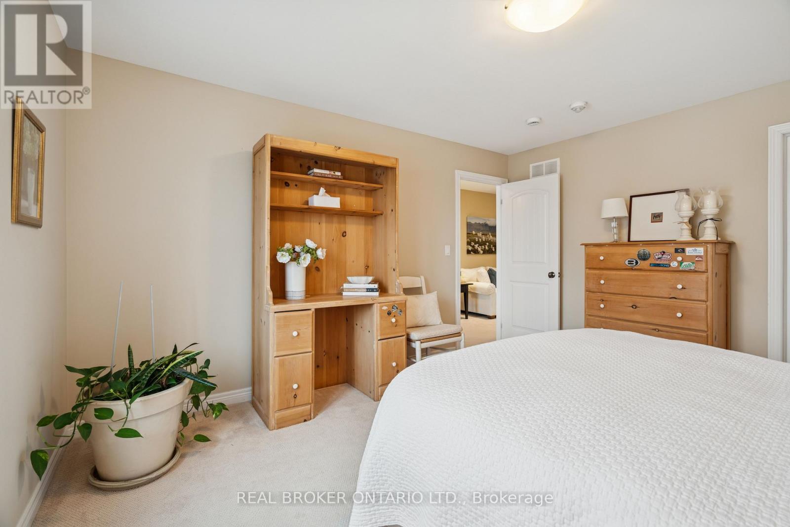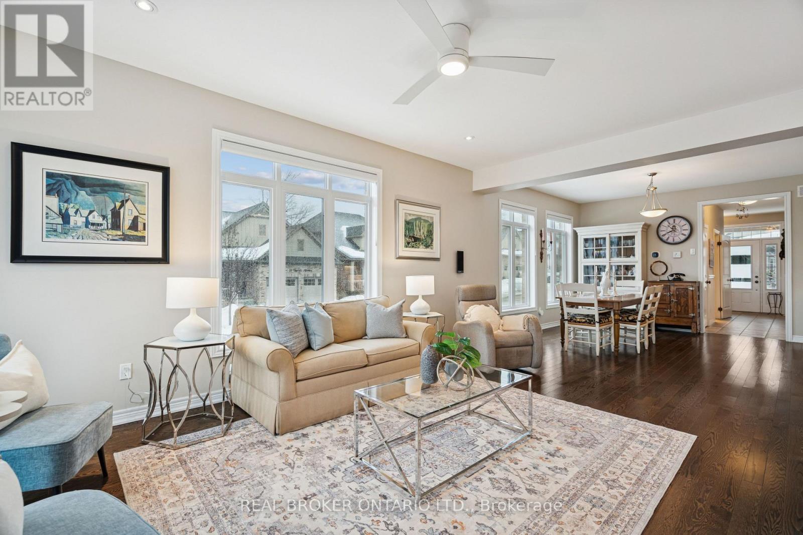Welcome to peaceful, low-maintenance living in one of Rockwood's most desirable communities. This beautifully maintained 2016 bungaloft offers 1,888 sq ft above grade with main-floor living designed perfectly for those who want comfort without compromise. The main floor features rich hardwood floors and a spacious primary retreat complete with walk-in closet and a luxurious 5-piece ensuite. The bright, open-concept kitchen showcases granite countertops, an oversized centre island, extended cabinetry, stainless-steel appliances, and a gas stove, ideal for effortless entertaining or quiet mornings at home. The kitchen flows seamlessly into the dining area with hardwood flooring, pot lights, and a large picture window. The adjoining living room features hardwood floors, a cozy gas fireplace, abundant natural light, and a walk-out to the raised deck. A perfect space for relaxing or hosting family gatherings. Convenience continues with main-floor laundry, direct garage access, and a 2-piece powder room. Upstairs, the loft provides a welcoming family room with pot lights and a skylight, ideal for guests or a reading retreat. A spacious bedroom with walk-in closet and 4-piece bathroom completes the level. The finished basement offers a recreation room with above-grade windows, a third bedroom with double closet, and a large unfinished area with above-grade windows ready for your future vision. Major updates include a new furnace in 2025 and new rental hot water heater and water softener in 2026. The monthly common element fee of $165.00 covers road maintenance, snow clearing except driveways, sidewalks, landscaping and berm maintenance, allowing you to enjoy truly low-maintenance living. Located minutes from Rockwood Conservation Area, scenic walking trails, charming downtown Rockwood shops and restaurants, and an easy commute to Guelph or Acton GO Train, this home offers peaceful surroundings without sacrificing convenience. (id:4555)