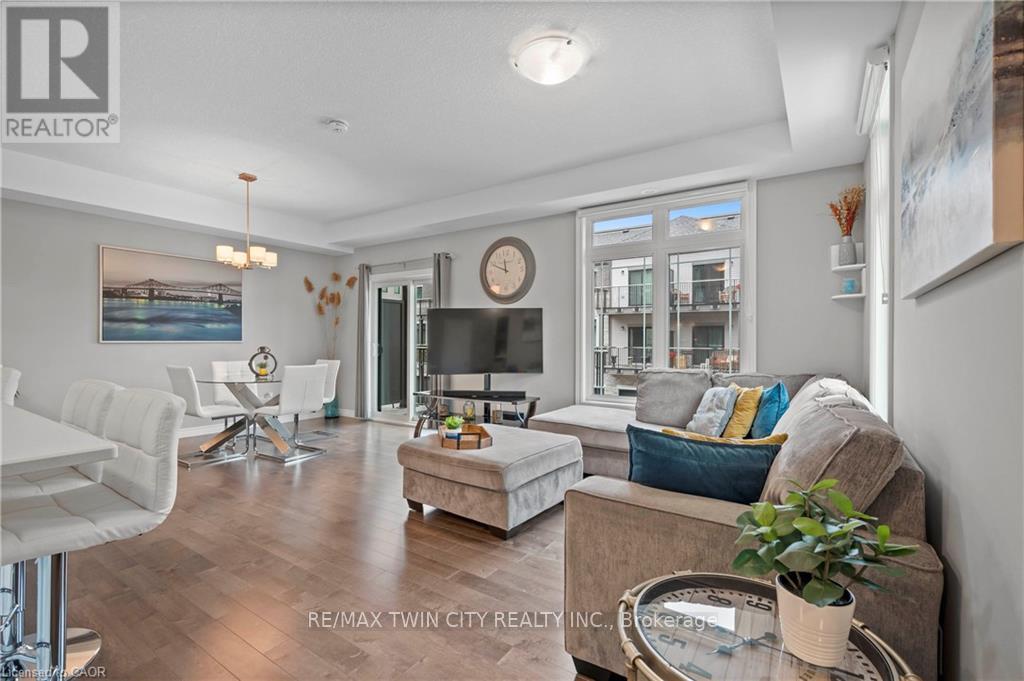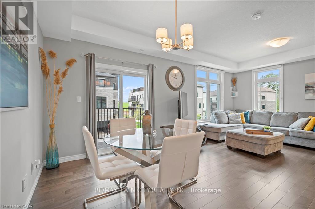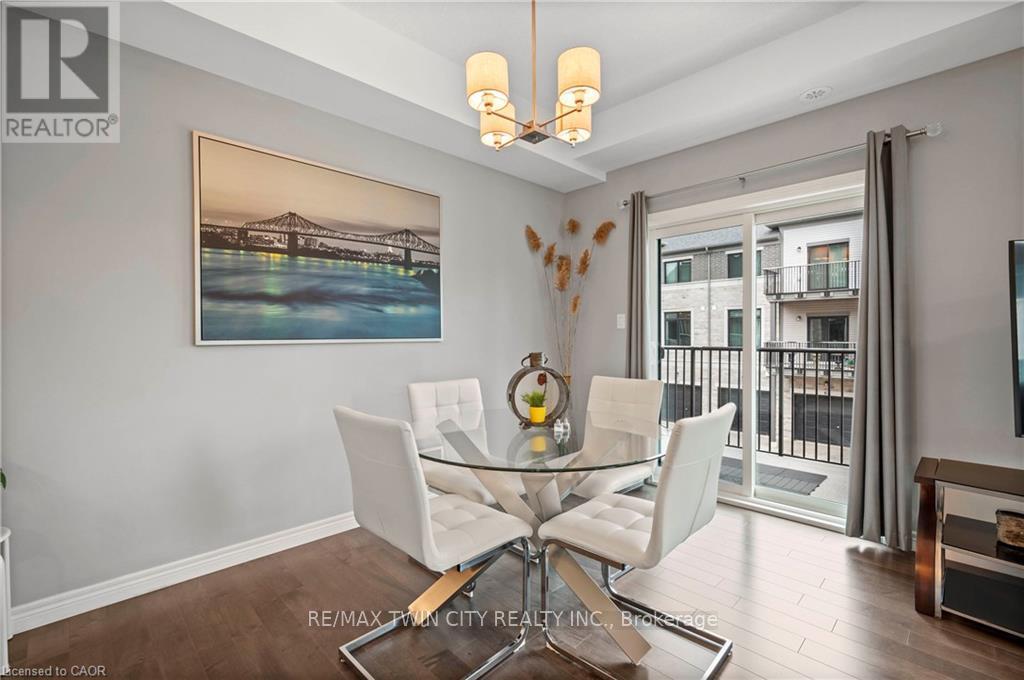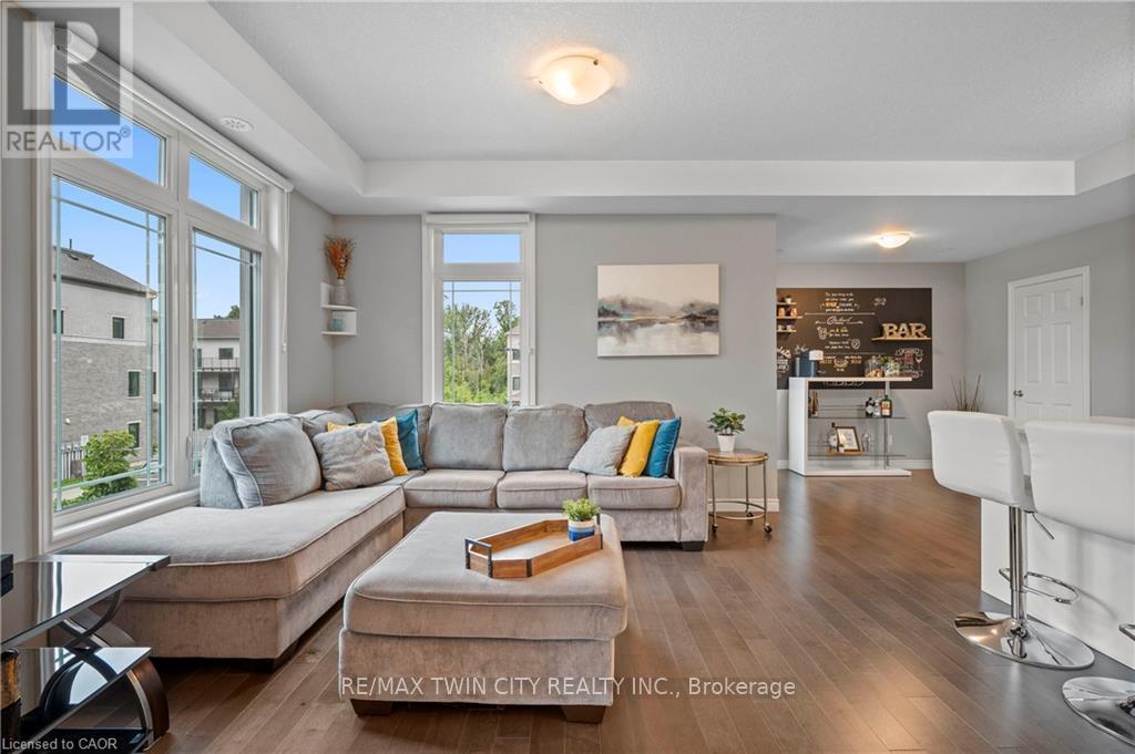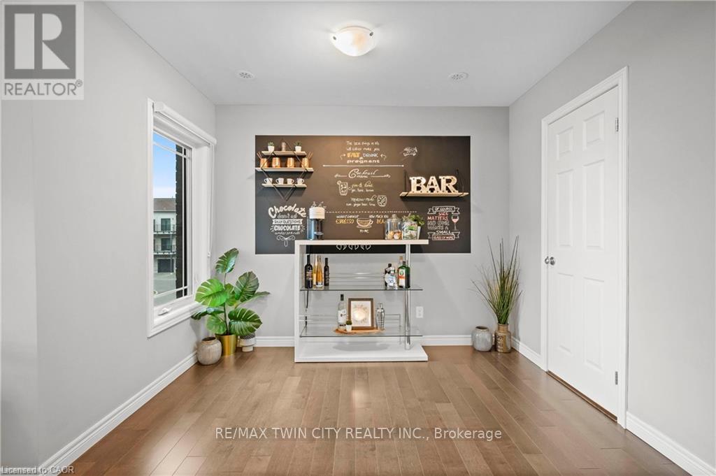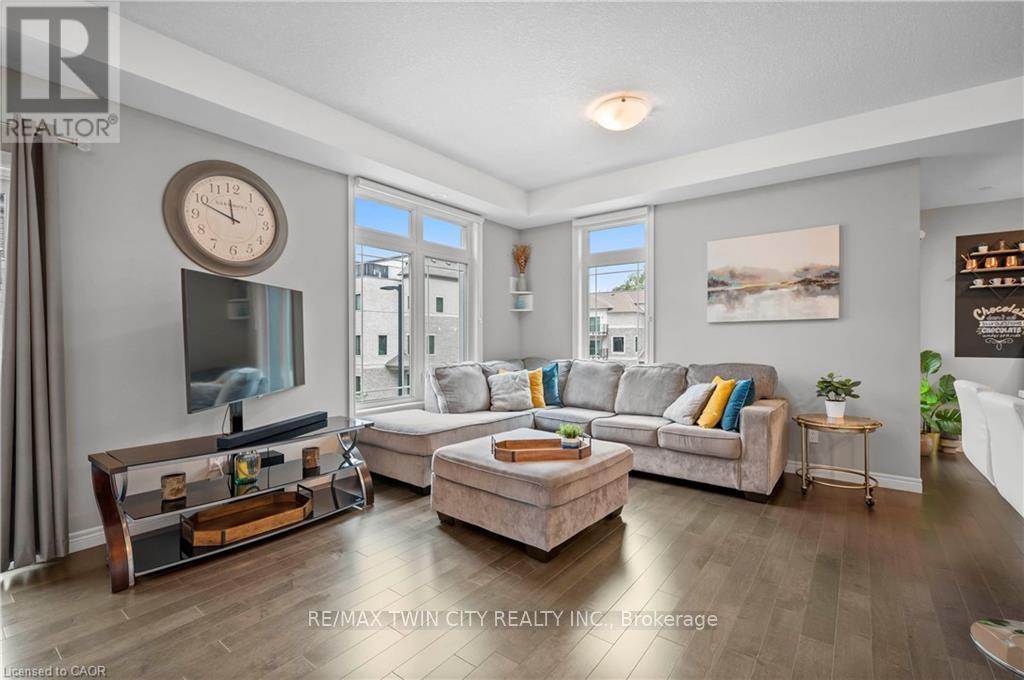 Welcome to 27-107 Westra Dr, featuring the stunning Soho Floorplan, the largest design on-site, & a rare 3 bedroom, 3 balcony setup with over $20,000 in upgrades. Nestled on a quaint street in a quiet, family-friendly neighborhood, this home offers a perfect blend of elegance & functionality. Upon entry, you'll be welcomed by a spacious family room adorned with hardwood floors. Access to laundry facilities for your ease & storage. The breathtaking kitchen boasts upgraded white cabinetry, a stylish back splash, & striking stone counter tops. High-end SS appliances elevate the cooking experience, while the enormous center island serves as a focal point for casual dining or entertaining. The adjacent sun-drenched dining area is perfect for formal gatherings. The living room, also with solid hardwood floors, flows seamlessly from the kitchen & dining area. Sliding doors lead to a serene balcony, ideal for unwinding or hosting outdoor gatherings. A convenient powder room completes this level. Upstairs, the spacious primary bedroom features a double closet & sliding doors to a private balcony. Two additional generously sized bedrooms offer plenty of closet space. The pristine 4-piece bathroom includes a shower/tub combination & a sleek vanity with stone counter tops & upgraded white cabinetry. On the top floor, a bonus room awaits, perfect for an office or workout area. Step out to your spectacular private rooftop patio, perfect for relaxation & entertaining. Located just steps from Ellis Creek Park & Mitchell Park, enjoy picturesque walking trails. The West End Community Centre, with its skating rinks & pool, is also nearby. Families will appreciate the proximity to Mitchell Woods Public School. Additionally, multiple shopping centers, including Costco & Zehrs, as well as various dining options, are conveniently close by. This home is a perfect blend of luxury & convenience, making it an ideal choice for families. Don't miss the opportunity to make it yours! (id:4555)