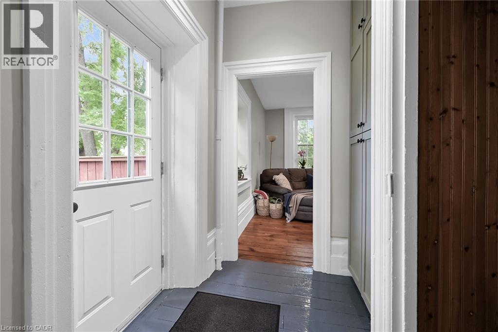 Timeless 1890 Stone Farmhouse on 3.66 Scenic Acres! Step back in time without sacrificing modern comfort in this lovingly maintained 1890s stone and siding country charmer. Set well back from the road for ultimate privacy, this home greets you with a quaint covered front porch overlooking rolling green lawns and a quiet, established neighborhood. Inside, the home oozes character with soaring ceilings, rustic hardwood floors, and massive original trim. You’ll love the cozy window seats and vintage-style windows that flood the home with natural light. The main level offers a spacious country kitchen, a cozy living room with a natural gas fireplace, and a convenient back mudroom. Upstairs features 3+1 bedrooms, two were meticulously restored down to the studs in 2024. Dual staircases lead to a private bedroom loft and a primary suite with a walk-in closet and ensuite privilege. The lower level features an on-grade walk-out with a large rec room—ideal for a home office or business—plus a built-in garage/workshop. Rare opportunity here! The 3.66-acre parcel includes a legally separate front lot that permits a second dwelling—perfect for multi-generational living or an investment build! Discover the perfect blend of historic soul and modern updates with serene farm fields as your only rear neighbors. (id:4555)