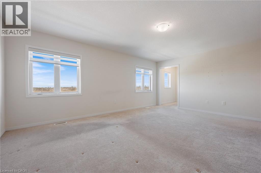 Welcome to 153 David Street in the growing community of Hagersville. This lovely 5 bedroom, 5 bathroom two-storey home was built in 2021 by Empire Homes and is located in the sought-after Livingston neighbourhood. This open concept home offers 3,001 sq ft of exceptional versatility, including a self-contained main floor in-law suite complete with its own kitchenette, living room, bedroom with a walk-in closet, and a 4pc ensuite bathroom. Ideal for multi-generational living or private guest accommodations. The heart of the home is the spacious eat-in kitchen, complete with quartz countertops, and a centre island, flowing seamlessly to sliding doors that open onto a peaceful backyard overlooking tranquil pond and green space views, an ideal setting for both everyday living and entertaining. The inviting living room is anchored by a cozy gas fireplace, engineered hardwood flooring, and large, bright windows. A striking solid oak staircase with modern metal pickets adds warmth and contemporary elegance to the home. Upstairs, you’ll find four generously sized bedrooms, all with walk-in closets, and ensuite baths for each bedroom except one, which features ensuite privilege. Convenient second-floor laundry, along with plenty of storage closets, is a huge bonus. The unfinished basement, with a rough-in bath, provides endless future potential to customize to your needs. Complete with 200 AMP service, a double car garage, and parking for two additional vehicles, this home combines space, comfort, and modern convenience in a family-friendly setting known for its small town charm, while remaining within easy driving distance to Hamilton, Port Dover, and the GTA, making it an exceptional place to call home. (id:4555)