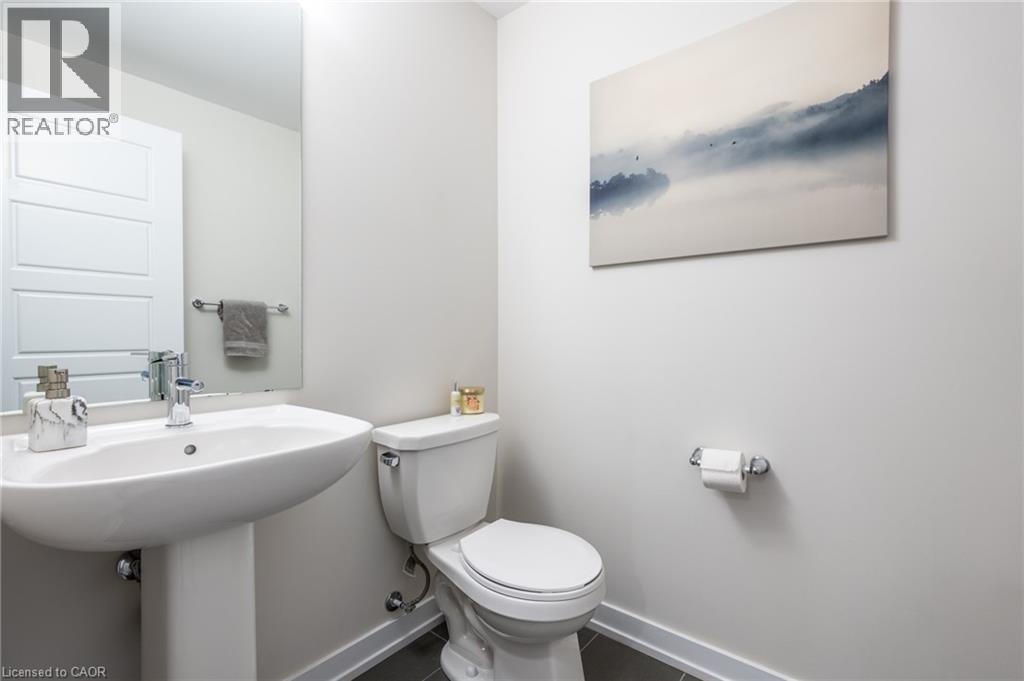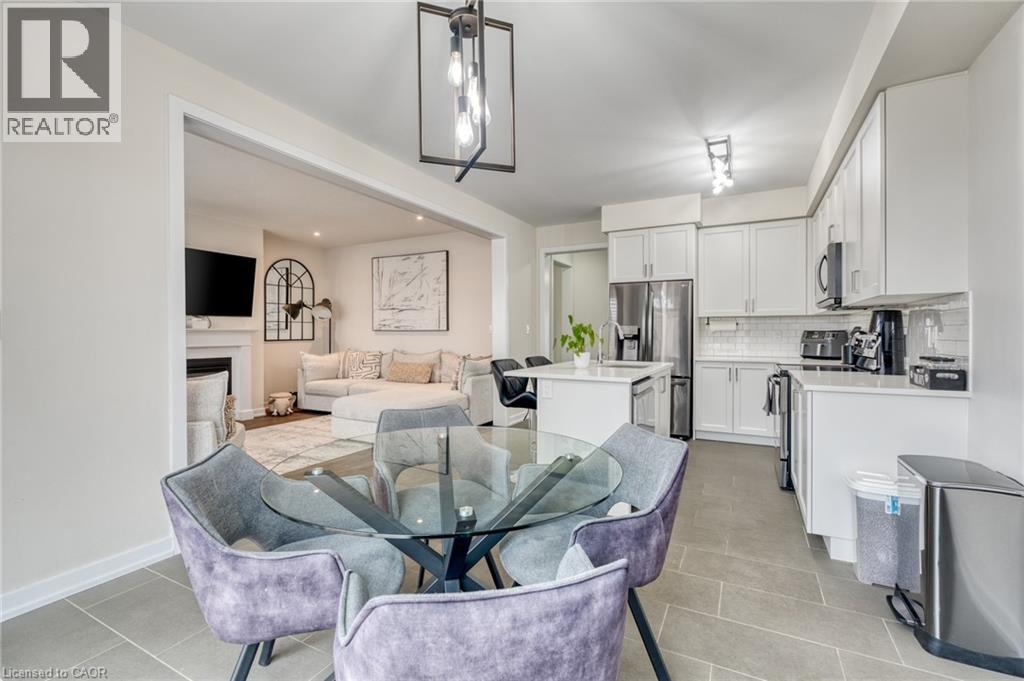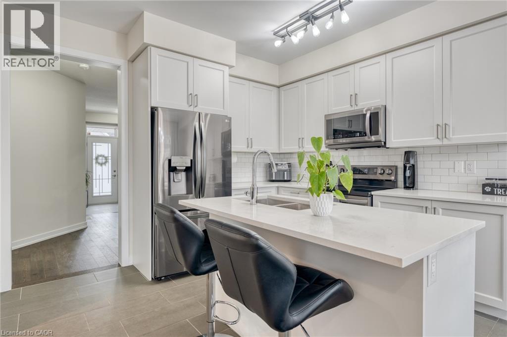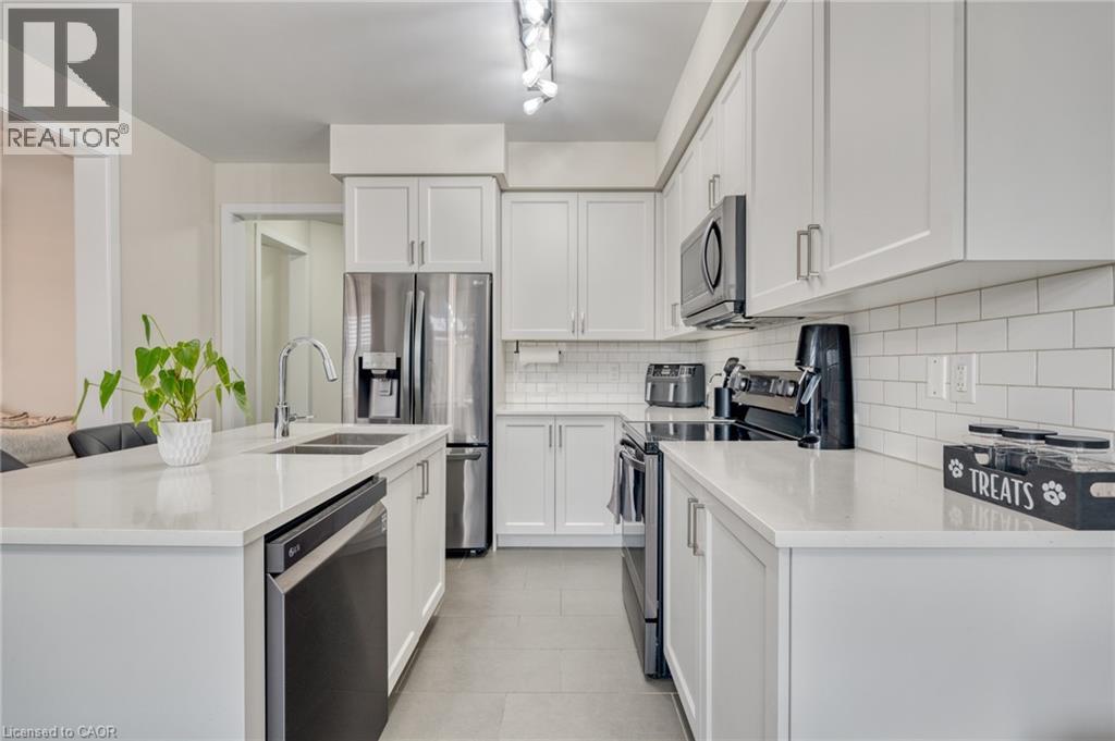 Situated in a quiet neighborhood near the Grand River, this 1,893 square foot home is less than two years old and has been well-maintained. The interior features nine-foot ceilings and hardwood flooring across the entire main level, complemented by a matching oak staircase. The kitchen is finished with quartz countertops, dark stainless steel appliances, and shaker cabinetry. In the adjacent great room, large picture windows with California shutters provide natural light, and a gas fireplace serves as a central point for the space. The second level includes four bedrooms and a dedicated laundry room for convenience. The primary suite serves as a quiet retreat, featuring a walk-in closet and an ensuite bathroom with a frameless glass shower. For those looking for additional space, the large basement remains unfinished and is ready for a personal layout or extra storage. The exterior includes an oversized garage and a driveway with space for three vehicles. This location offers a practical balance of nature and amenities, with easy access to the river trails as well as local schools, grocery stores, and medical services within the Caledonia community. (id:4555)