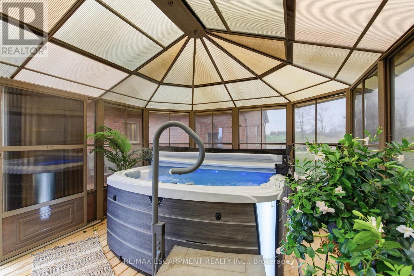 Looking for modern, one level living? Need highway exposure for a home biz? Want a beauty view from a GOLFER'S prime property? Host a 2026 wedding on your sprawling property! 5 year new, custom beauty bungalow by Prominent Homes in 2020, on 1 acre. 3 bedrooms on the main level + a 4th + possible 5th and 6th in the professionally finished basement w/all egress windows. Plenty of flex space in this expansive bungalow. 6" walls throughout. Accessible doorway widths.10' ceilings on both levels. Convenient main floor laundry. Primary bedroom w/ensuite + main full bath + full bath in basement. Insulated sunroom off the kitchen, perfect for entertaining! Leading to a beautiful poured concrete patio, w/gazebo and hot tub! Professionally installed patio includes combo grass/concrete, fully fenced area to keep your fur babies and little humans safe. Parking for 10+ on the impressive concrete driveway, room for 3 more in the dreamy attached 3 car garage or enjoy the extra storage space! Country living close to town for all your shopping needs. Surrounded by farm fields, nature, and directly across from the 16th hole of Cayuga Golf Club! Convenient Highway 3 access and visibility, be among the first to be plowed out! This property has it all! (id:4555)