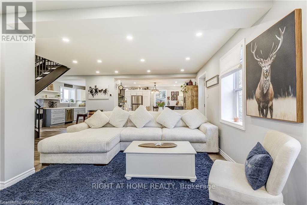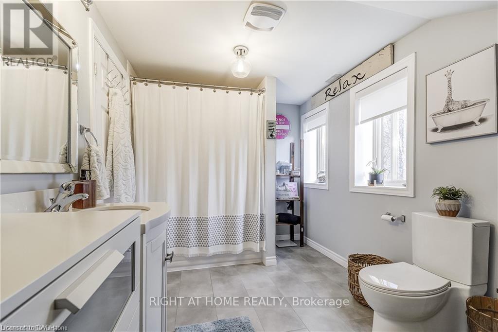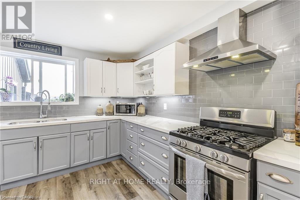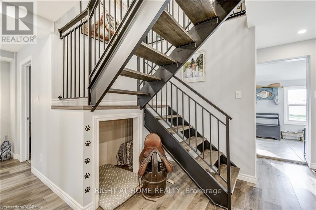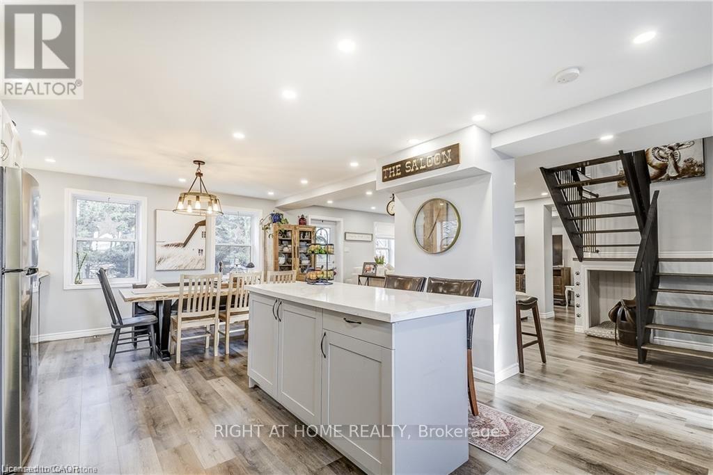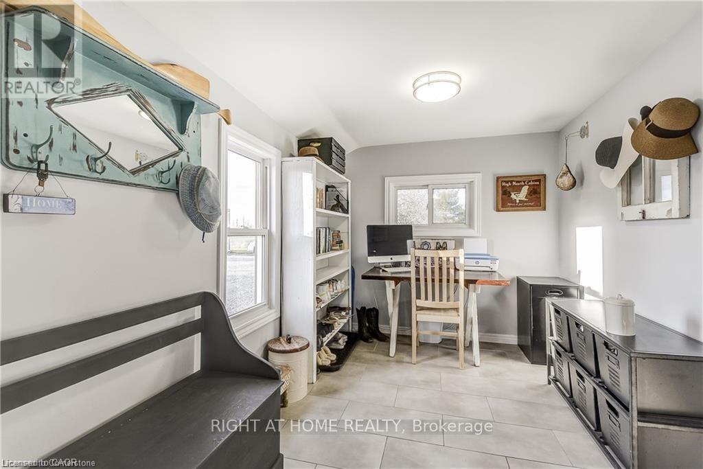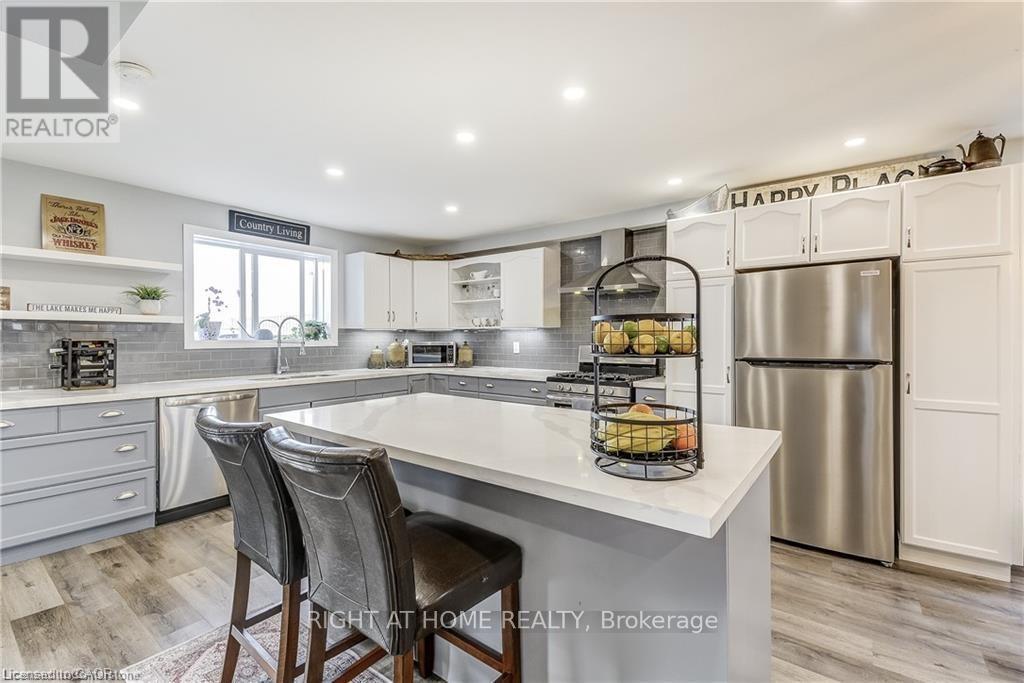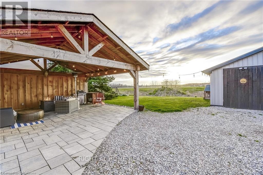 Welcome home! Renovated Century Farmhouse, where character and charm meets modern living! Nestled in a quiet and desirable area on 0.92AC in rural outskirts of Hagersville surrounded by farmland and mature treed setting. Step inside and be greeted by the warmth of the abundance of natural light and desirable open concept floor plan. With approx. 1800sqft of living space there's ample room for everyone to unwind, entertain, and spend time together. The heart of the home lies in the spacious kitchen complete with stone counter tops, a large island, and stainless-steel appliances. Main floor also features a renovated 3pc bathroom, spacious living room, dining space and convenient laundry/mud room. Second levels offers 3 bedrooms and a renovated 4pc bathroom Once you walk out to the expansive yard, you'll not only enjoy the peace and tranquility but great entertainment amenities such as fire pit, lovely large gazebo perfect to relax and sip your morning coffee or gather in the evening to watch some outdoor movies. This property also features a detached garage, parking for up to 10 vehicles, unfinished partial basement with dirt floor that could be used for storage, hydro one updated from road to house, custom blinds in bedrooms/bathrooms and living room, laminate flooring throughout water pump and updated 200amp. Don't miss this amazing opportunity to live in this beautiful community approx. 30mins to Hamilton/Dunnville/Simcoe, 15mins to Lake Erie/Grand River. BASEMENT IS FOR STORAGE PURPOSES ONLY. (id:4555)