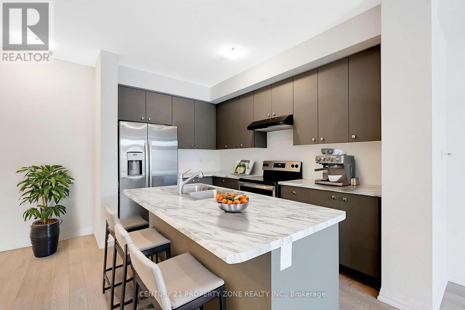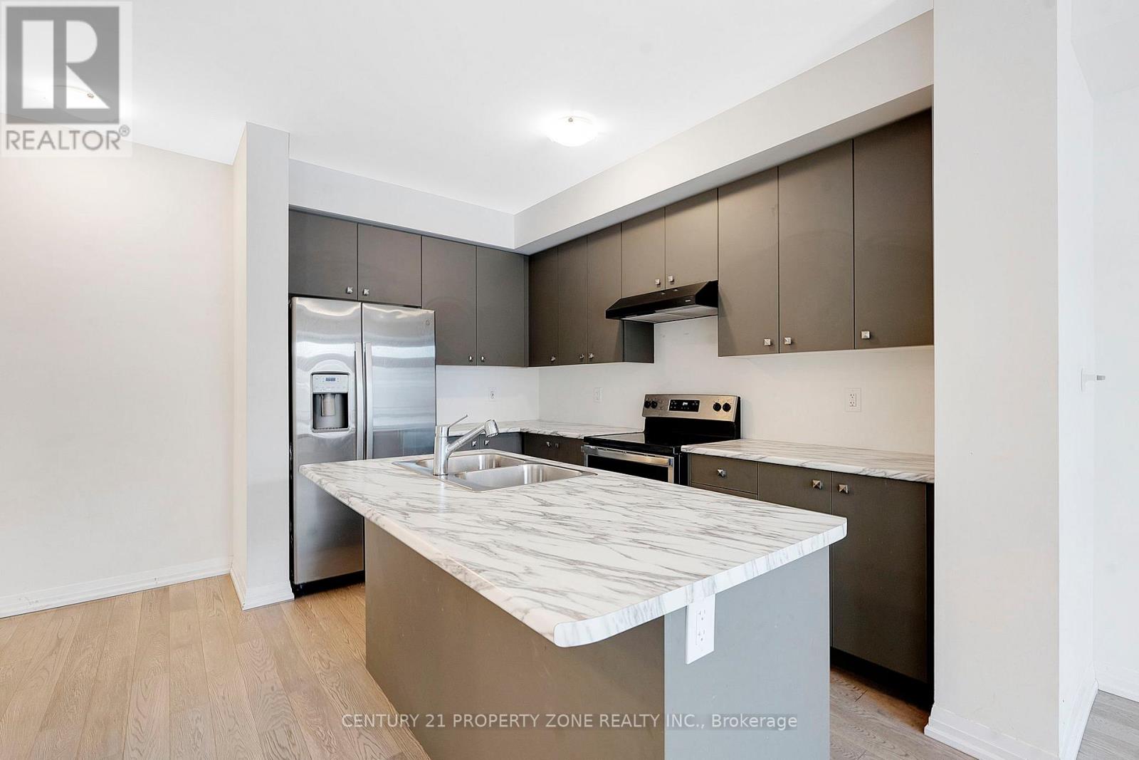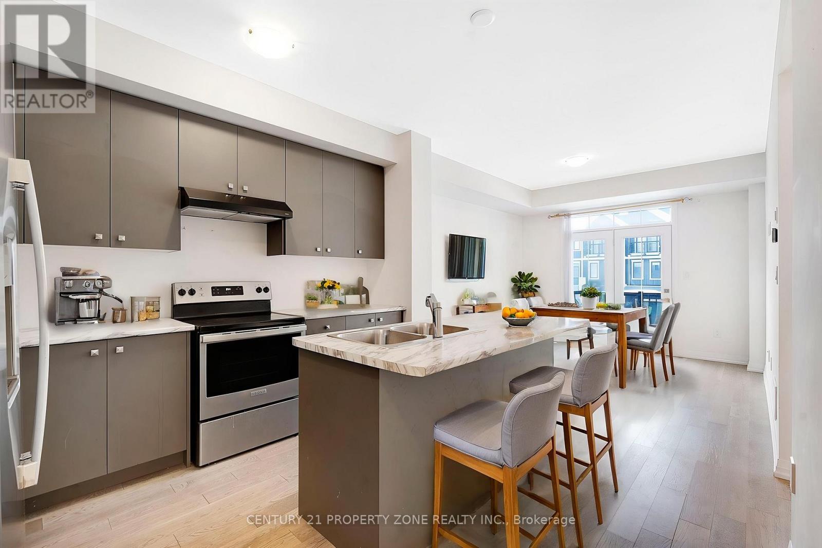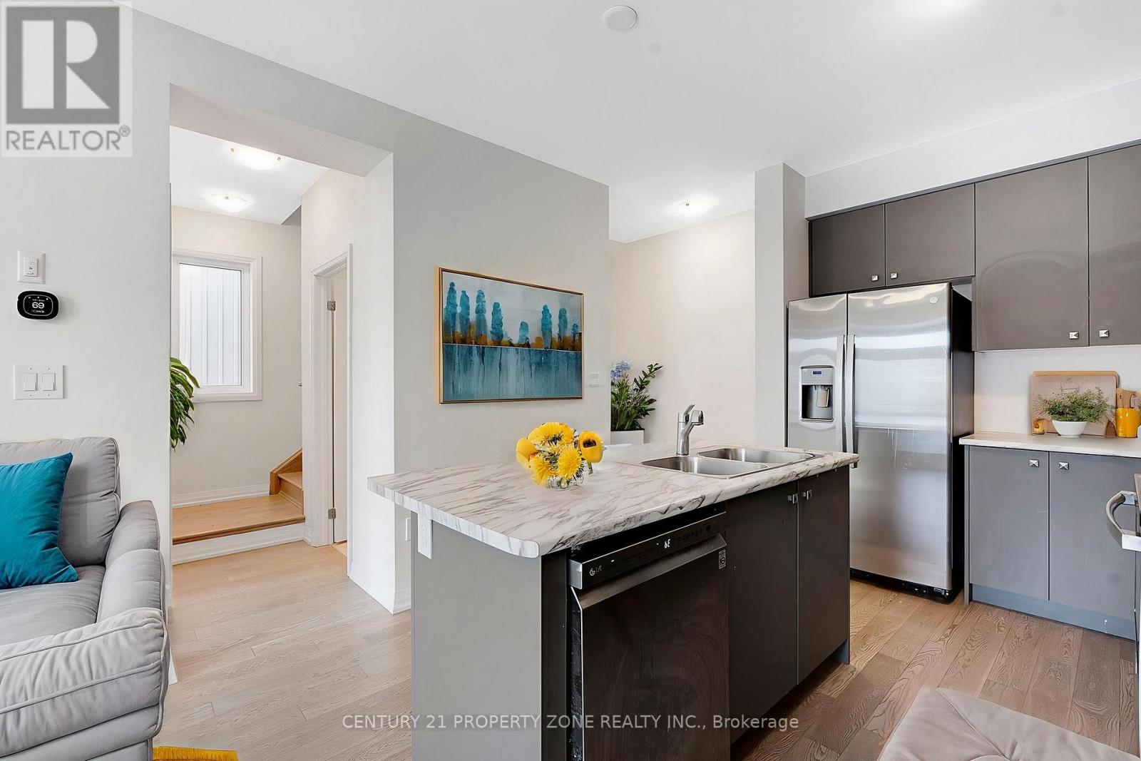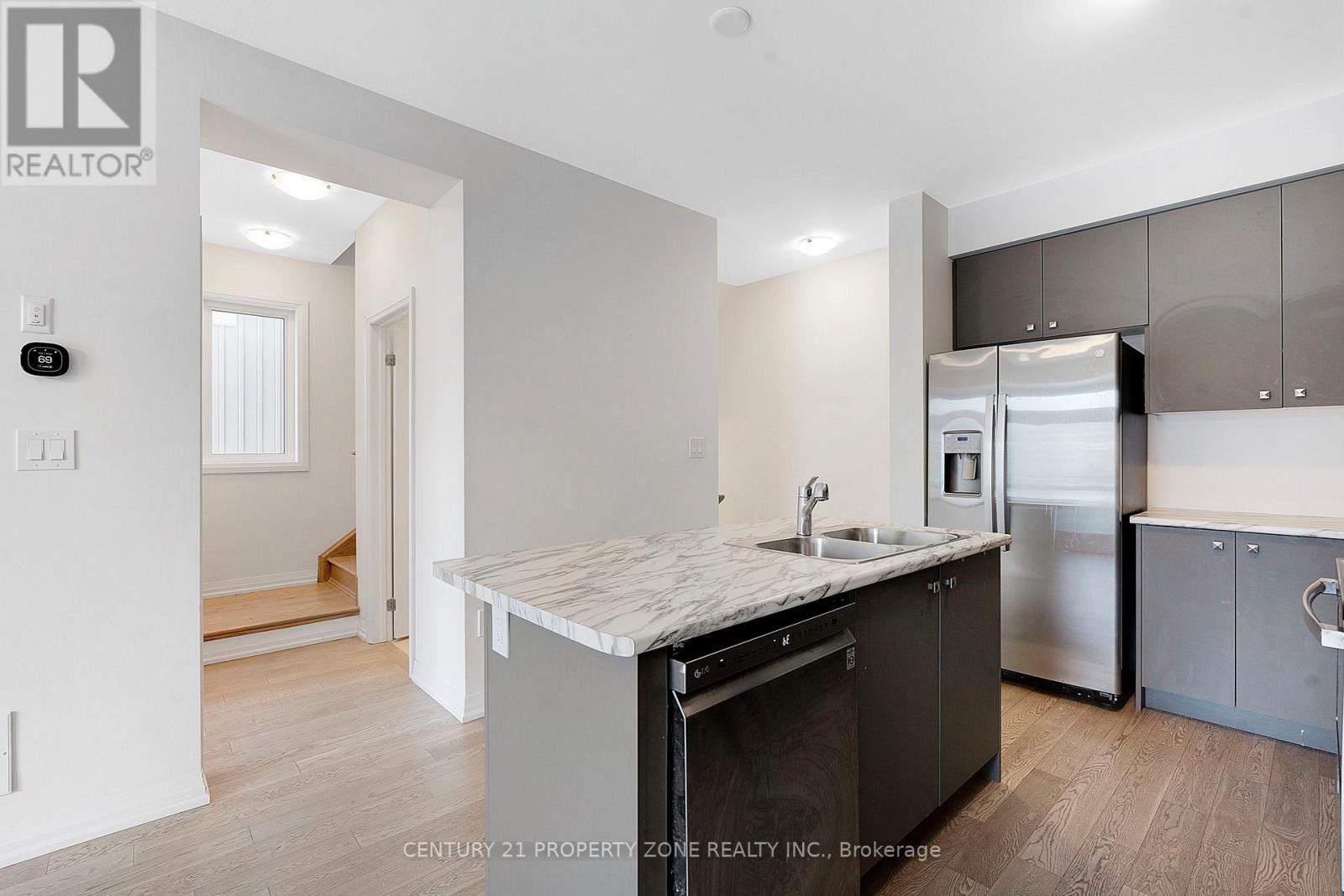 Welcome to this stunning 3-storey *freehold townhouse* located in the master-planned community of Caledonia. This modern home offers 3 spacious bedrooms and 1.5 bathrooms and features a *double-door entrance* that creates a grand first impression. The *open-concept* family and dining area is bright and airy and includes a *private balcony*, perfect for relaxing or entertaining. One bedroom is conveniently located on the main floor, ideal for guests or a home office. The home showcases a full brick exterior, *9-foot ceilings* on the main level, and elegant oak-stained hardwood stairs, adding to its contemporary appeal. The kitchen is equipped with *stainless steel appliances*, offering both style and functionality. On the third floor, the *primary bedroom* features a walk-in closet, semi-ensuite bath, and its *own private balcony*, creating a true retreat, while the second bedroom is generously sized with its own closet. Additional highlights include a prime location close to neighborhood plazas and major highways, providing exceptional comfort and convenience. (id:4555)