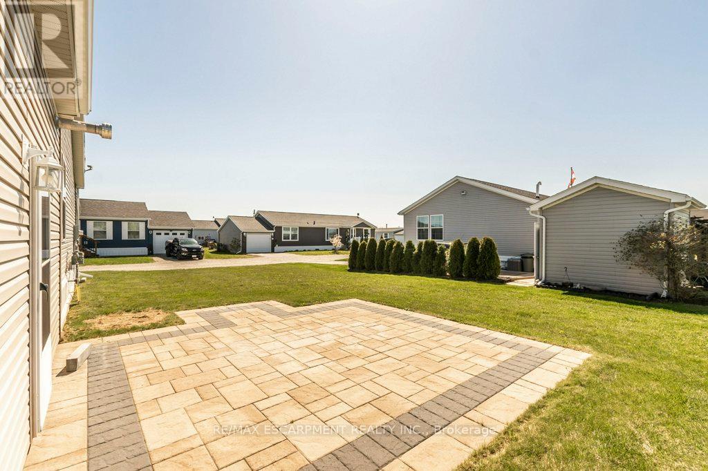 Ideal for downsizers or retirees, this well-maintained corner-lot bungalow offers relaxed, low-maintenance living in a welcoming waterfront community near Lake Erie, appealing to fishing enthusiasts and those who enjoy being close to the water. The 1,066 sq. ft. home features 3 bedrooms, 2 bathrooms, and a wheelchair-accessible, open-concept layout designed for comfort and ease. The kitchen opens to a covered porch through a patio door and includes a natural gas BBQ hookup, ideal for casual outdoor meals. A standby generator provides added peace of mind. The insulated and heated double-car garage is well suited for hobbies, storage, or a workshop, with interior access to the home and a second door leading to the backyard patio. A double-wide driveway offers parking for up to four vehicles. Community amenities include organized social activities, an outdoor pool, optional dog park, and beautifully maintained common areas, perfect for evening walks and socializing with neighbours. The seller will include 3 months of maintenance fees for the buyer. (id:4555)