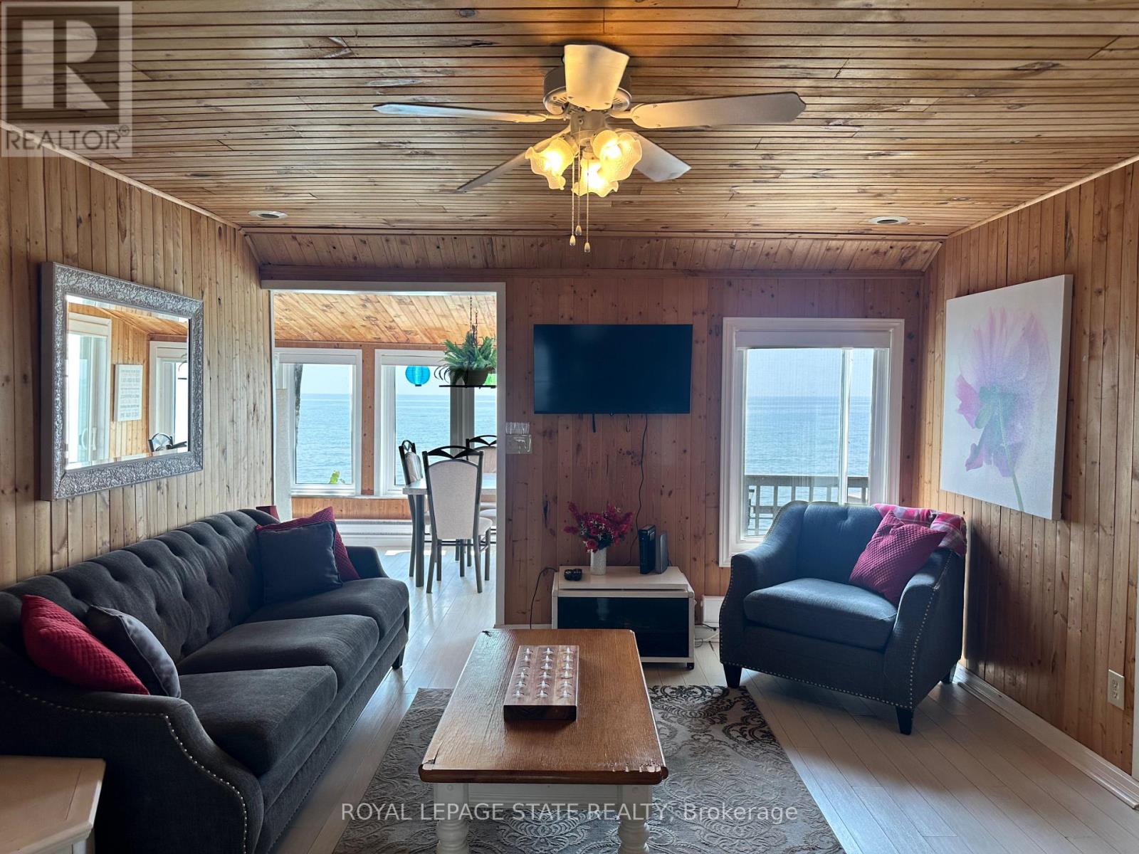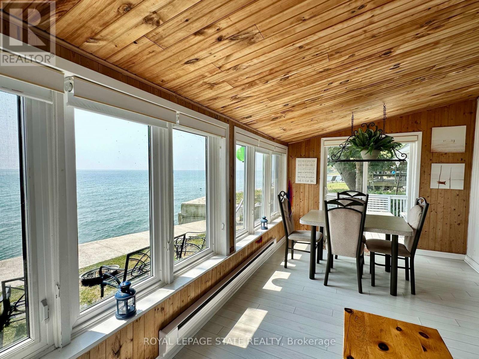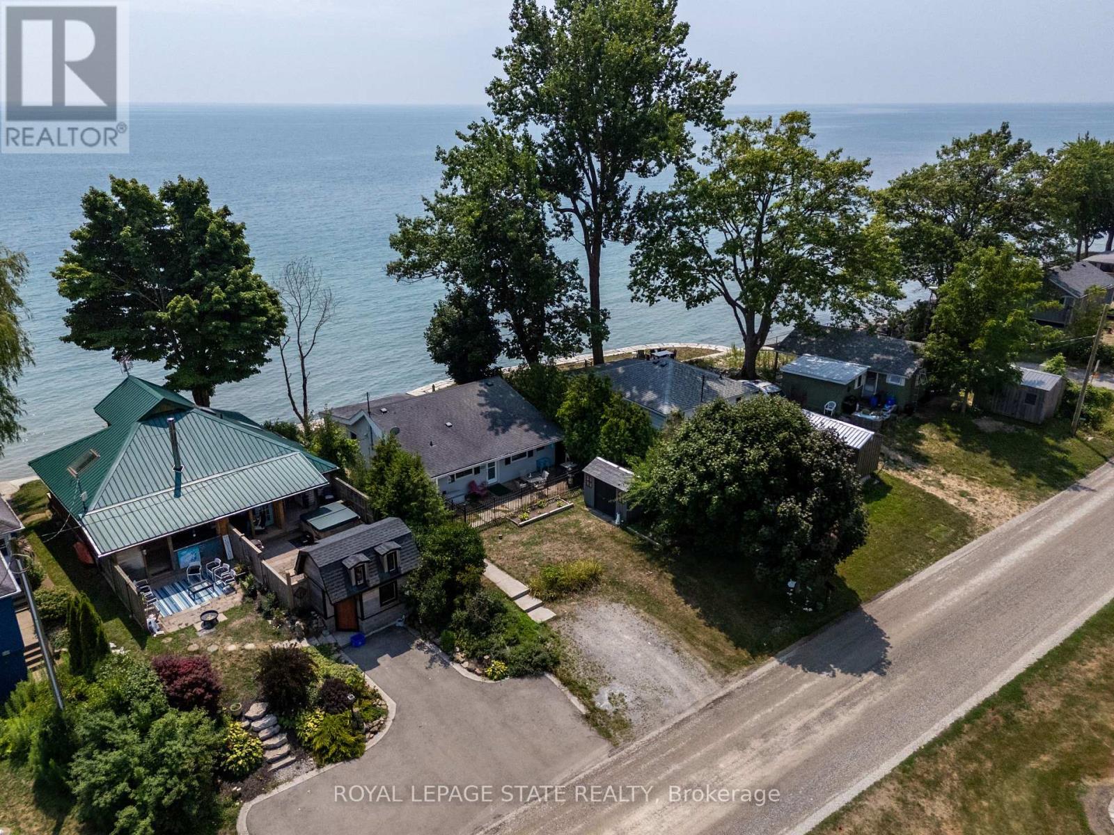 Peaceful Lake Erie retreat providing a rare blend of privacy, panoramic water views, and direct lakefront access. This 3-bedroom cottage features a spacious living area and a wall of lake-facing windows that fill the space with natural light and frame stunning views from sunrise to sunset. The property includes a garden shed for added storage, relaxing fire pit, and concrete steps leading down to the water. Located just down the road from Knight's Beach Resort and short drive to Dunnville, this is an ideal opportunity for a serene lakefront getaway. (id:4555)