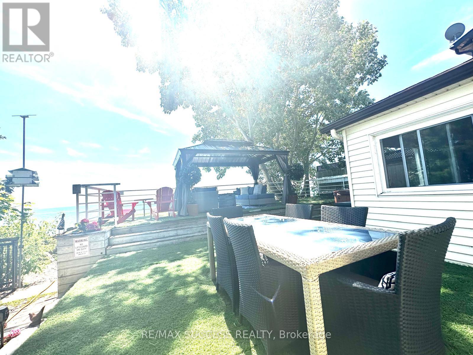 Wake up to panoramic, million-dollar views of Lake Erie in this beautifully maintained, year-round waterfront bungalow offering approximately 35 feet of private shoreline. This charming 2-bedroom retreat seamlessly blends relaxed lakeside living with thoughtful upgrades throughout.The open-concept interior features a cozy gas fireplace, large picture windows framing breathtaking water views, and an eat-in kitchen with stainless steel appliances. A spacious four-season sunroom with in-floor heating creates the perfect space to enjoy every season in comfort. Step outside to an impressive oversized two-tier steel-reinforced deck with hot tub, ideal for entertaining or unwinding by the water, then follow the path down to your private pebbled beach, protected by conservation-approved boulder walls.The property sits on high ground, and a stone crib system beneath the deck provides added shoreline protection and long-term peace of mind. Need extra space? A fully insulated, heated and air-conditioned bunkie with hydro and skylights offers excellent guest accommodation or flexible bonus space.Located in a peaceful lakeside community, yet within convenient driving distance to everyday amenities - approximately 20-25 minutes to Dunnville, 25-30 minutes to Welland (hospital, Seaway Mall, major groceries), and about 45-50 minutes to Niagara Falls for dining, shopping, and attractions.With low annual waterfront taxes and true move-in-ready condition, this exceptional property offers privacy, comfort, and lifestyle - a rare opportunity to own your own slice of Lake Erie paradise. (id:4555)