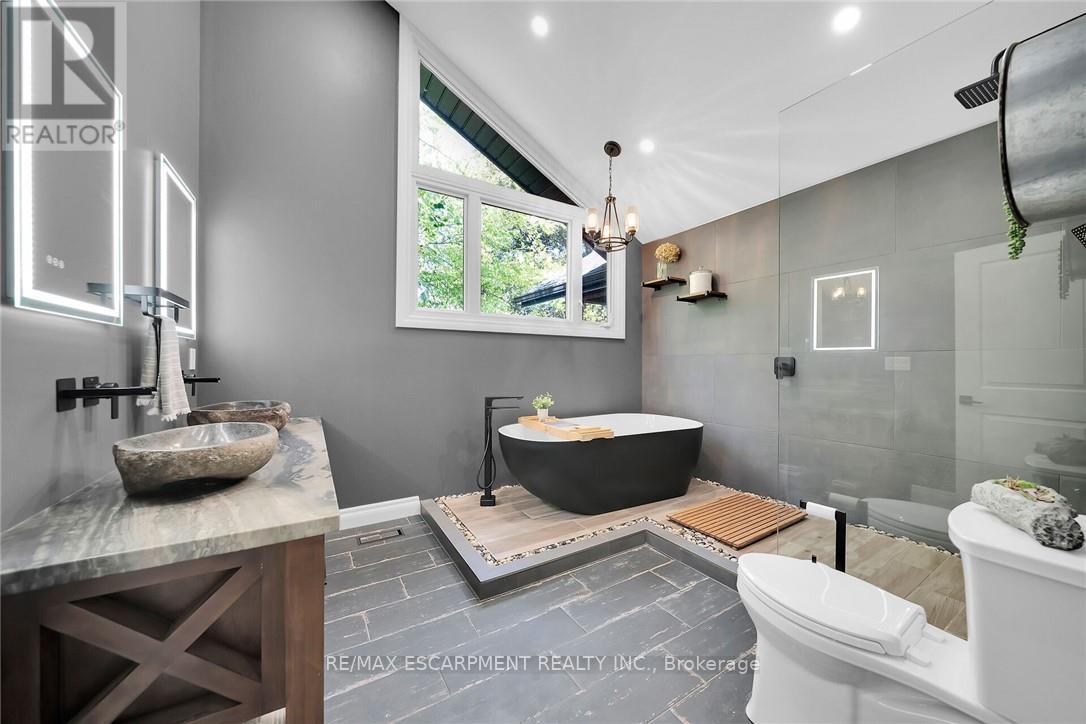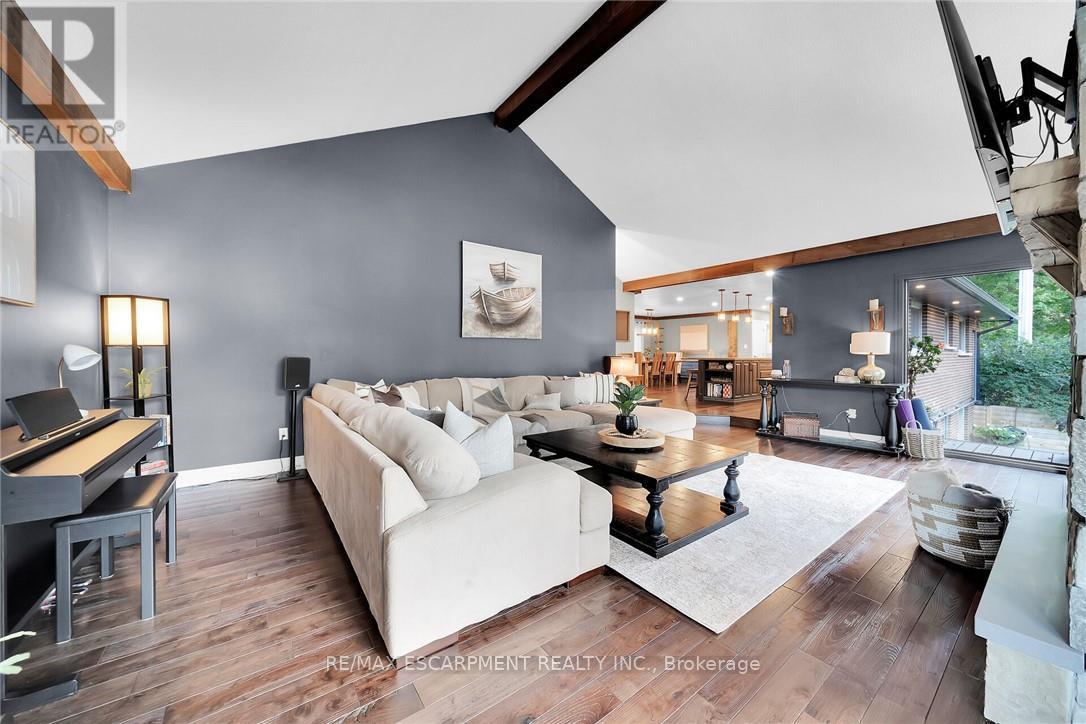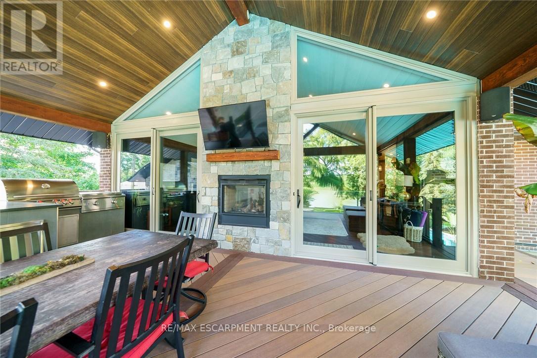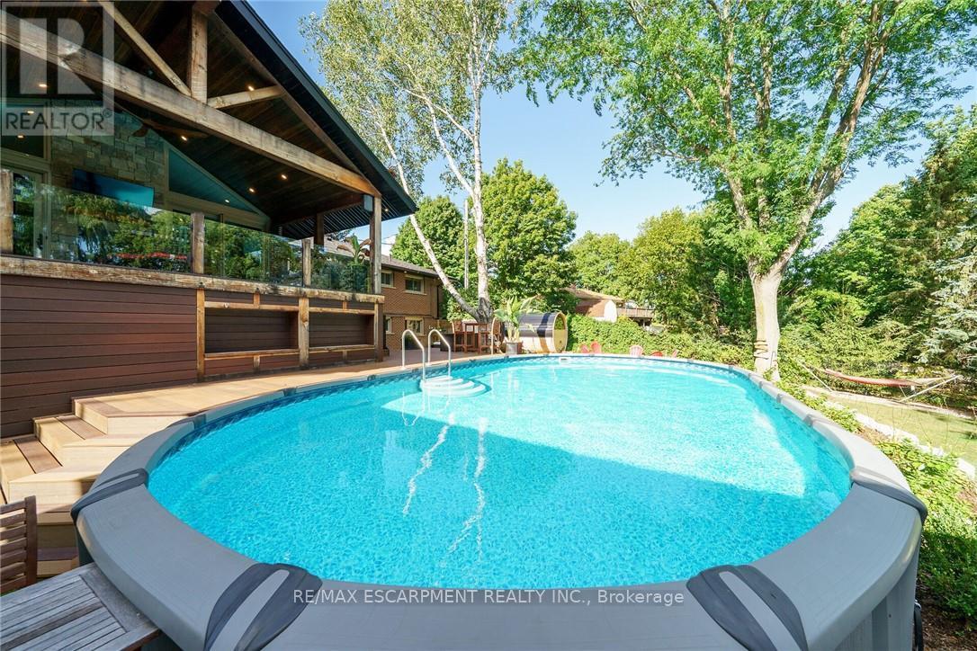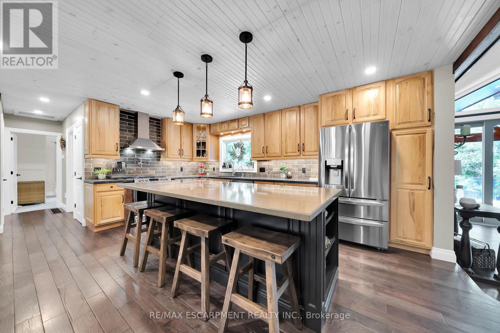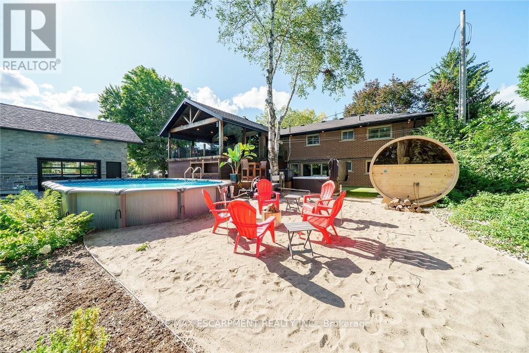 Grand River Waterfront Masterpiece! Exquisitely updated throughout by "Kreekside Construction" this 4 bedroom, 4 bathroom Bungalow with walk out basement is situated on "Muskoka" Like lot with over 20 km of navigable water. Incredible curb appeal with detached 20' x 30' garage. Entertainers dream backyard Oasis complete with covered porch, TV, stone clad double-sided gas FP, outdoor kitchen, 3 hole putting green, barrel sauna, hot tub, & heated pool. The easily accessible waterfront area includes extensive armour stone, entertaining area & 6' x 20' Dock. Stunning interior offers approximately 3200 sq ft of living space highlighted by great room with v. ceilings, fireplace, custom kitchen cabinetry with granite, & walk-in pantry, dining area, 3 MF bedrooms including primary suite with spa bathroom with soaker tub & walk in shower. Lower-level features rec room with woodstove, 4th bedroom, 2 pc bath, plus gym/living room with 2 pc bath & separate entrance. Live the Grand River Lifestyle! (id:4555)
