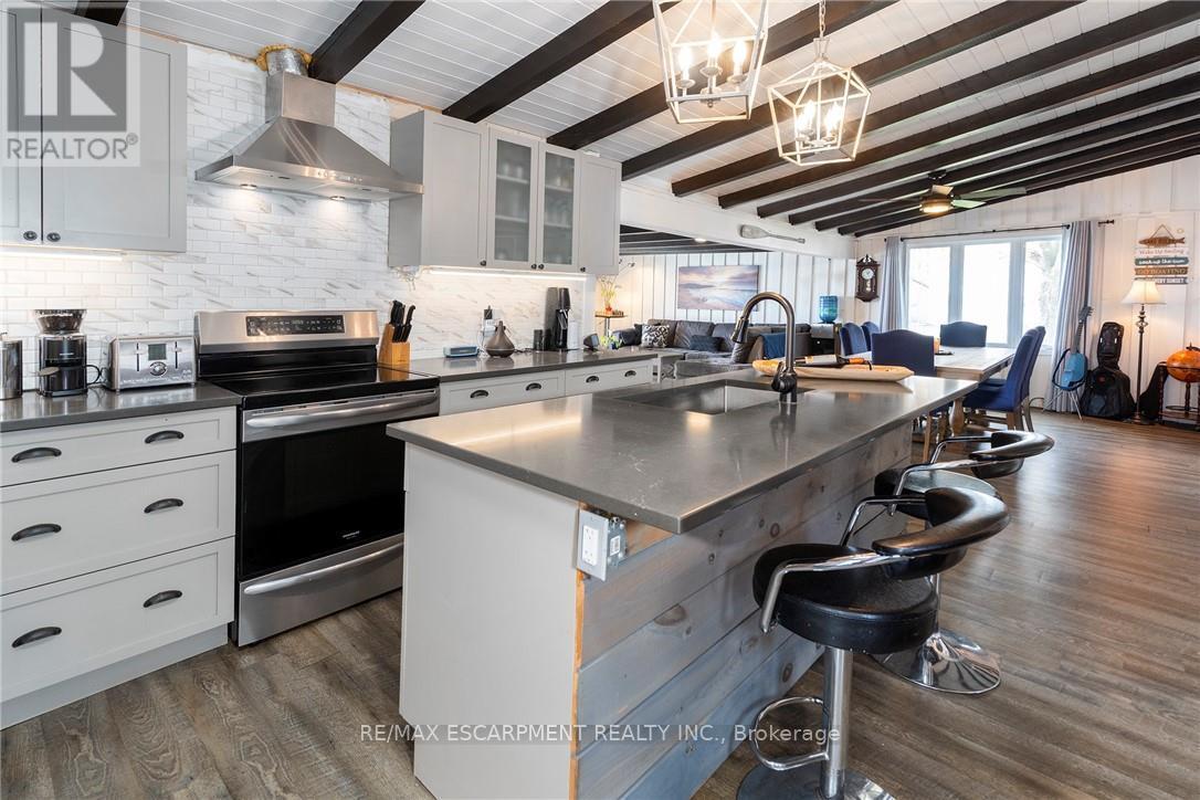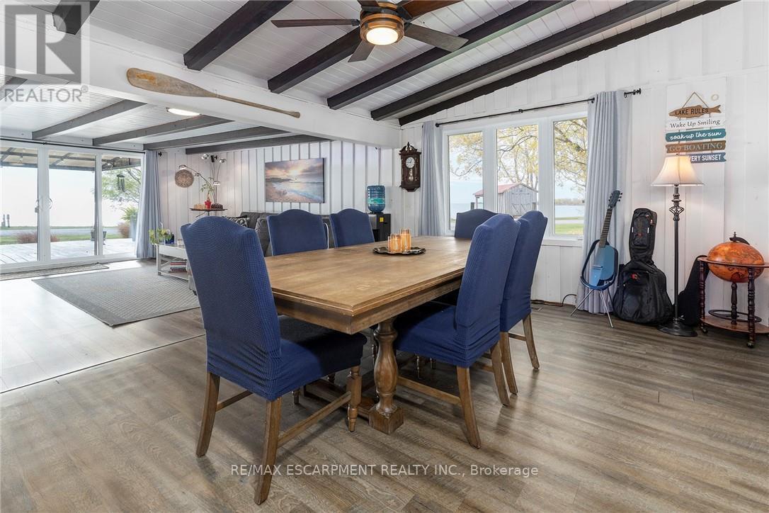 BREATHTAKING Waterfront views at your year round LAKESIDE OASIS. Check out this spacious 4 Bed, 2 Bath Bungalow with Detached Garage! You will be wowed by this one offering privacy, tranquility and peaceful living and inside offers high ceilings, large windows for plenty of natural light and amazing views. The open concept is perfect for entertaining family and friends. The spacious liv rm with FP offers a perfect space for family movie and game nights. The Kitchen is a showstopper with S/S appliances, modern backsplash, stone counters and a lg island w/extra seating and storage. The master bedroom is a real retreat with your own patio door to the large deck with stunning water views. There are also 3 more spacious bedrooms for your family and friends. Saving the best for last is the outside of this spectacular home with the expansive deck-perfect for enjoying your morning coffee or evening wine, family dinners or just watching the waves crash in. The large backyard also offers a spacious fire pit area, horseshoe area and plenty of room for games. The bonus is your own private beach access & deck, perfect for those that love the peace & tranquility of the water all year long. You are also close to trails, golfing and all the conveniences of Dunnville are just moments away. Don't miss this fantastic property that offers EVERYTHING you need, beautifully renovated, spacious floor plan, large yard and lakeside retreat. (id:4555)