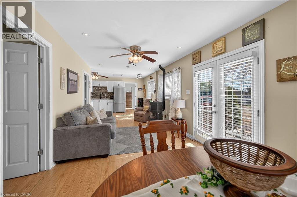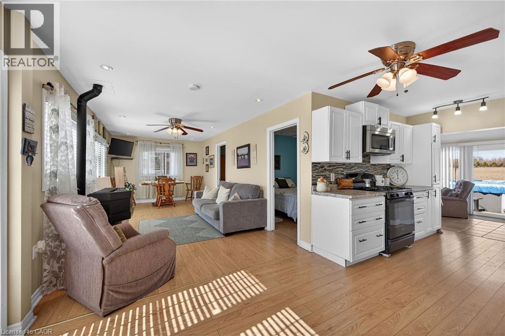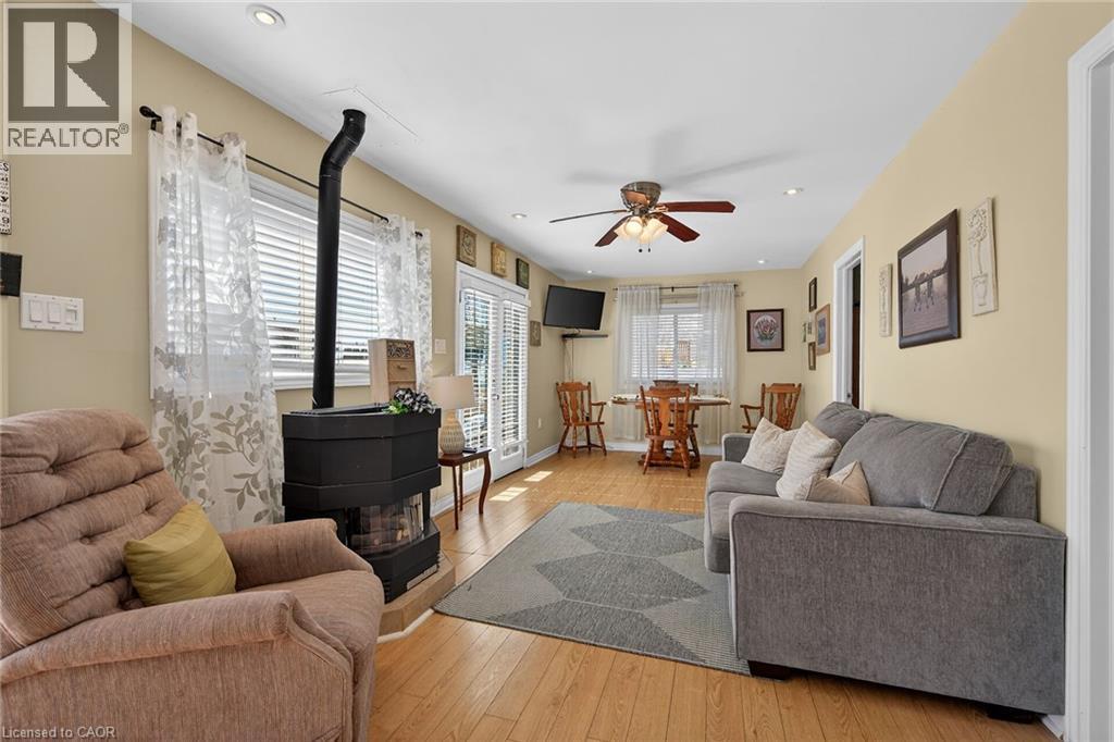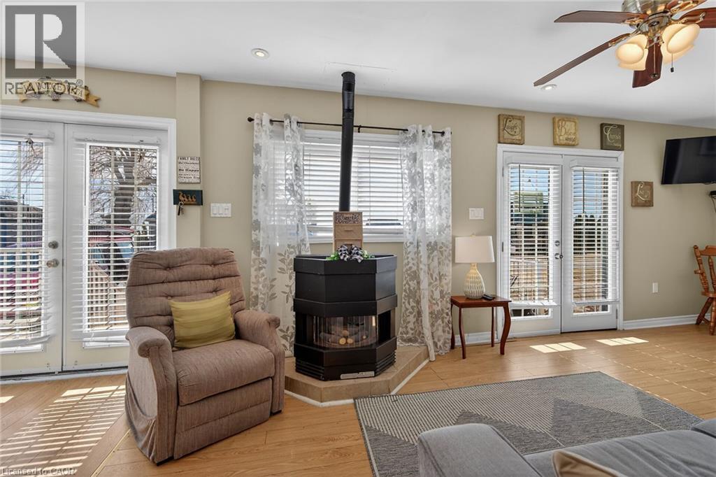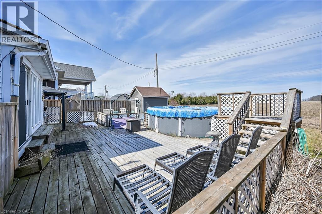 Your Lake Escape Awaits!! With Spring nearing it’s time to take advantage of Lake Erie - a magnificent Great Lake offering aquatic adventures galore. Imagine not worrying about the horrendous 4 hour drive to Ontario’s North - when less than an hour commute from Hamilton, Burlington, Brantford, Niagara, QEW & 403 - you can be sitting on your very own newly constructed (2024) 280sf lake facing entertainment deck accented w/stylish glass railings - providing the ultimate venue to relax & enjoy incredible, panoramic water vistas across scenic Lakeshore Road. After a day of sunshine - retreat inside & embrace 819sf of nautical beauty this tastefully presented 3 bedroom cottage exudes. Situated on landscaped 50ft x 100ft lot overlooking endless acres of farm fields is totally renovated lake house (studs out-2009), w/current owner careful to maintain it’s sea-side ambience, as evidenced by the nautical inspired décor. Showcasing brilliant white kitchen sporting ample cabinetry, chic tile back-splash, SS fridge & n/gas cook stove - continues to open concept dining/living room savoring the n/g fireplace's warmth while basking in the abundance of natural light cascading thru multiple water facing windows & 2 gardens doors. Flanking 3 sizeable bedrooms is beautifully updated 3pc bath-2024 - leads to rear family room ftrs vaulted ceilings, easy-wear tile flooring, floor to ceiling windows & patio door walk-out accessing 540sf rear deck system & resort style yard centered around refreshing 18ft round swimming pool. Atlantic blue exterior siding-2023 complimented w/stylish stone-like skirting sets this “Erie Gem” apart from it’s peers. Minimal cost, easy to insulate plumbing/water system ensuring affordable, future year-round lake living. Extras - metal roof-2023, vinyl windows, concrete pier foundation, laminate flooring, 2000g cistern, septic system, 100 amp hydro, metal gazebo, owned water heater & majority of furnishings. Can't you just feel the warm lake breezes BECKONING! (id:4555)