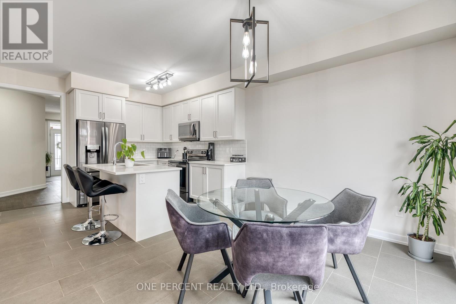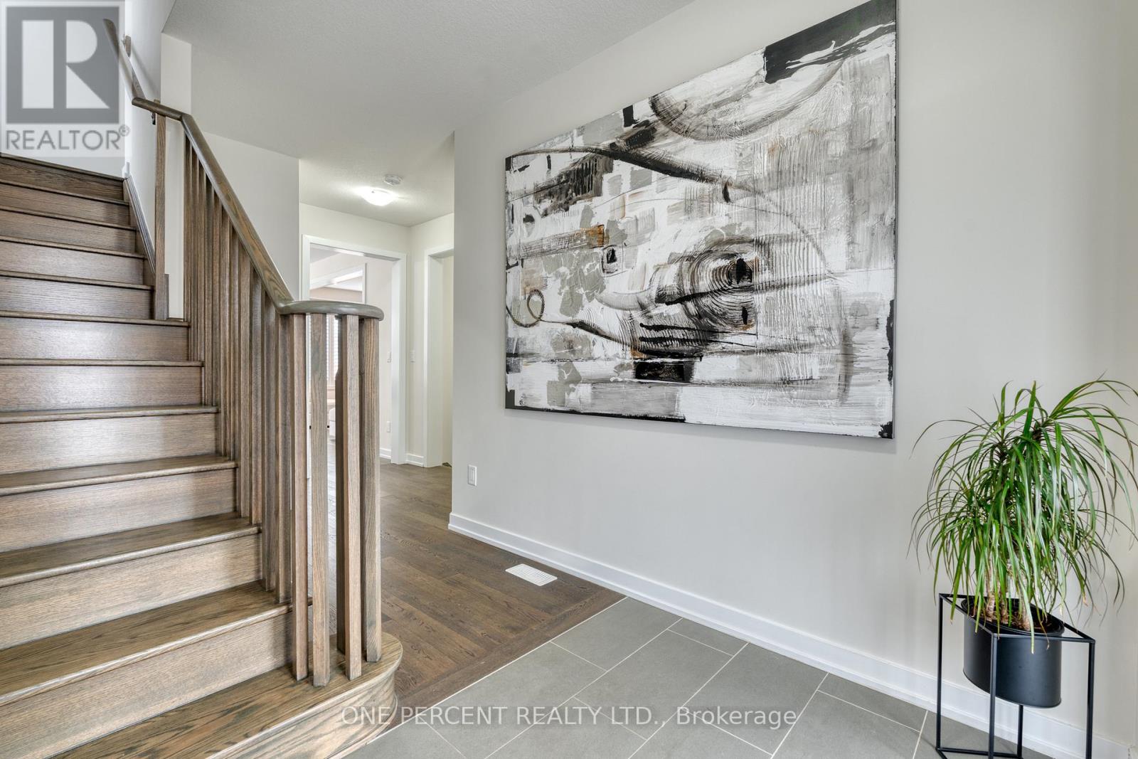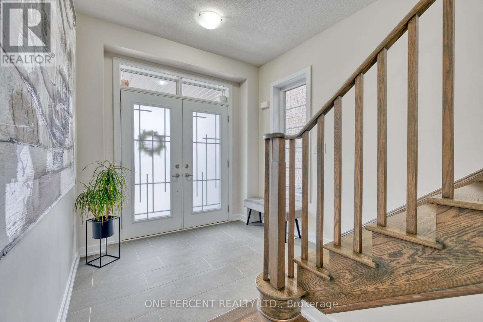 Situated in a quiet neighborhood near the Grand River, this 1,893 square foot home is less than two years old and has been well-maintained. The interior features nine-foot ceilings and hardwood flooring across the entire main level, complemented by a matching oak staircase. The kitchen is finished with quartz countertops, dark stainless steel appliances, and shaker cabinetry. In the adjacent great room, large picture windows with California shutters provide natural light, and a gas fireplace serves as a central point for the space. The second level includes four bedrooms and a dedicated laundry room for convenience. The primary suite serves as a quiet retreat, featuring a walk-in closet and an ensuite bathroom with a frameless glass shower. For those looking for additional space, the large basement remains unfinished and is ready for a personal layout or extra storage. The exterior includes an oversized garage and a driveway with space for three vehicles. This location offers a practical balance of nature and amenities, with easy access to the river trails as well as local schools, grocery stores, and medical services within the Caledonia community. (id:4555)