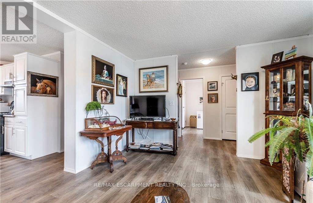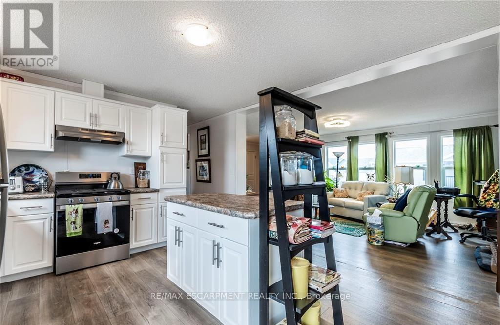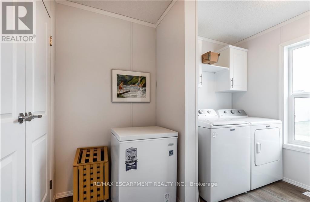 Welcome to this beautifully maintained 1280 sq ft bungalow located in a sought-after waterfront community along the shores of Lake Erie. Designed for easy one-floor living, this bright and inviting home features an open layout that perfectly suits a relaxed, low-maintenance lifestyle. Inside you'll find two generously sized bedrooms, including a comfortable primary suite complete with a large walk-in closet and private 3-piece ensuite. The spacious living room offers plenty of room to relax, entertain guests, or create a cozy home office space. The stylish eat-in kitchen blends function and charm with a stainless steel farmhouse sink, modern appliances, and ample cabinetry for storage. For added convenience, all appliances and window coverings are included. This welcoming lakeside community offers a variety of amenities, including an outdoor pool, the option to use the community dog park, walking trails, social events, and access to a community boat dock with slips available to rent for an additional fee. Even better, exterior maintenance such as grass cutting and snow removal is handled for you, making this a wonderful option for those seeking a carefree lifestyle or a perfect snowbird retreat. Simply lock the door and travel with peace of mind knowing everything is taken care of. (id:4555)