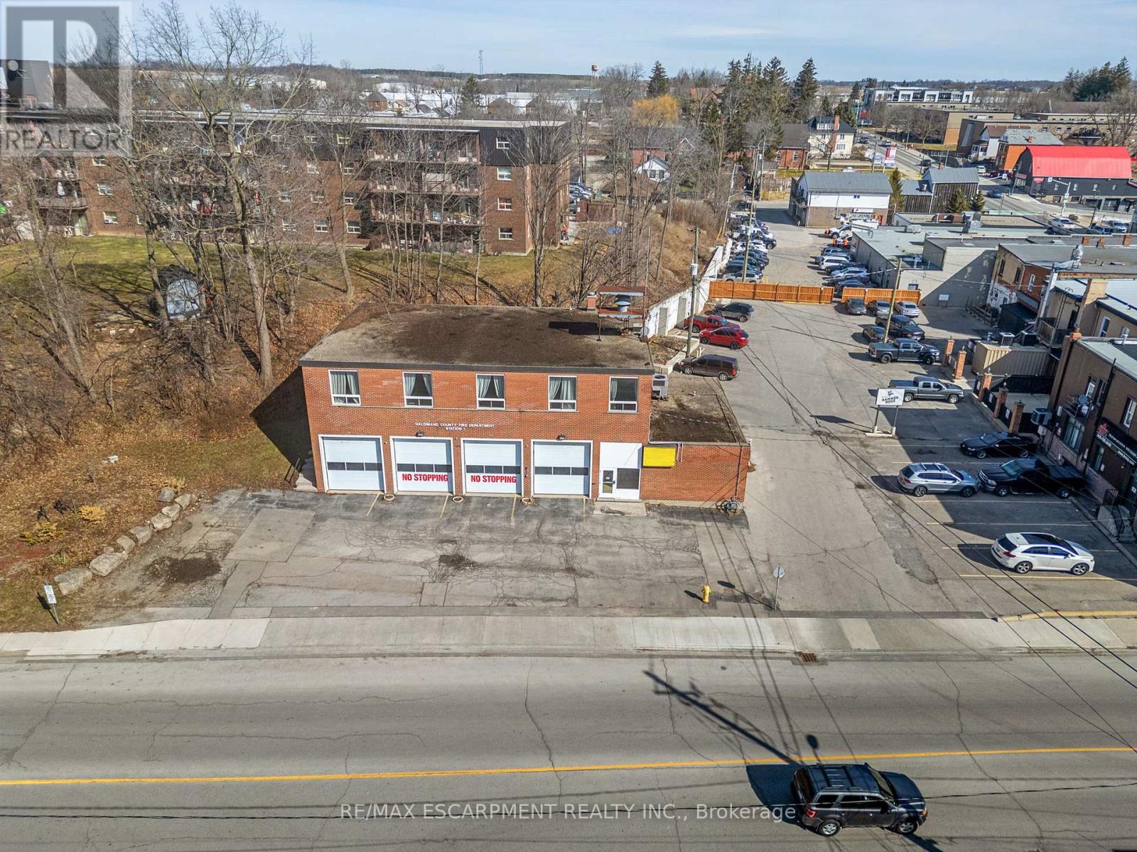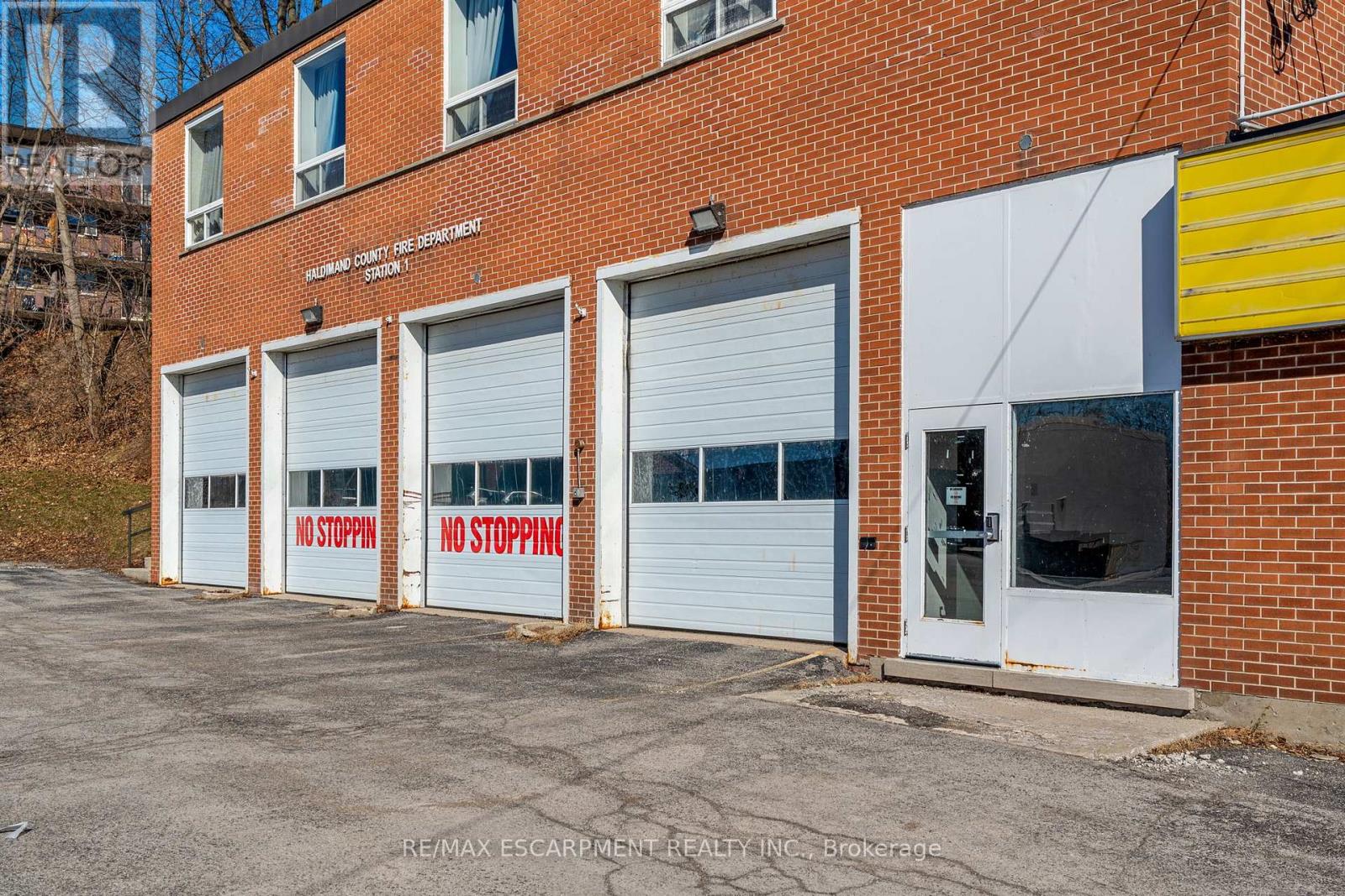 Excellent opportunity to acquire a well-known commercial building in the heart of downtown Caledonia, known as "The Fire Hall". This approximately 6,000 sq/ft building offers an impressive 198+ feet of frontage, providing strong presence and accessibility in a prime location. The main level features approximately 2,100 sq/ft of open garage/shop space with 14 ft ceilings and four 10 ft x 12 ft roll-up bay doors, making it ideal for service, workshop, storage, or many other commercial uses. Additional rooms on the main floor include separate spaces with a side entrance, offering potential for office, retail, or reception areas. The second level offers approximately 2,100 sq/ft of open hall space with hardwood floors, a kitchenette, and two bathrooms, creating a versatile space suitable for studio, office, event, or recreational uses. This level also features beautiful views overlooking the Grand River, adding to the unique appeal of the building. Located in a prime downtown setting, the property benefits from public parking directly across the street and strong visibility within the community. A long-standing staple in Caledonia, this building presents a rare opportunity for investors or end users seeking a versatile commercial property with character and long-term potential. (id:4555)