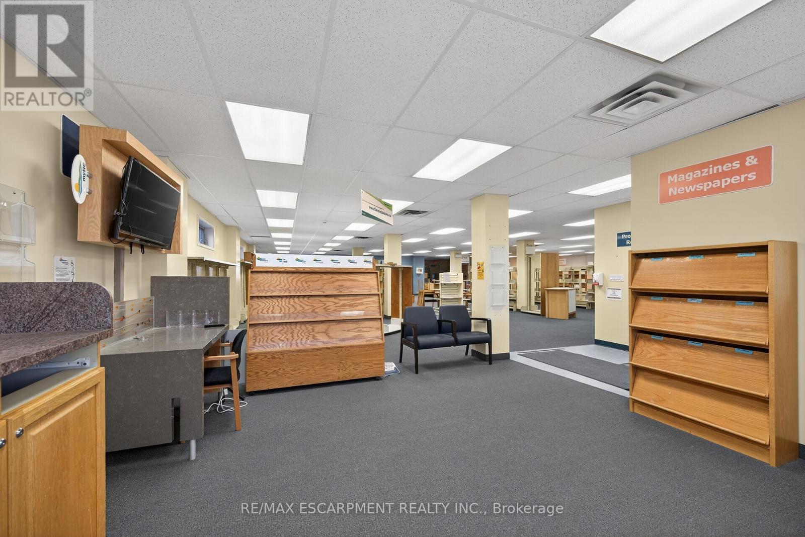 Endless opportunities in this great 5200 square foot one level commercial space in desirable high traffic area zoned Community Institutional (IC) and was previously the community library for many years. Well maintained building on a 75x132 ft lot with parking area in the rear. Commercial carpeting and lots of windows, natural gas forced air furnace plus central air (roof top units), 3 bathrooms (two public, one staff), and two extra framed in spaces, one with a sink - otherwise its completely open concept. Convenient municipal water and sewer. Permitted uses include day care, office, private club, school, training centre and more! (id:4555)
