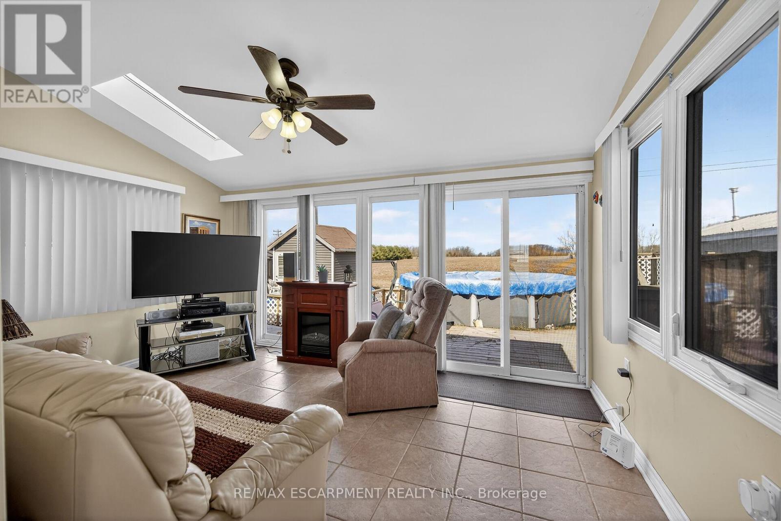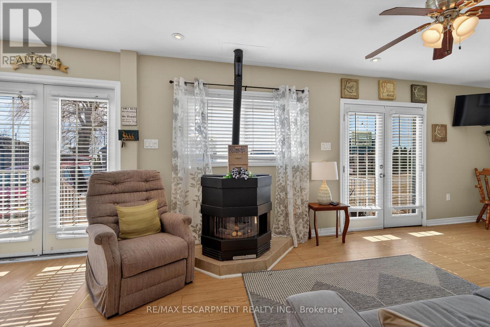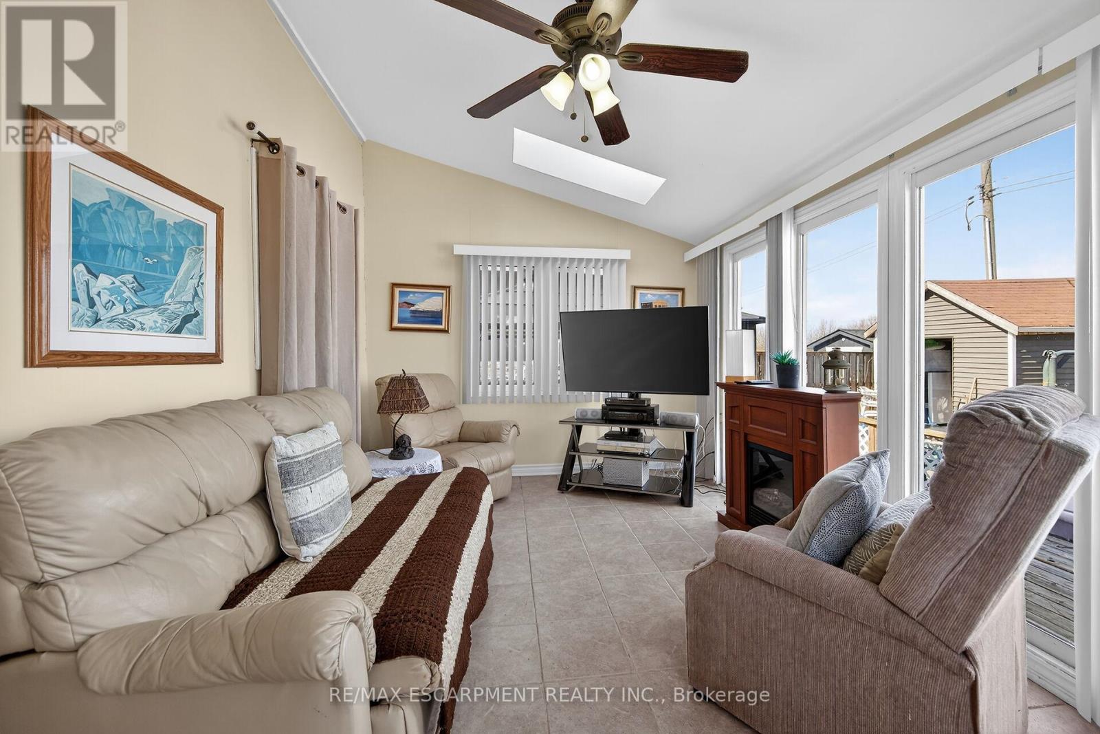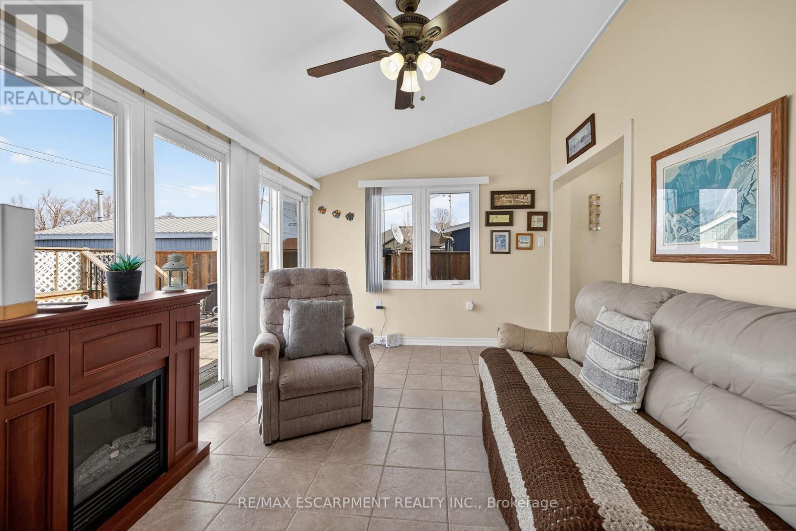 Your Lake Escape Awaits!! With Spring nearing it's time to take advantage of Lake Erie - a magnificent Great Lake offering aquatic adventures galore. Imagine not worrying about the horrendous 4 hour drive to Ontario's North - when less than an hour commute from Hamilton, Burlington, Brantford, Niagara, QEW & 403 - you can be sitting on your very own newly constructed (2024) 280sf lake facing entertainment deck accented w/stylish glass railings - providing the ultimate venue to relax & enjoy incredible, panoramic water vistas across scenic Lakeshore Road. After a day of sunshine - retreat inside & embrace 819sf of nautical beauty this tastefully presented 3 bedroom cottage exudes. Situated on landscaped 50ft x 100ft lot overlooking endless acres of farm fields is totally renovated lake house (studs out-2009), w/current owner careful to maintain it's sea-side ambience, as evidenced by the nautical inspired décor. Showcasing brilliant white kitchen sporting ample cabinetry, chic tile back-splash, SS fridge & n/gas cook stove - continues to open concept dining/living room savoring the n/g fireplace's warmth while basking in the abundance of natural light cascading thru multiple water facing windows & 2 gardens doors. Flanking 3 sizeable bedrooms is beautifully updated 3pc bath-2024 - leads to rear family room ftrs vaulted ceilings, easy-wear tile flooring, floor to ceiling windows & patio door walk-out accessing 540sf rear deck system & resort style yard centered around refreshing 18ft round swimming pool. Atlantic blue exterior siding-2023 complimented w/stylish stone-like skirting sets this "Erie Gem" apart from it's peers. Minimal cost, easy to insulate plumbing/water system ensuring affordable, future year-round lake living. Extras - metal roof-2023, vinyl windows, concrete pier foundation, laminate flooring, 2000g cistern, septic system, 100 amp hydro, metal gazebo, owned water heater & majority of furnishings. Can't you just feel the warm lake breezes BECKONING! (id:4555)