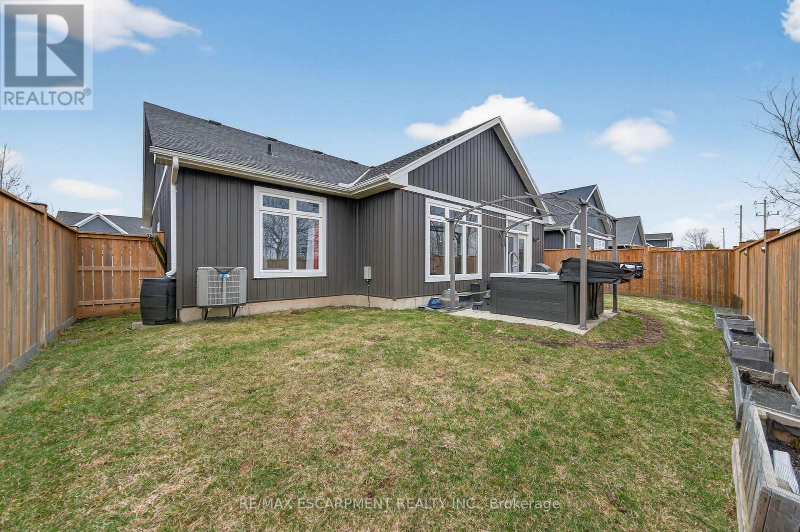 Welcome to Heron Landing, where quaint country living meets a welcoming community atmosphere. This attractive, detached modern bungalow offers easy, low-maintenance living at its finest. Built in 2020, this thoughtfully designed home features over 1,300 square feet of bright, open-concept living space-perfect for downsizers, retirees, or anyone seeking single-level convenience.Step inside to a spacious open-concept layout that seamlessly connects the kitchen, dining, and living areas, ideal for both everyday living and entertaining. The home features a large primary bedroom complete with a walk-in closet and private ensuite bathroom, showcasing a full-sized walk-in shower with built-in seating. A generously sized second bedroom and a full 4-piece bathroom provide excellent space and comfort for guests.Throughout the home, you'll find 9-foot ceilings, upgraded light fixtures, and large windows that fill the space with natural light. Radiant in-floor heating adds year-round comfort and warmth. The kitchen is both functional and stylish, offering ample cupboard space-including additional storage in the island-soft-close cabinetry, and matching Whirlpool appliances, including a gas stove. Main floor laundry adds to the home's everyday convenience.Enjoy the added benefit of an attached double-car garage with interior access, along with additional driveway parking. In total you can park up to 4 vehicles. Outdoor living is just as inviting, with a covered front porch and a private, fenced rear patio complete with a hot tub-perfect for relaxing or entertaining.Situated in a peaceful neighbourhood just minutes from the Grand River and close to Dunnville's shops, amenities, and services, this property offers the perfect blend of comfort, style, and convenience. (id:4555)