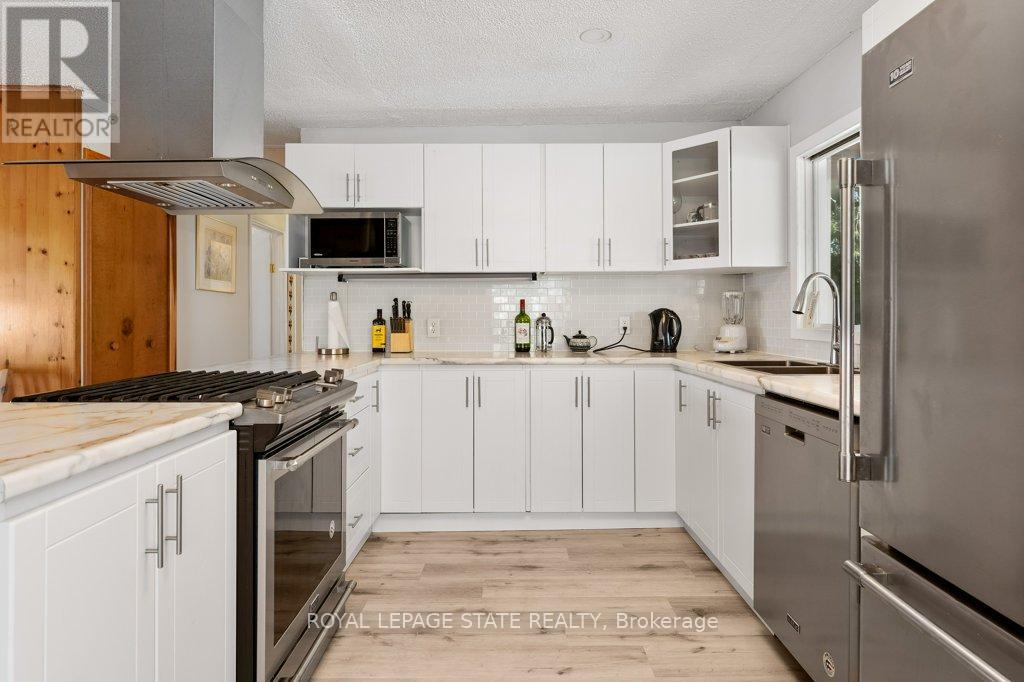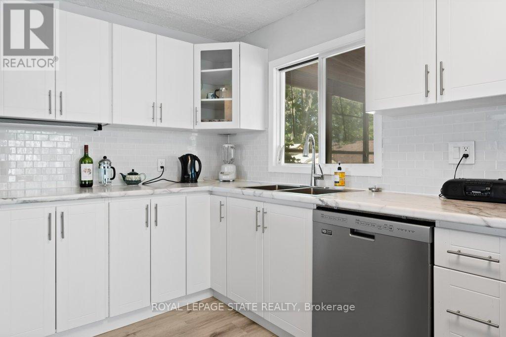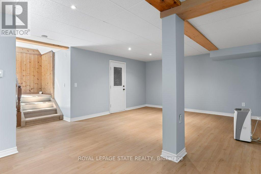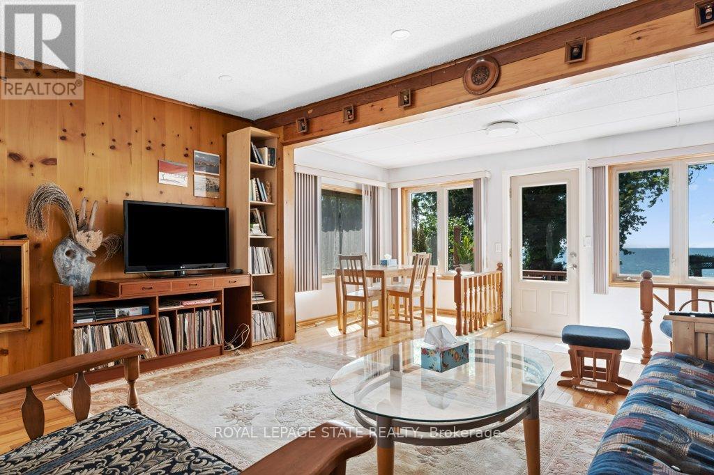 Welcome to the lake! This spacious year round home is nestled on a deep lot and features sandy beach waterfront - perfect for making summer memories. Relax on the concrete patio at the break wall, with metal stairs leading to the soft sand and sparkling water - the gentle slope into the water and sandy beach / bottom make this an ideal location for swimming or launching your paddle board or kayak. Inside the open concept living area is perfect for entertaining friends and family. The kitchen features stainless steel appliances, loads of storage and counter area, and a bright dinette and sunroom spaces to soak in the lake views. The large basement recroom is complete with a cozy fireplace and an additional den or bedroom, an ideal retreat for movie nights or game days. This home boasts thoughtful upgrades including an "Omni" basement system for peace of mind, a durable metal roof, and 1.5 car garage. The paved driveway easily accommodates up to four cars. Step out onto the upper-level deck for your morning coffee, enjoy alfresco dinners on the lower patio, and find serenity at the patio overlooking the lake. Here, every day is a vacation-summer fun, relaxation, and cherished moments await you at the lake! Laundry to be hooked up prior to closing. (id:4555)
