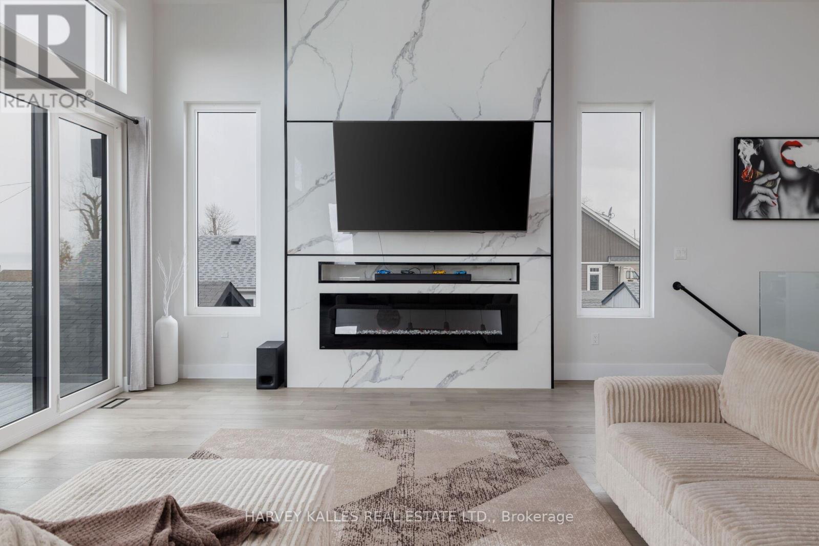 Soaring ceilings, uninterrupted lake views, and striking modern design define this custom-built detached home set in the charming town of Dunnville. Thoughtfully designed to maximize light, space, and connection to its natural surroundings, this residence offers a truly unique living experience.The main living level is designed for both everyday living/entertaining, featuring a striking 23-ft vaulted ceiling with floor-to-ceiling windows and gorgeous lake views. A marble-finished fireplace adds a refined focal point. The open concept space features engineered hardwood flooring, a sleek open-concept kitchen with oversized island, built-in appliances. Walk out to your waterfront-view composite deck with outdoor dining/cooking area and modern, glass railings.Privately set above the living space, the lofted primary suite offers a truly special retreat. Overlooking the main living space below, this airy and light-filled sanctuary feels both connected and secluded, with generous proportions, a walk-in closet, and elevated views that create a calm, resort-like atmosphere.Upon entry at the ground level, an impressive garage space with sauna, gym and mechanical room adds exceptional utility and flexibility. An additional detached garage, storage shed, and expansive asphalt driveway further enhance the functionality of the property.Located just minutes from the Grand River, Byng Island Conservation Area, Rock Point Provincial Park, and local amenities, this home offers the perfect balance of small-town charm and outdoor lifestyle. (id:4555)