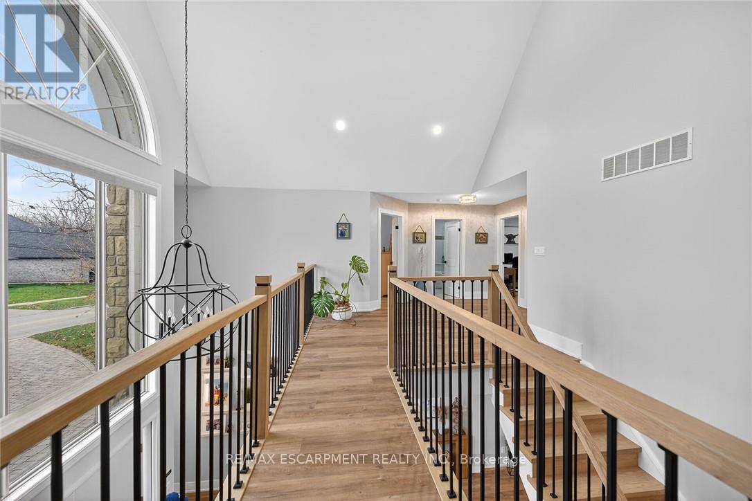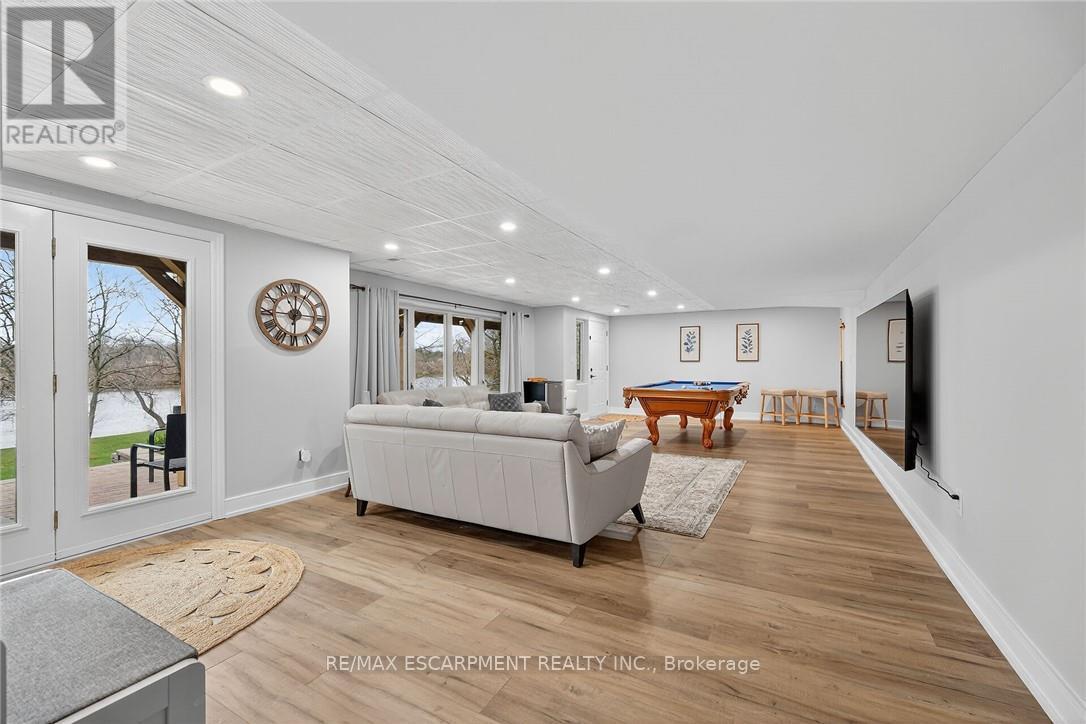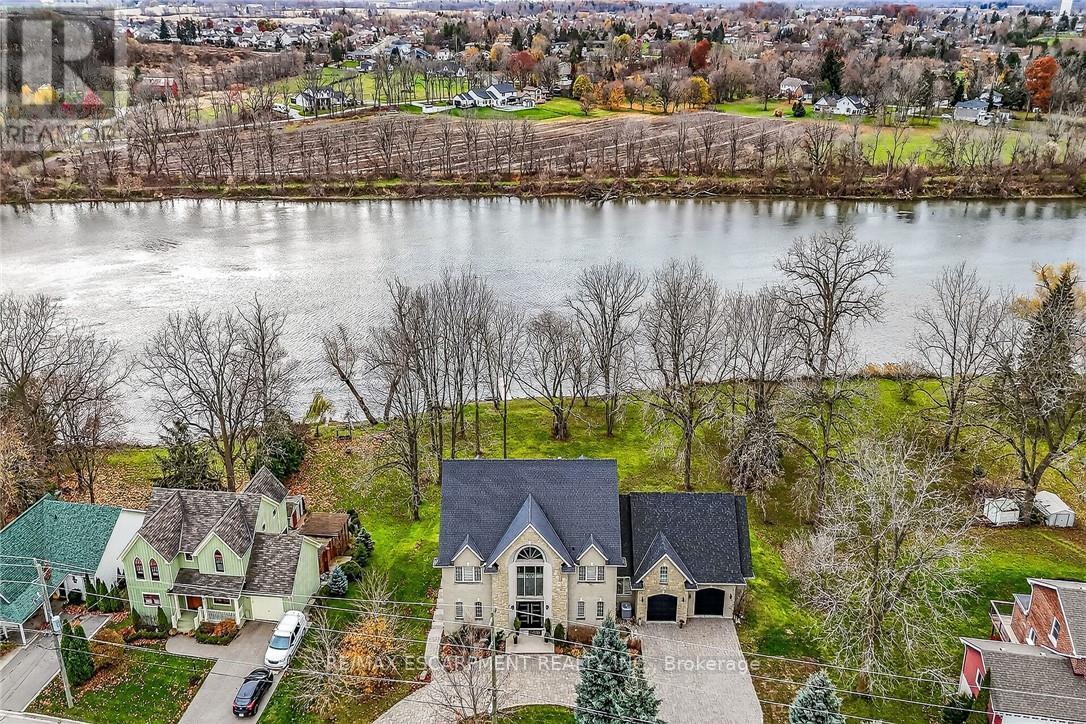 This stunning home backing onto the Grand River has been completely renovated from top to bottom! This beautiful home sits on a double lot with over 5000 sq ft of living space. Amazing curb appeal with a circular driveway big enough for 10 cars and an oversized double garage. A grand foyer welcomes you to the spacious main level with 10' ceilings. You will notice the amazing nature light from the front foyer window and a wall of windows along the back of the home. A cozy living room awaits you with a gas fireplace leading to a lovely dining room perfect for meals with family and friends and an amazingly large functional kitchen with cabinets galore and a 10' island. Patio doors from the kitchen open to an upper deck with stunning views of the Grand River, an expansive backyard with a firepit and a 30' dock, you'll will feel like you're on vacation everyday. The main level also includes an office/bedroom off the front foyer, a 2 piece bathroom, laundry room and automatic blinds on the front foyer window, living room and dining room windows. Moving up to the 2nd floor, you will find a gorgeous primary bedroom with a walk in closet, a spa like ensuite with a walk in shower and soaker tub, also 3 generous sized bedrooms and a 4 piece bathroom. All bedroom closets have closet organizers. The expansive lower level includes a large family room with pool table, 3 more bedrooms and a bright 3 piece bathroom. The lower level family room leads you to a covered patio with an 8 person Beachcomber hot tub, enjoy peaceful evenings star gazing and river views. In addition to the oversized double garage, there is a utility garage at the back of the house which is perfect for your riding lawnmower and anything other landscaping equipment. Country feels with all the amenities near by! Don't miss out on this wonderful family home! Luxury Certified. (id:4555)