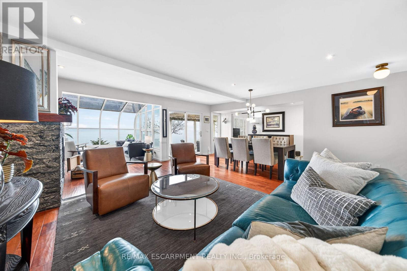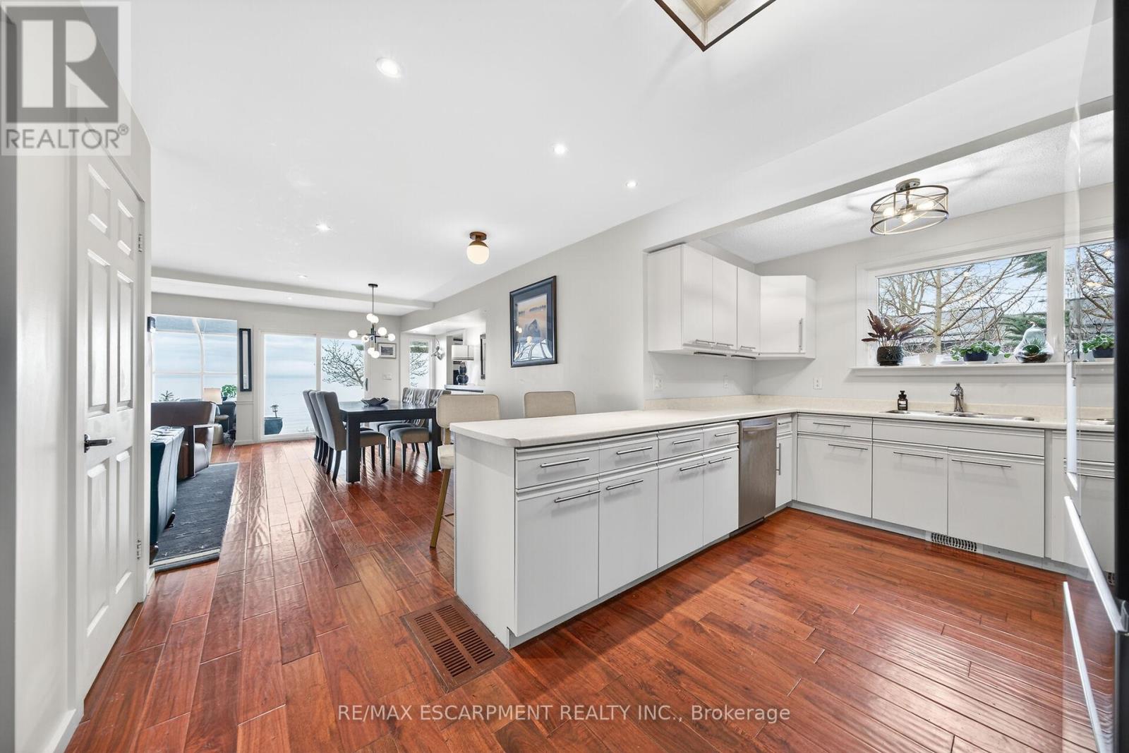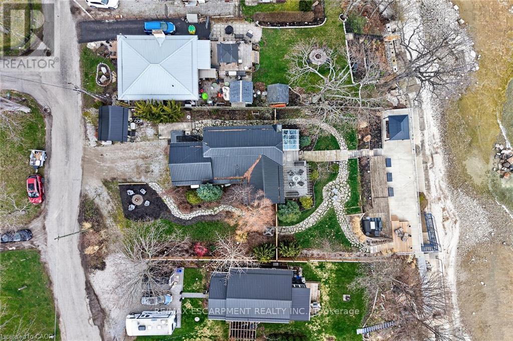 Welcome to 108 Lakeside Dr! Experience breathtaking Lake Erie vistas from an extraordinary 80-ft concrete waterfront patio (2022), raised 8ft+ above the water's edge cement pad, accessed by mechanized steel stairs (2022) for easy access to the sand/pebble beach. Perfect for launching kayaks or dipping toes. Relax beneath the pergola, enjoy the elevated lookouts, or take one of two precast stone stairs (Permacon 2024) to the upper level's 14 x 24 composite deck. The panorama is unforgettable! Overlooking this spectacular waterfront is a tastefully renovated, year-round home set proudly on a double lot landscaped with low upkeep perennials for all-season interest. The main level offers 1429sf of beautifully presented living space, highlighted by a sun-filled glass solarium and impressive living/dining room combo. On cool evenings light the gas FP highlighted in a stone feature wall while waves lap the shoreline. The sizeable primary bedroom captures soothing lake views and features a chicly renovated 3-pc ensuite (2026) and wall-to-wall closets. Gorgeous "distressed" engineered hardwood flooring (bedroom 2021) compliments the inviting décor throughout. The well-appointed kitchen enjoys an abundant cabinetry & small pantry, flowing naturally toward a second renovated 3-pc bath (2026). A comfortable family room-formerly 2nd bedroom-adds flex (TV room, office, guest space). The functional 636sf lower level (8-ft clgs) offers a tastefully finished bedroom (2023), laundry station, storage, mechanicals, and workshop area. Additional Features: 14 kW generator (2025) Metal roof (2019) Wood fence/gates (2024) 6k gallon cistern Septic Sys w tile bed Access to seasonal community water Fibre high speed Detached 12' x 16' shed Updated windows Natural gas furnace & A/C (2013) Located in Peacock Point- along Lake Erie's Golden South Coast - close to beaches, Hoover's Marina & E of Pt. Dover's amenities - 50 min to Brantford/Hamilton. Let's get to "The Point!" (id:4555)