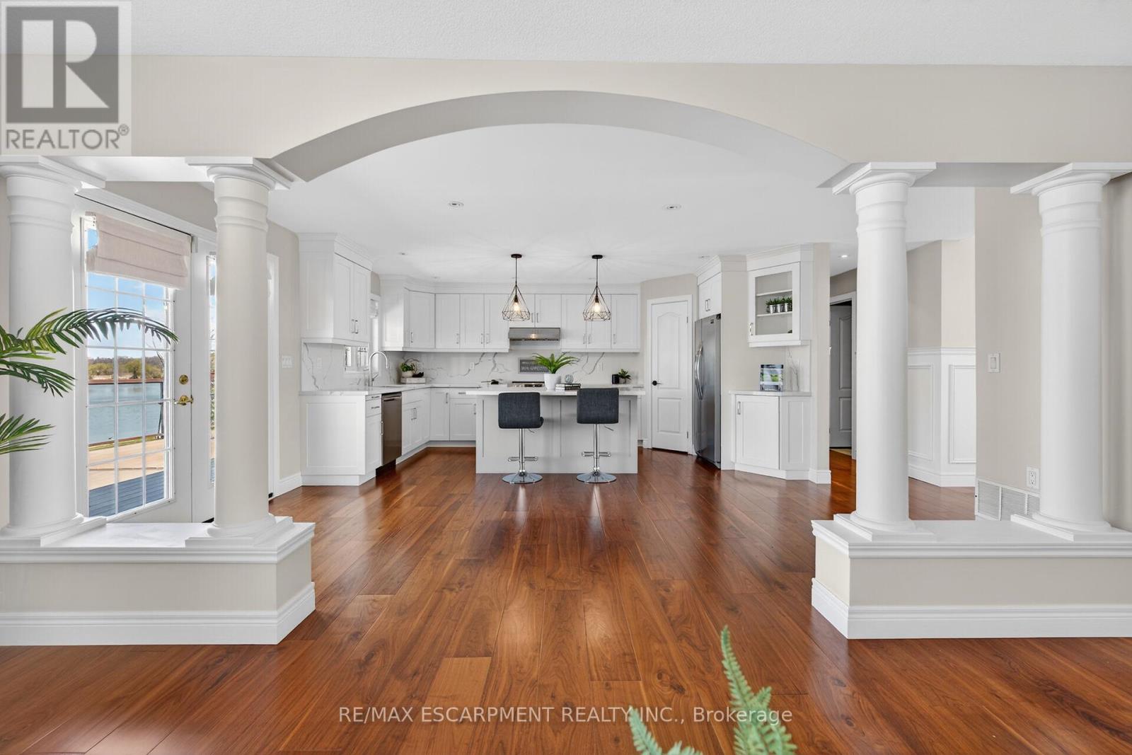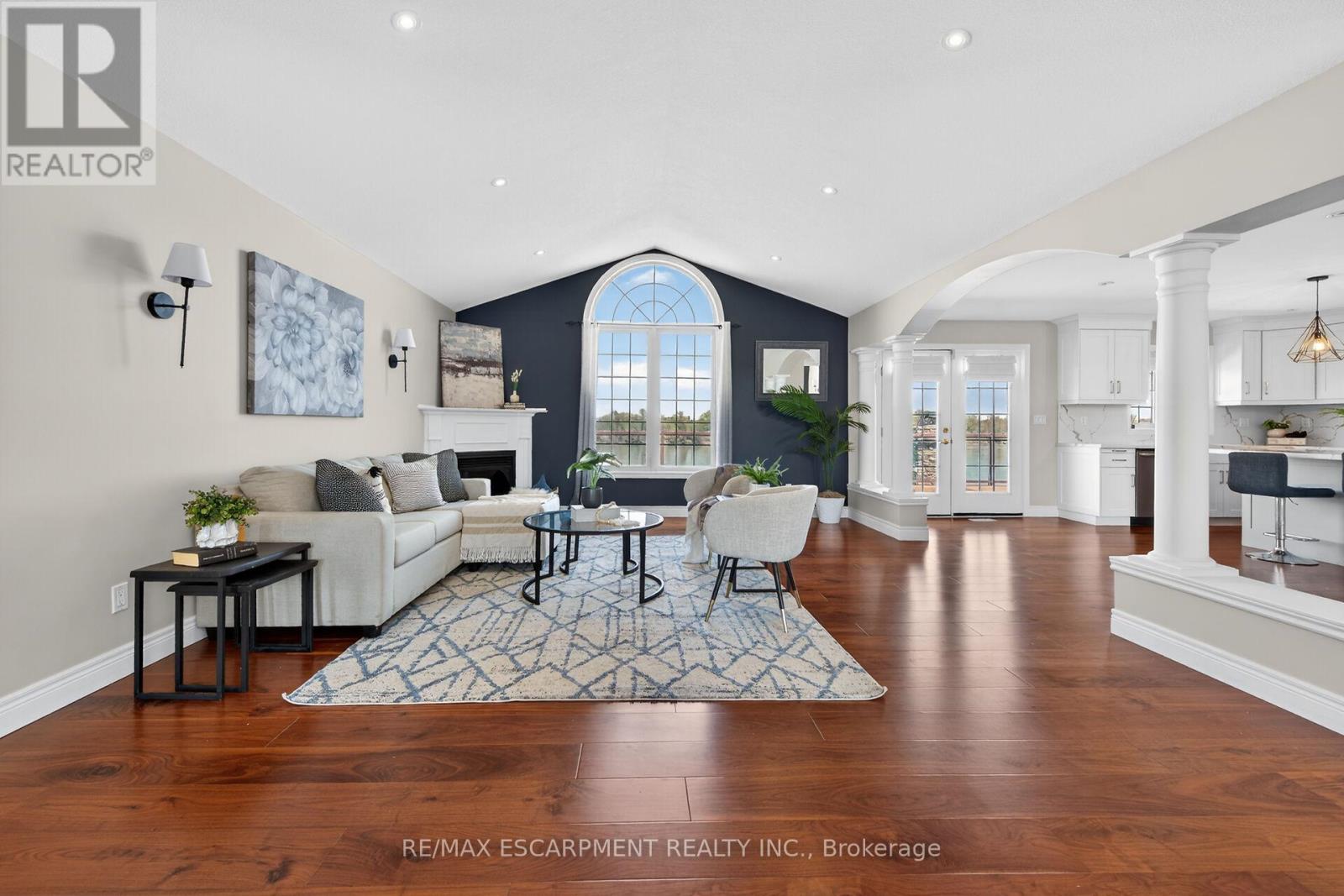 Luxury Riverfront Living on the Grand River! Truly Irreplaceable 2.64 acre Cayuga Estate property showcasing a Custom Built 3 bedroom, 3 bathroom Bungalow with full walk out basement with breathtaking Waterview's. Incredible curb appeal with all brick exterior, paved driveway with ample parking, stamped concrete walkway leading to welcoming covered porch, entertainers dream backyard Oasis with upper level composite deck, on grade lower level stamped concrete patio area with hot tub, outdoor TV, stone fireplace, & 2 outdoor heaters. The exquisitely updated interior features the perfect blend of function & elegance with over 4000 sq ft of open concept living space highlighted by wide plank hardwood flooring throughout, gorgeous eat in kitchen with quartz countertops & backsplash, & island, formal dining area with coffered ceilings, living room featuring built in corner fireplace, 3 spacious MF bedrooms including primary suite with large walk in closet & lavish 3 pc ensuite with tile walk in shower, primary 4 pc bathroom, & MF laundry. The full walk out basement allows for Ideal in law suite & large rec room with fireplace, games area, den, 3 pc bathroom, & cold cellar, & utility area. Over 20 km of navigable water allowing you to boat, wakeboard, fish, & kayak right from your own backyard. Grand River Living is more than a place to call home - It's a Lifestyle you deserve to Experience. (id:4555)