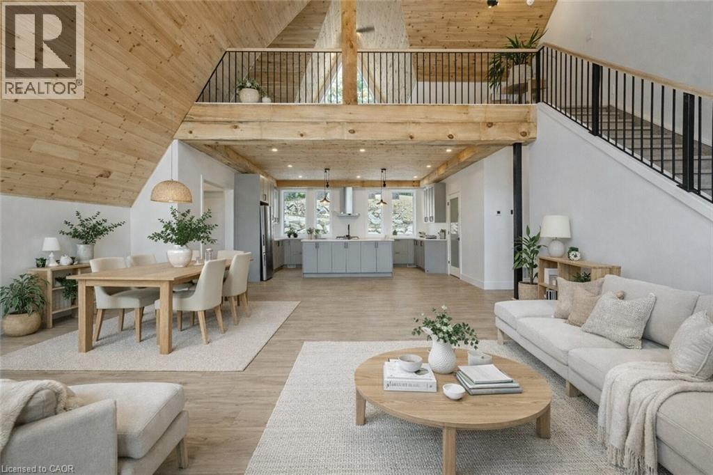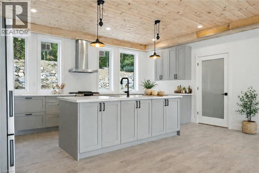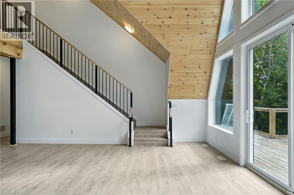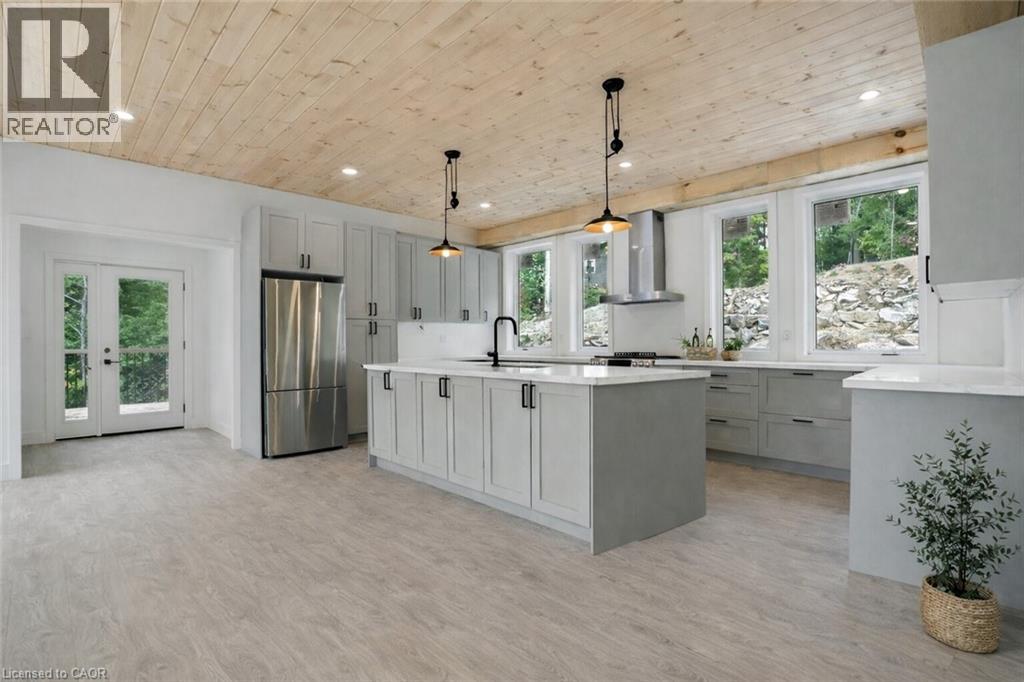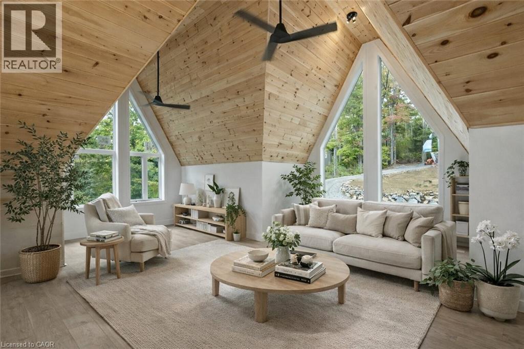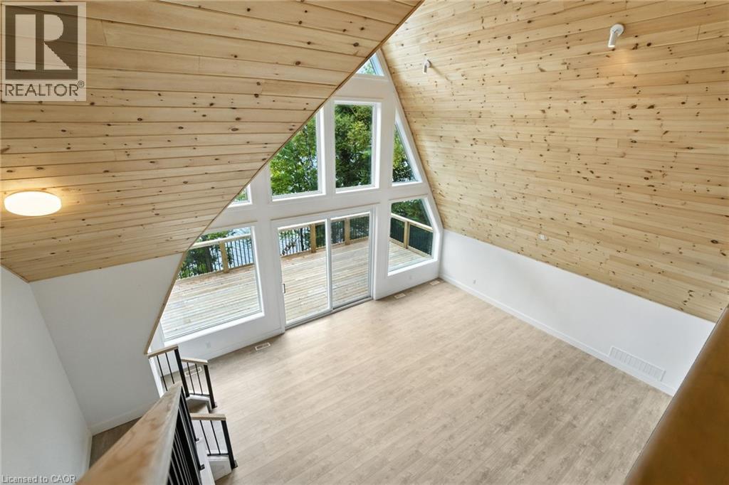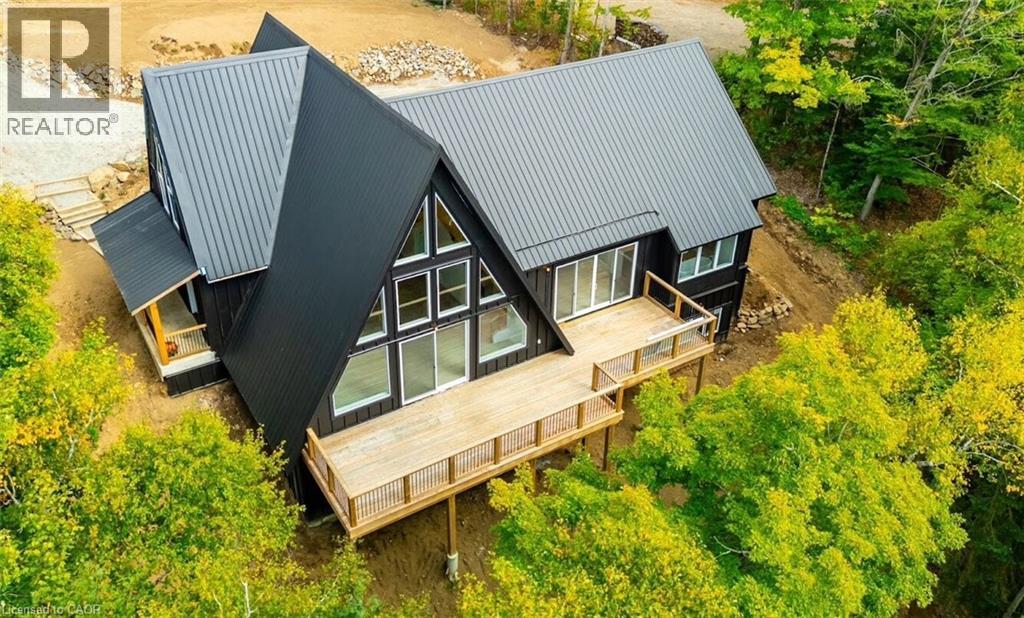 Exceptional opportunity to own this newly completed & distinguished 3-bed, 2-bath A-frame plus contemporary addition, commanding 120 ft of spring-fed Wenona Lake shoreline — where refined design & superior craftsmanship converge. This custom-built residence has been masterfully constructed w/ superior ICF foundation, steel roof/siding & high-performance mechanical systems — engineered for outstanding efficiency, structural integrity & low-maintenance living. Conceived as an investment for generations to come, peace of mind is further enhanced by a comprehensive warranty by renowned builder, Bridgeco Homes. Discreetly set back from year-round municipal road, its true scale revealed only upon entry through a bright foyer & well-appointed mudroom, opening seamlessly into a chef-inspired kitchen w/ wet island, stainless steel appliances, generous quartz countertops & walk-in pantry. The open-concept living/dining grand room is defined by a pine-clad cathedral ceiling, expansive windows & striking loft above — making this home equally suited to upscale entertaining or restorative retreat. Spacious primary features walk-out to large deck, walk-in closet & spa-like 5 pc ensuite w/ double vanity, walk-in shower & elegant freestanding bath w/ breathtaking forest & lake views. Two additional bedrooms, a refined 3-pc bath & main floor laundry provide comfort & everyday ease within the thoughtfully separated sleeping wing. The lower level offers significant additional space, complete w/ cold room & ground-level walk-out to the lake — ready to be curated to your vision & lifestyle. Enjoy serene morning coffees on the deck w/ premium west-facing exposure & experience spectacular sunsets amid Ontario’s most breathtaking landscapes. Minutes to Haliburton Village for boutique shopping, golf, hospital, dining & a vibrant arts community — offering an ideal balance of refined convenience & exceptional four-season lakeside living. Listing Agent related to Sellers. (id:4555)
