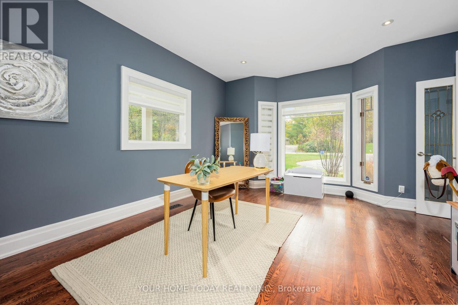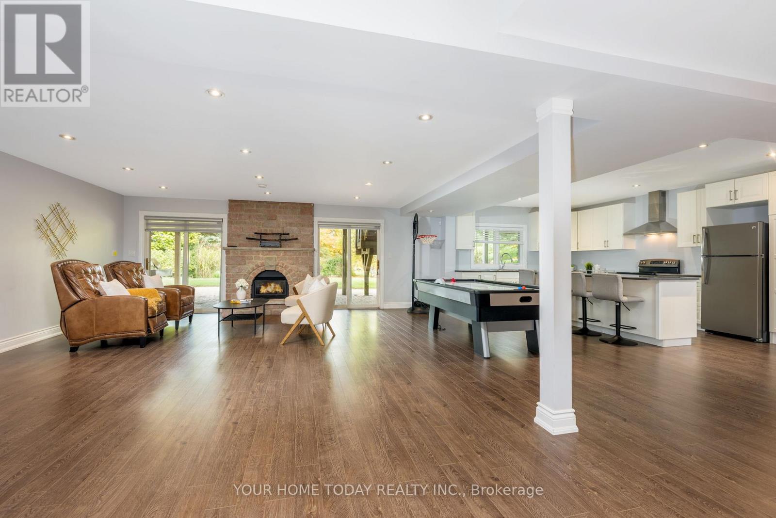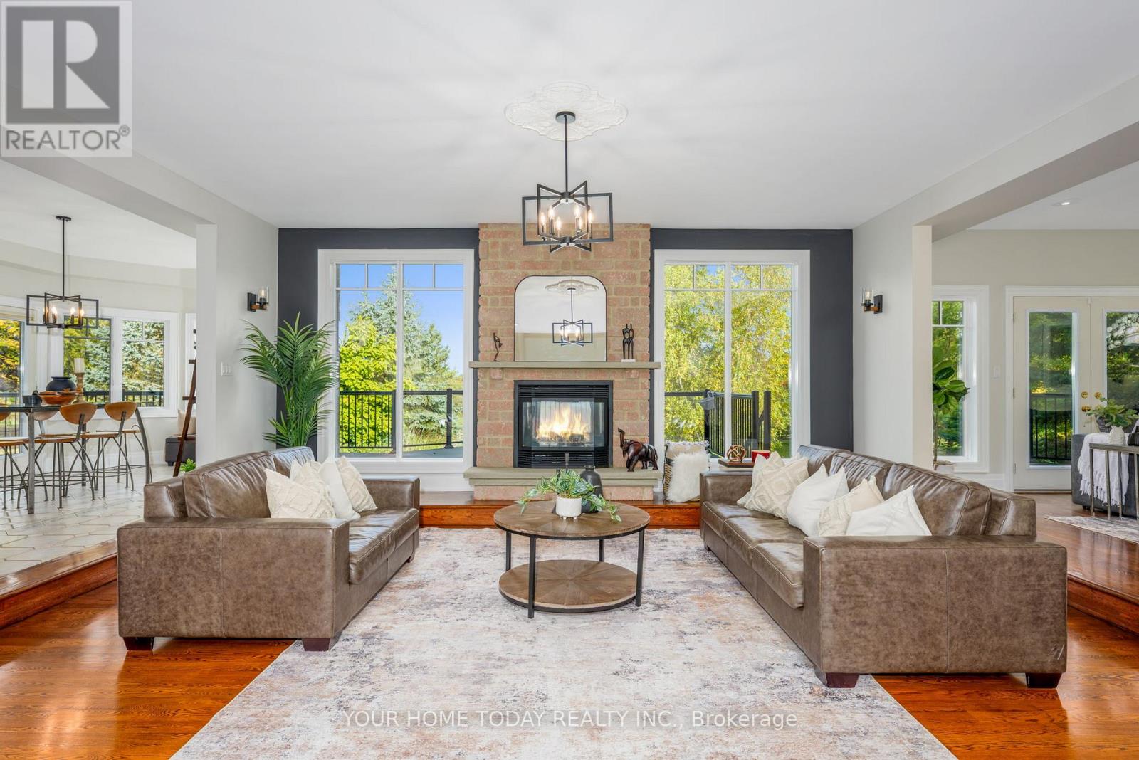 Magnificent is the only way to describe this home & property! Situated on a beautiful 1.05-acre lot in a small enclave of executive homes & backing onto the prestigious Blue Springs Golf Course offering million-dollar views & great golf! Set up for multi-generational/blended family living w/ potential for 3 separate, privately accessed, living areas - perfect for in-laws, children, nanny, home office & more! A circular drive & inviting covered porch welcome you into this immaculate home featuring ~6,000 sq. ft. of beautifully finished living space, multiple W/O's, plus an ~900 sq. ft. unfinished loft (sep access). A grand foyer sets the stage for this outstanding home w/impressive 2-story ceiling & sweeping staircase to both the upper & lower level. The main level features an O/C kitchen/living/family room, the heart of the home, across the back to take advantage of the amazing views! The gourmet kitchen offers all the bells and whistles - large island w/seating, granite counter, W/I pantry, SS appliances & W/O to a party-sized composite deck O/L the breathtaking yard. The adjoining sunken family w/gas f/p & huge windows & living room with another W/O make entertaining a pleasure. A formal dining room w/coffered ceiling complimented by accent lighting adds to the enjoyment. A bdrm/office, service entrance, powder room, laundry room & mudroom w/a 2nd staircase to the basement along w/access to the garage & loft complete the main level. The upper level offers 4 spacious bdrms, the primary w/2 Juliette balconies, W/I closet & luxurious 6-pc ensuite. The remaining 3 bdrms share an elegant 5-pc bthrm. The lower level featuring a separate entrance enhances the home w/a spacious O/C area, full kitchen, rec room, W/O to a covered patio, 5th bedroom, 3-pc, huge cantina/cold cellar & plenty of storage/utility space. A 3.5 car garage & parking for 12 cars complete the package. Great location. Close to Fairy Lake & Prospect Park w/easy access to 401 for commuters. (id:4555)