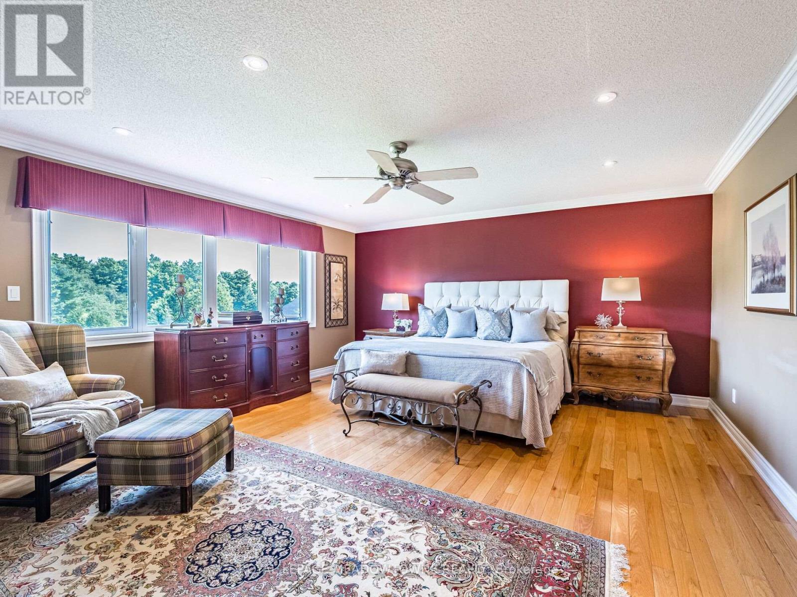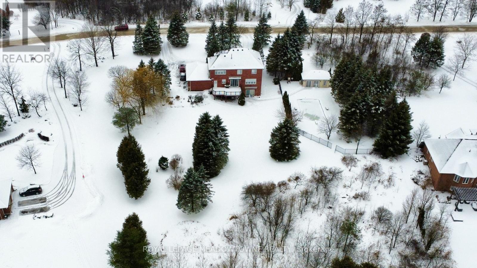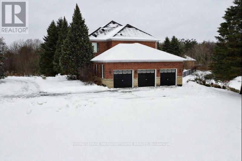 Welcome to 8 Deer Run an exceptional property in a sought-after executive estate subdivision. This private retreat sits on nearly 4 acres, including 1 acre of protected conservation. This beautifully maintained home offers approx. 3,100 sq ft above grade plus a walkout basement, combining timeless charm with modern upgrades. Perfect commuter location centrally located just minutes to Guelph, Milton, and Acton. The main floor features 9-ft ceilings, original hardwood, pot lights, crown moulding, a double-sided fireplace, and French doors opening to a coffered living room. The spacious eat-in kitchen includes granite countertops, travertine backsplash, built-in oven and cooktop, freezer, breakfast bar, walk-in pantry, and walkout to a 4-year-old deck with gas hookup and awning. A mudroom with laundry and deck access complements the 3-car garage. Upstairs offers 4 generous bedrooms, oak staircase with runner, and original strip hardwood. The primary suite features double-door entry, fireplace, large walk-in closet, and 6-pc ensuite with Jacuzzi tub, walk-in shower, linen storage, and new toilet. Updated 4-pc main bathroom and additional linen closet complete the level. The finished walkout basement with separate entrance to the in-law suite offers 9-ft ceilings, above-grade windows, a 3-sided fireplace, wet bar, cold room, and bedroom with stove connection and huge walk-in closet (or use as second bedroom) plus 3-pc ensuite and laminate flooring. The fenced-in 7-ft deep pool is thermal heated with a 2-year-old pump and filter. Enjoy a fully equipped pool house with running water and electricity, interlock walkway, perennial landscaping, sprinkler system, electric dog fence, surround sound, and outdoor fridge/freezer. Roof on house and pool house replaced 4 years ago with new gutters and guards. A true oasis with incredible privacy, just minutes to amenities (id:4555)