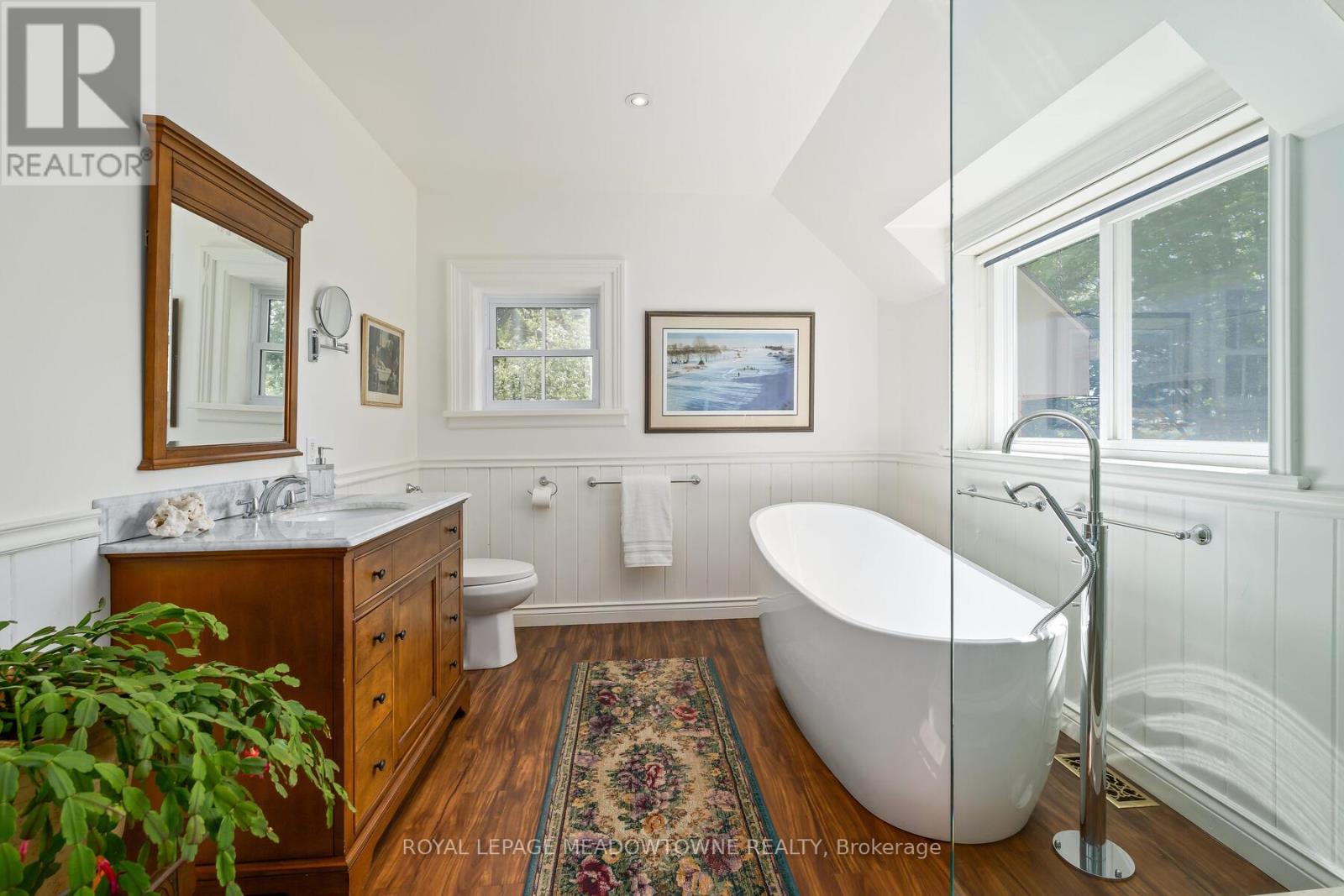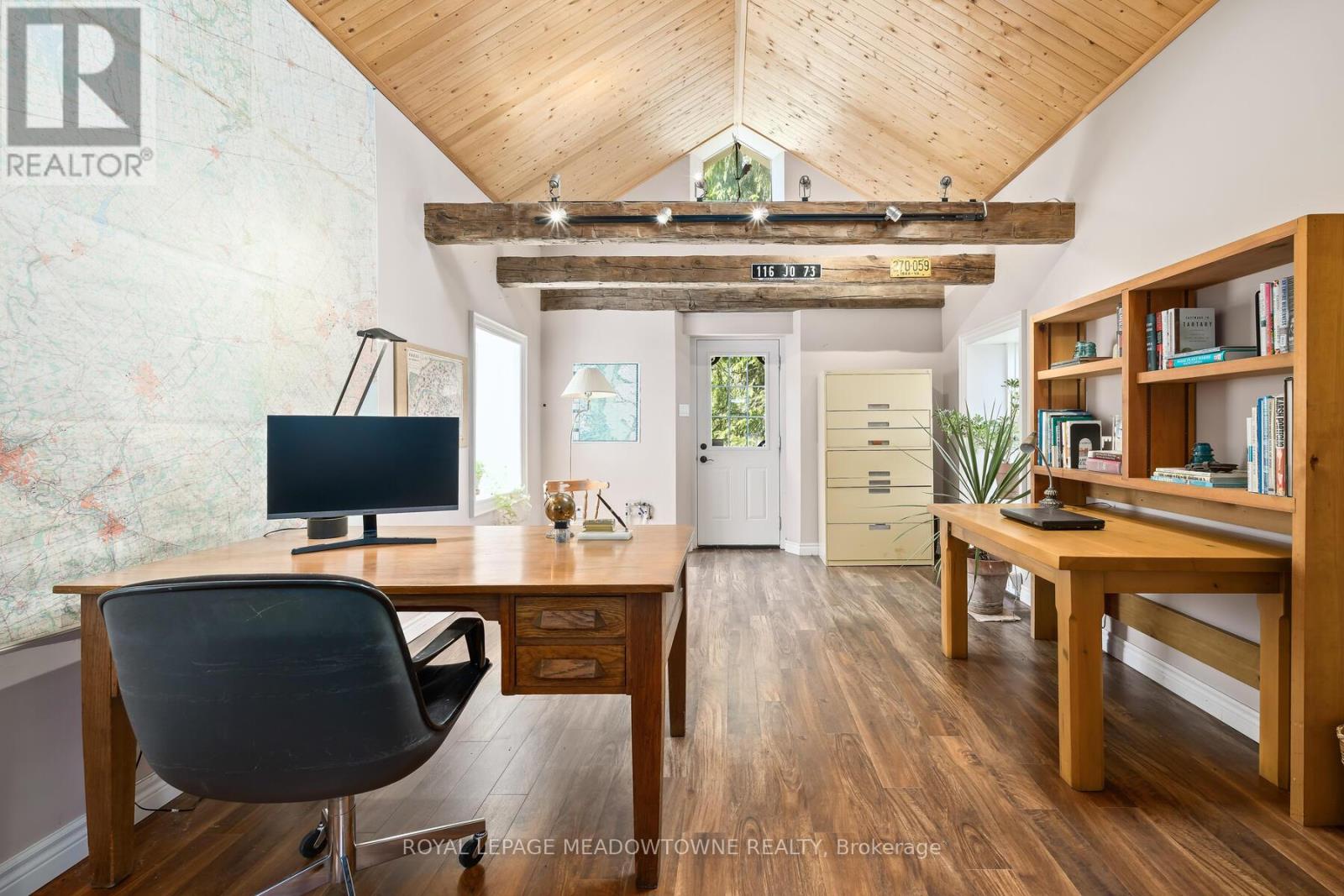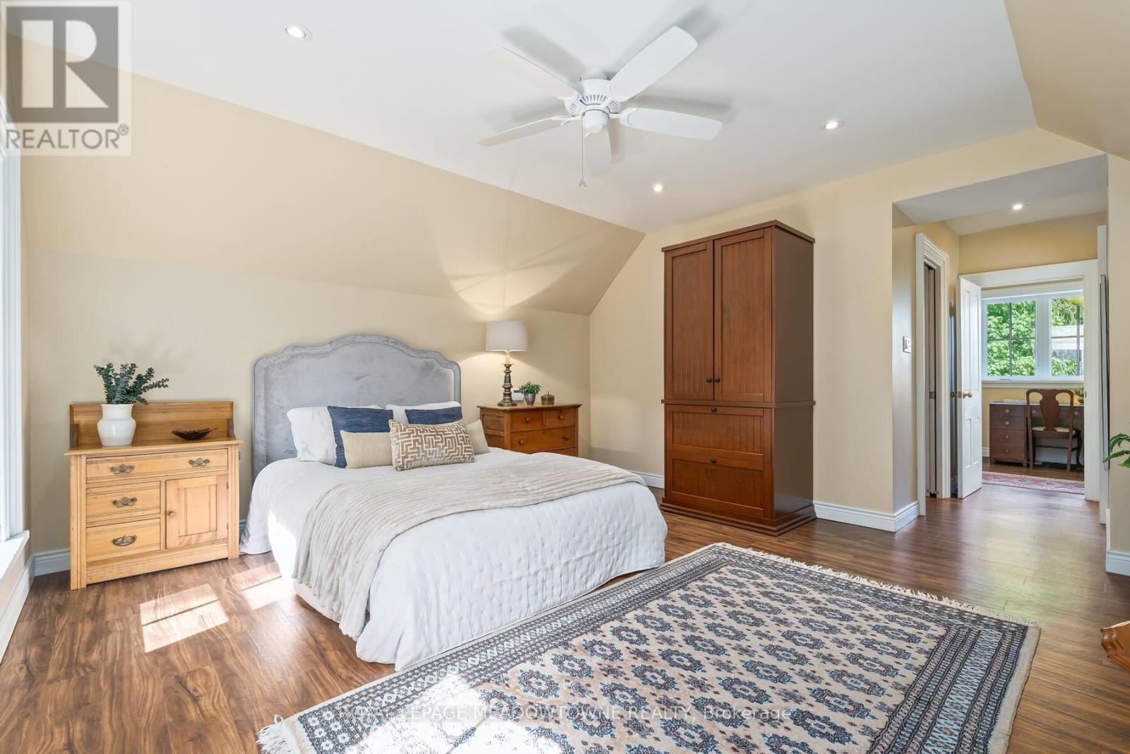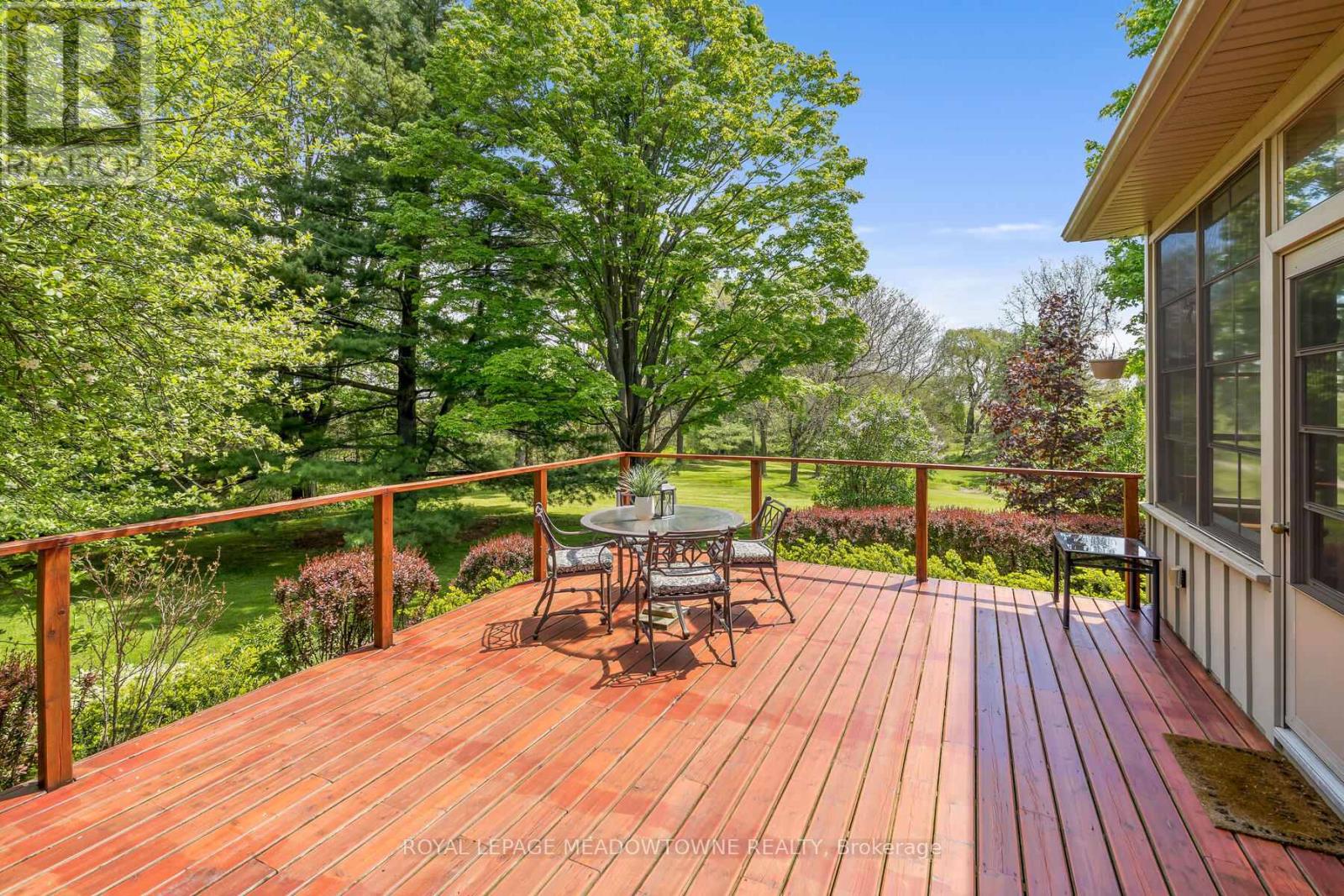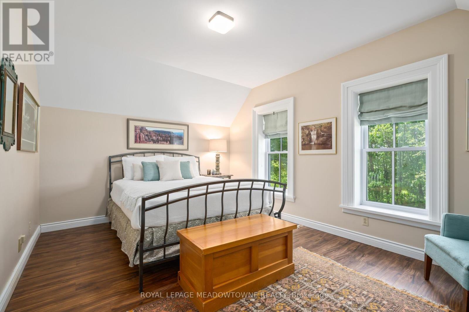 Picture perfect setting on 84+ beautiful acres in the heart of Halton Hills Country! Fabulous tree-lined drive and professionally landscaped gardens welcome you to this gorgeous century home in mint condition and completely updated with lovely country views from every window, spectacular stone studio with tons of charm and incredible barn plus a 5-bay driveshed. Versatile living space. The stone house can be used for an office, teenagers getaway, inlaw suite and so much more. Stunning open concept kitchen with quartz counters, breakfast bar, stainless steel appliances open to a sitting room with gas stove, formal living room w/cozy wood burning fireplace (with WETT compliance certificate), pretty dining room, primary suite with walk-in closet and luxurious ensuite, spacious three-season room boasting country views and tons of storage in the basement. The formal living room could work as a main floor bedroom ideal for an elderly family member making it a three bedroom home. Heated floors at entrance, hardwood flooring, main floor laundry, updated plumbing and electrical, skylights, pot lighting, wainscotting & more. Tastefully designed keeping all the charming character but with modern conveniences. Forced air gas heating - a rare find in the country! Also includes solar panels. Approx 65 acres farmed. Prime location centrally located close to Georgetown, Milton and Acton and minutes to the 401 & the GO. It's the perfect country package! (id:4555)