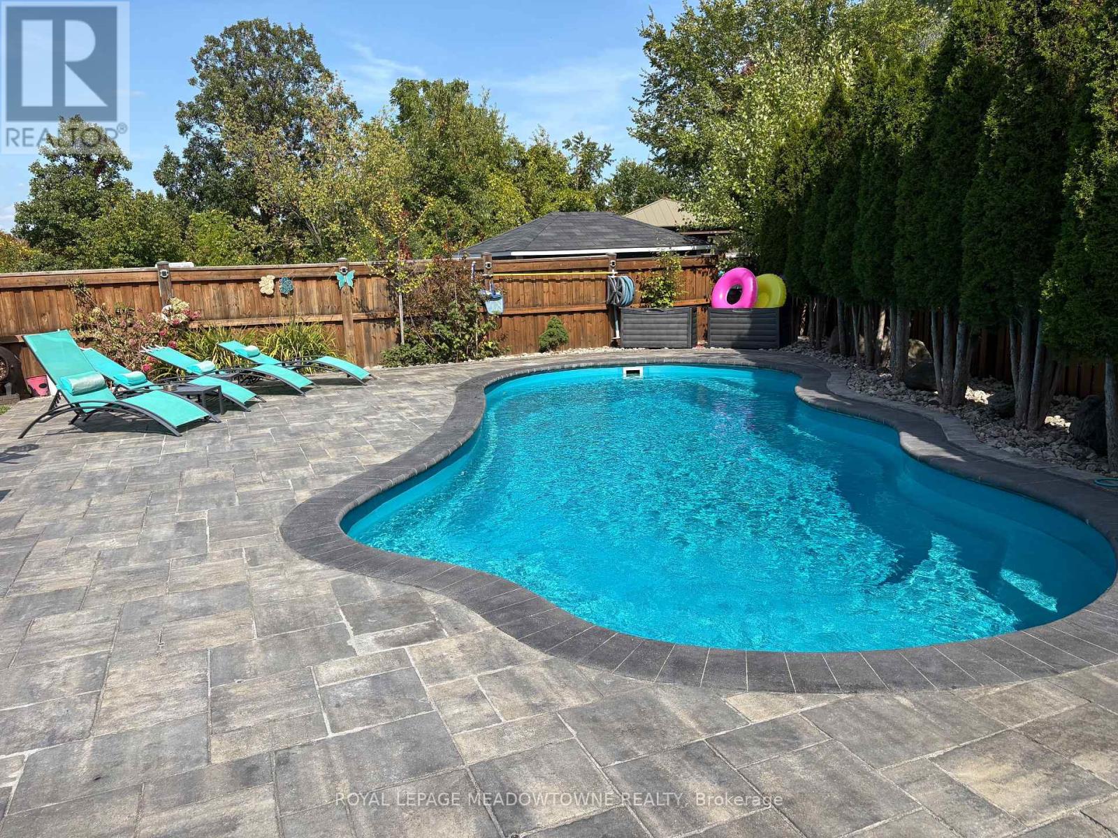 Exceptional Fernbrook-built Tavistock model located on a premium pie-shaped lot in a quiet South Georgetown court. This spacious home offers 4+1 bedrooms, 5 bathrooms, 2,912 sq. ft. above grade, and a fully finished basement---ideal for growing or multi-generational families. Curb appeal is enhanced by a double garage and extended driveway with parking for six. Inside, a welcoming entry with walk-in closet leads to elegant hardwood floors throughout the main level. A functional mudroom and laundry area provide everyday convenience. Separate living and dining rooms create perfect spaces for entertaining, while the inviting family room with fireplace overlooks the well-appointed kitchen featuring quartz counters, stainless steel appliances, modern backsplash, ample cabinetry, and a generous breakfast peninsula. The upper level offers a bright open hallway with pot lighting and hardwood floors. The primary suite is a private retreat with double-door entry, custom walk-in closet, and luxurious 5-piece ensuite with double vanity, glass shower, and soaker tub. Three additional bedrooms are generously sized with hardwood flooring and large closets, complemented by semi-ensuite access and a full main bath. The finished lower level expands your living options with open-concept space, laminate flooring, second kitchen, bedroom, 3-piece bath, additional laundry, and walk-out access---perfect for in-law potential or extended family use. Step into a backyard designed for relaxation and entertaining, featuring an in-ground pool, hot tub, stone patio, elevated deck, and storage shed. Conveniently located near trails, Gellert Community Park, schools, shopping, and dining. A rare opportunity in one of Georgetown's most desirable neighbourhoods. (id:4555)
