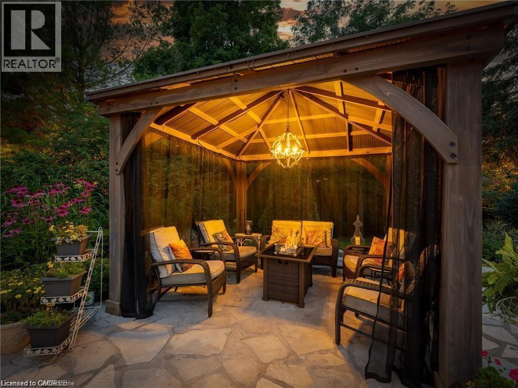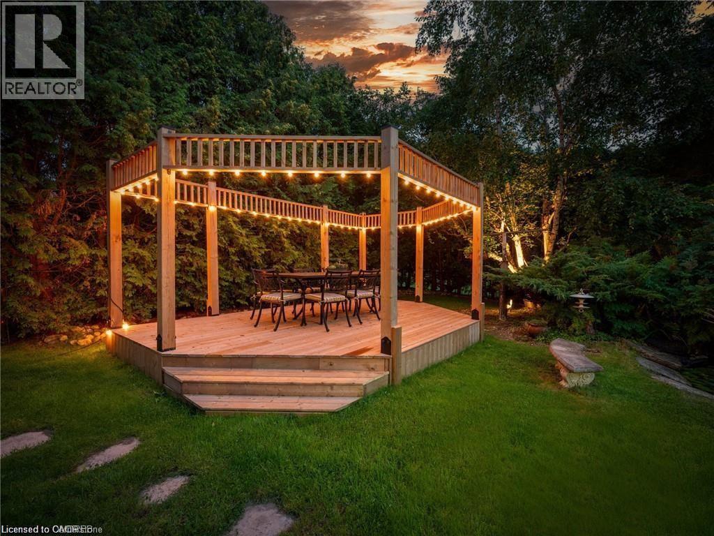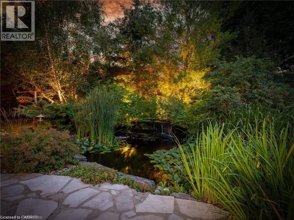Welcome to this ULTRA-PRIVATE SECRET GARDEN - A Rare Executive Country Estate Property backing onto Blue Springs Golf Club (Home of PGA Canada) w/ the most stunning yard that will rival any luxury resort. This prestigious all-brick home features open concept living + fully finished basement. It is nestled on a stunning 1.38-ACRE LOT (including a beautiful side lot for added privacy) in a quiet enclave of distinguished executive homes. There is a sense of space as you enter the grand foyer w/ its 9' ceilings and curved staircase. The heart of this home is the gourmet EI kitchen which overlooks the WO to the stunning yard and living room w/ vaulted ceiling, fireplace and additional WO to the yard. There is a main level office located off the front entrance and convenient main level laundry w/ tub. The upper floor has 3 generous bedrooms (there were 4 - can easily convert back), one being the primary bedroom with his/her closets and 5-pc ensuite. The basement features an over-sized 4th bedroom, RI for bathroom, a 2nd office, gym, family room and workshop. The dream yard will take your breath away and includes a pavilion for dining al fresco, heated pool, koi pond w/ waterfall, golf-themed bar, screened-in pergola, extensive hardscaping (2000+ SF of flagstone installed on 3 of concrete for stability) and professional low-maintenance landscaping - the ultimate space for entertaining. Additional features: 3-car garage, parking for 10+ in the driveway, garage entry to home, replaced exterior doors, no rentals, energy efficient gas pool heater (2018), pool liner and cover (2025), furnace (2017), well pump (2024); water softener, UV system, HWT all owned; all windows replaced and home re-insulated, extensive UG sprinklers (including side lot), 12 x 16 double-sided pine Mennonite-built shed. Peaceful location close to golf, trails, lake, 15 minutes to 401. This is your opportunity to finally make a luxury move to the country ... let's get you in there for summer! (id:4555)