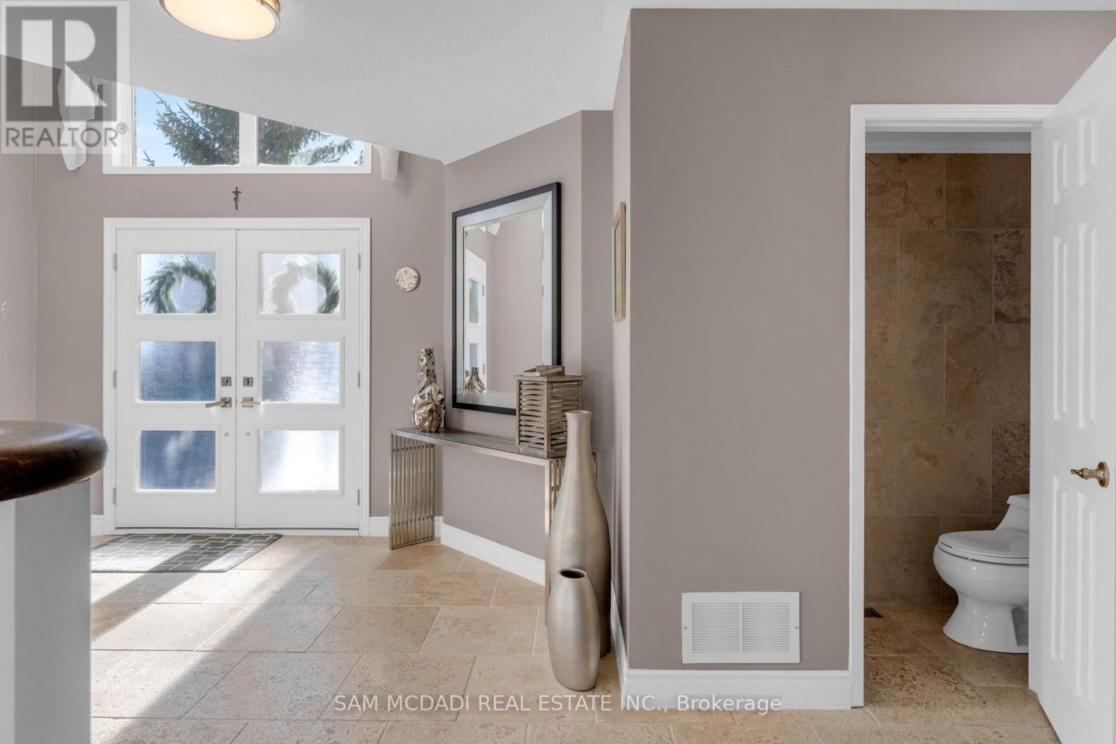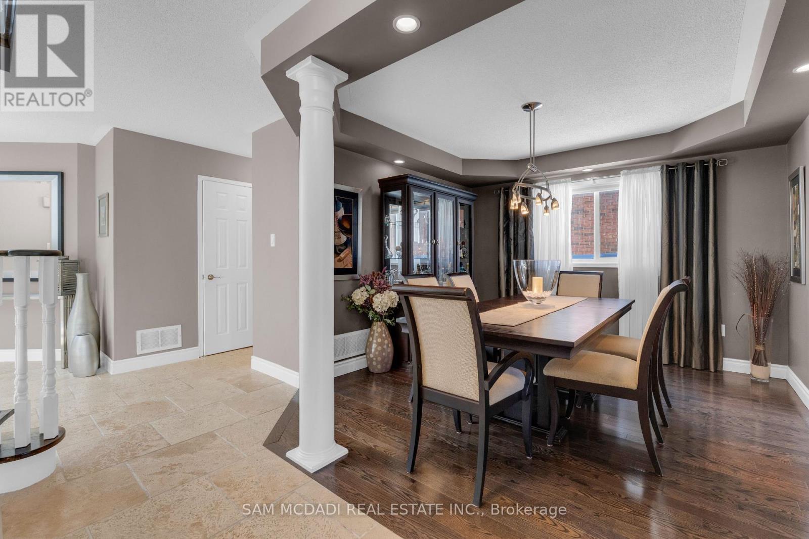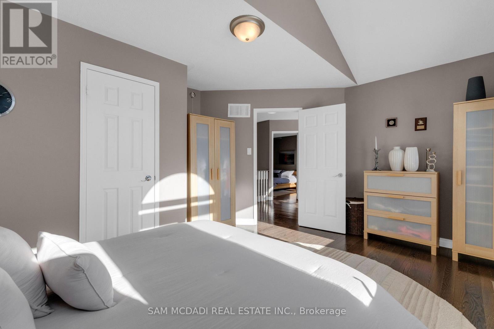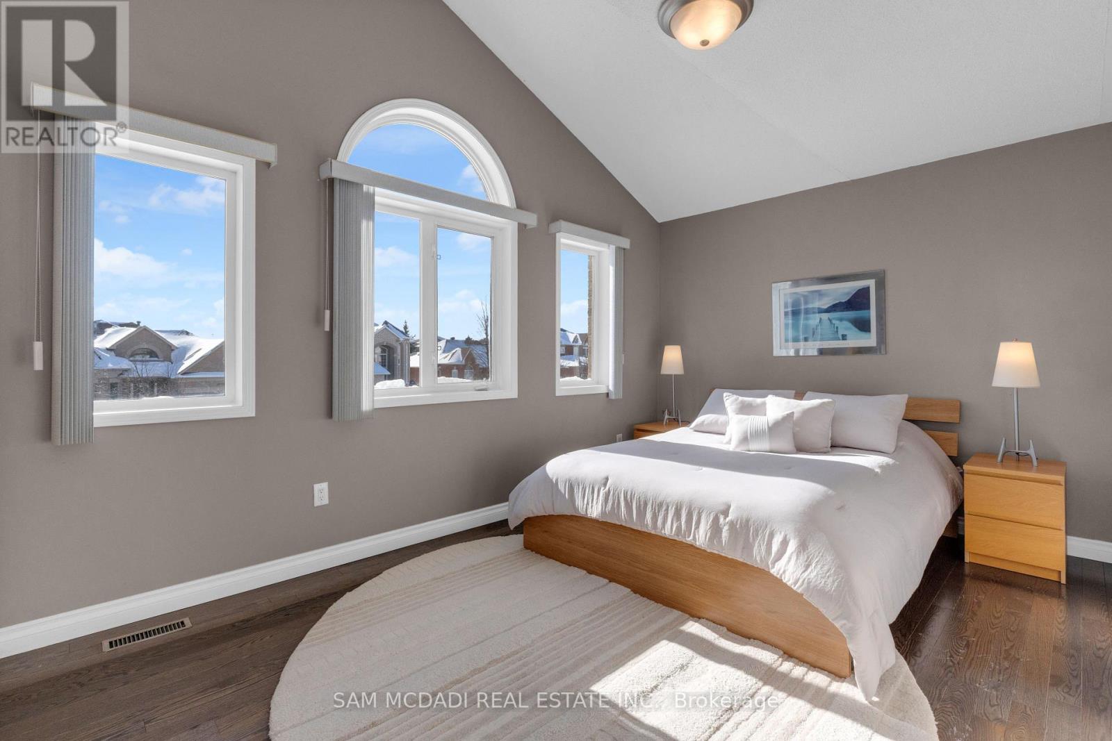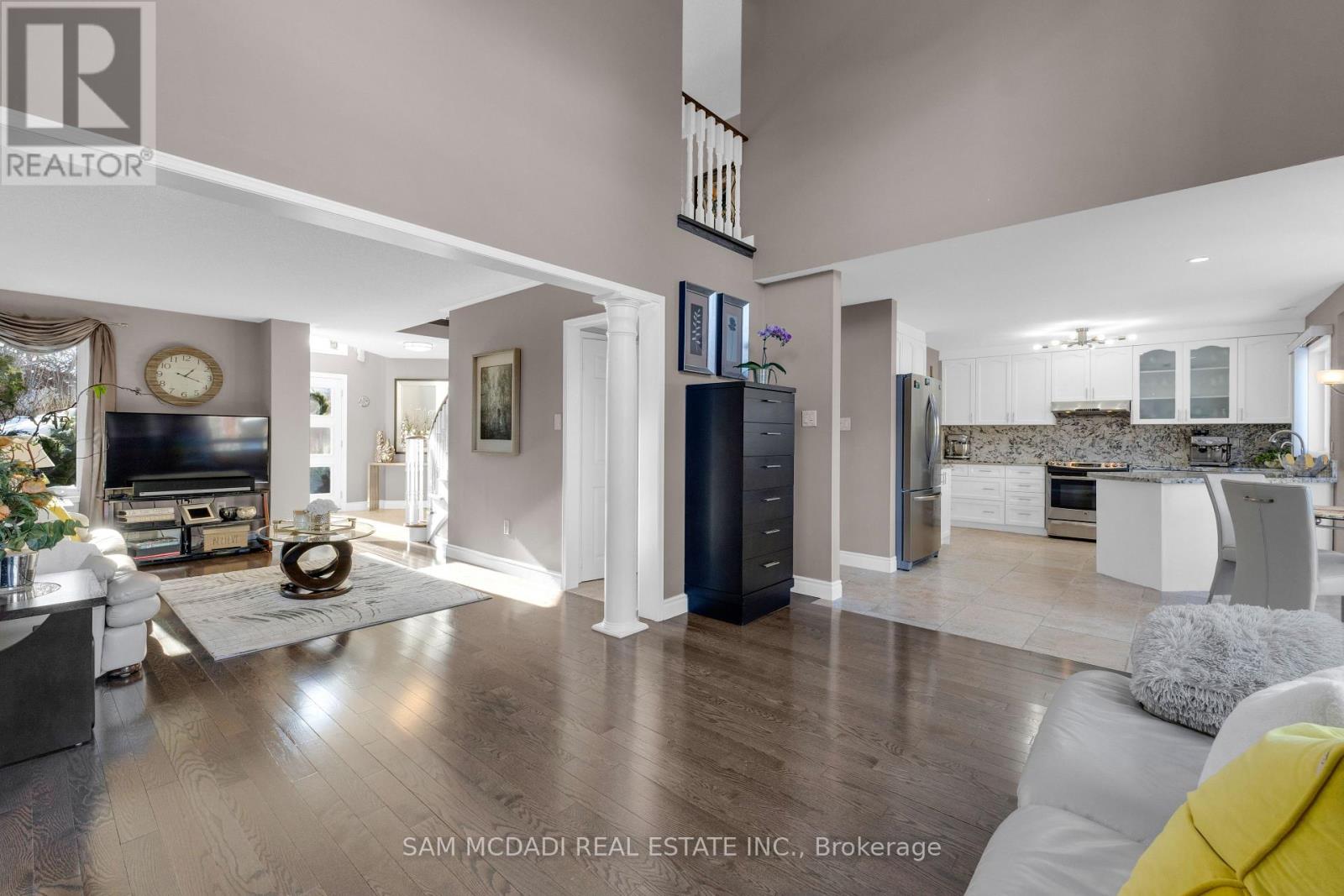 Bright, spacious and full of style - welcome to this gorgeous 3+1 bed, 4-bath home with a dramatic 20+ ft open-to-above ceiling over the family room (easy to convert into that 4th bedroom if you like). At roughly 2,400+ finished sq ft plus the basement, this place is packed with classy upgrades and thoughtful finishes. Walk in to stone tile and hardwood flowing through the main and second floors. The kitchen is a showstopper: granite counters and backsplash, stainless steel appliances, and a cozy eat-in area. The great room boasts sky-high windows, tons of natural light and a gas fireplace - perfect for relaxing or entertaining. Separate living and dining rooms give everyone room to spread out. Upstairs you'll find a roomy primary bedroom with two closets and a 4-piece ensuite, plus two more good-sized bedrooms. The open-to-above area above the family room was pre-planned for a 4th bedroom at build time, so converting it is straightforward. The finished basement adds real value: wet bar, 3-piece bath, bedroom and a large rec space with durable newer laminate flooring - ideal for guests, teens, or a home theatre. Outside, the backyard is a private oasis with lush greenery, a stone patio and an irrigation/sprinkler system that keeps the lawn looking great. Location can't be beat - within walking distance to grocery stores, Shoppers Drug Mart, Tim Hortons and the fantastic Gellert Community Centre & Park. A short drive gets you Toronto Premium Outlets, Hwy 407 and 401, plus all other local amenities. Additional upgrades: renovated baseboards, bathroom, kitchen, great curb appeal and front entry with double door, 9 yr old roof, newer commercial grade driveway, interlocking, sprinklers and mature landscaping all around, 3 ton AC unit for enhanced cooling, many windows with replaced glass panes and caulking. (id:4555)