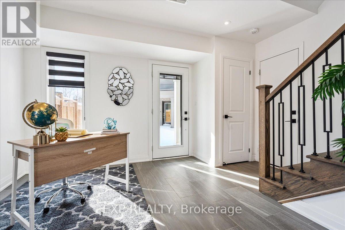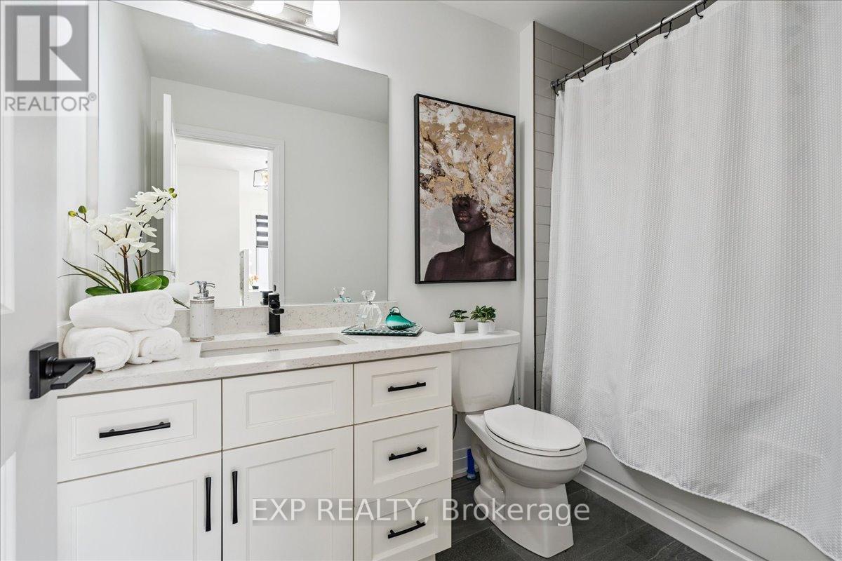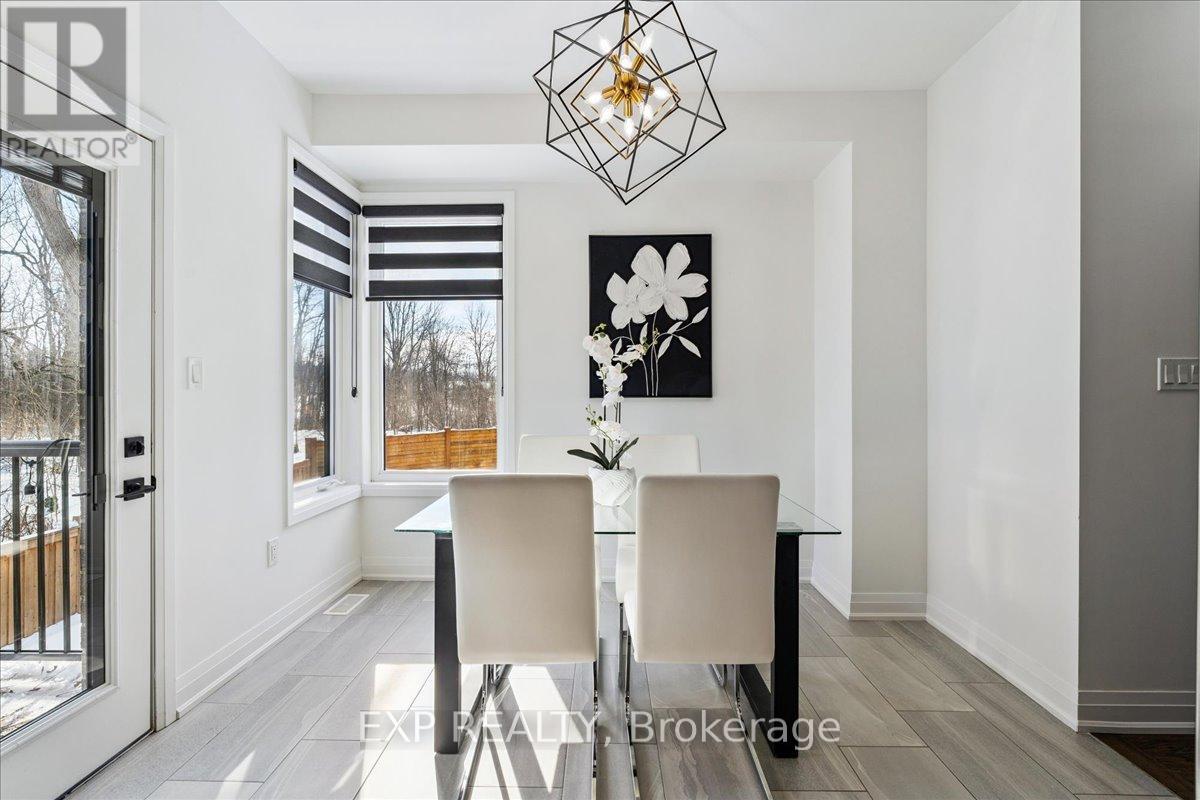 WELCOME HOME to modern luxury at its finest! A stunning, nearly new (built by Worthington Homes) freehold end-unit townhome with rare two-car garage and double driveway in Georgetown's highly sought-after Trafalgar Square community. This home is perfectly positioned on a premium lot without rear neighbours, just steps from The Club at North Halton Golf Course - the ideal blend of nature's serenity and City convenience. Flooded with natural light, this beauty showcases elegant contemporary finishes including wide-plank hardwood floors, quartz counters in the kitchen and bathrooms, premium ceramic tile, upgraded pot lights, gorgeous chandeliers, and contemporary custom zebra blinds throughout which are remoted-controlled in the primary suite and family room!! The ground level offers a versatile walk-out to the fully fenced yard from the recreation room or home office and direct access to the oversized two-car garage. The main level features a bright, open-concept large family room and dining space with huge windows and custom fireplace feature wall, perfect for entertaining. The chef-inspired large eat-in kitchen is equipped with stainless steel appliances, soft-close cabinetry, and a walk-out to the deck overlooking the private backyard and beautiful green space . . . no neighbours behind! Upstairs, the spacious primary suite enjoys tranquil nature views, a walk-in closet, and a luxurious 3-piece ensuite with an oversized glass shower featuring floor-to-ceiling tile. Two additional generously sized bedrooms, a full main bathroom, practical laundry, and a convenient den/media niche completes the third floor! Ideally located minutes from Downtown Georgetown, the GO Station, Highway 401, shops, restaurants, the hospital, conservation, trails, the fairground and Trafalgar Sports Park. This turn-key home offers the perfect balance of small-town charm & urban style in the City!! Your future home awaits - don't miss this incredible opportunity to make it yours! (id:4555)