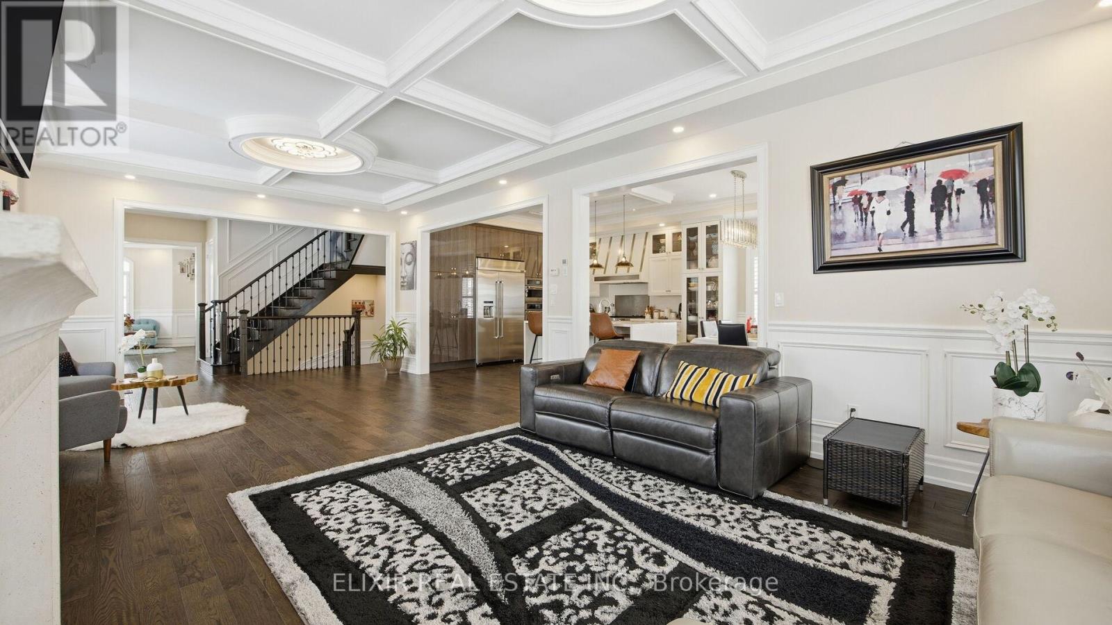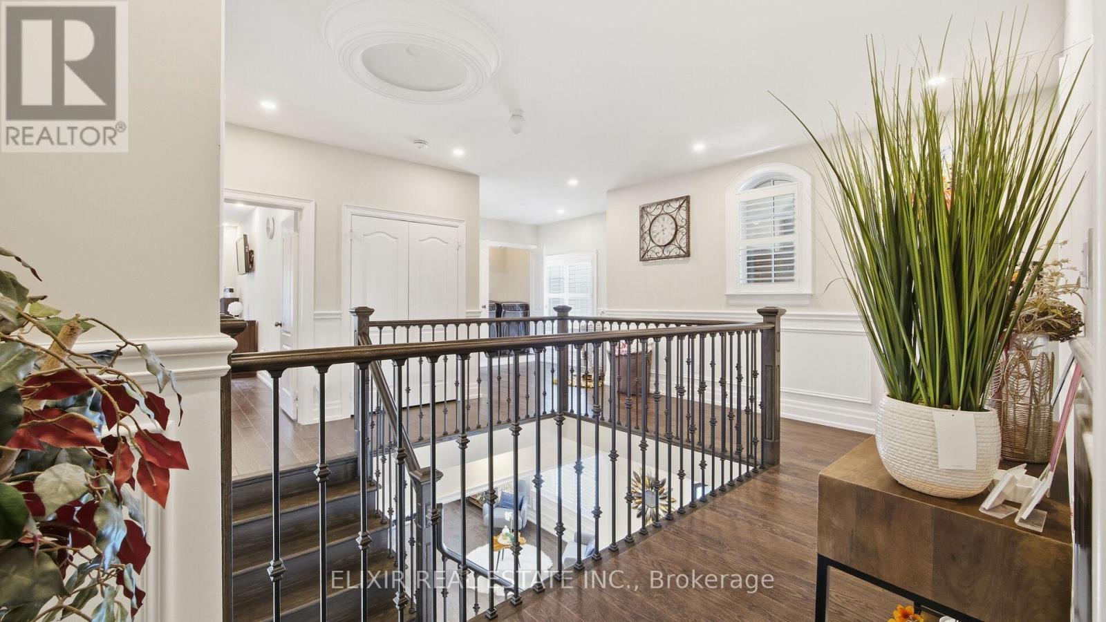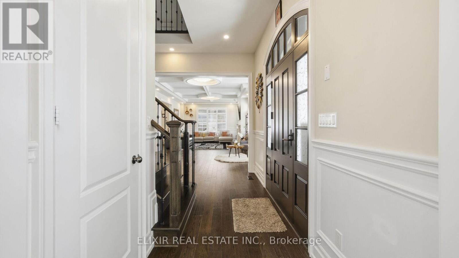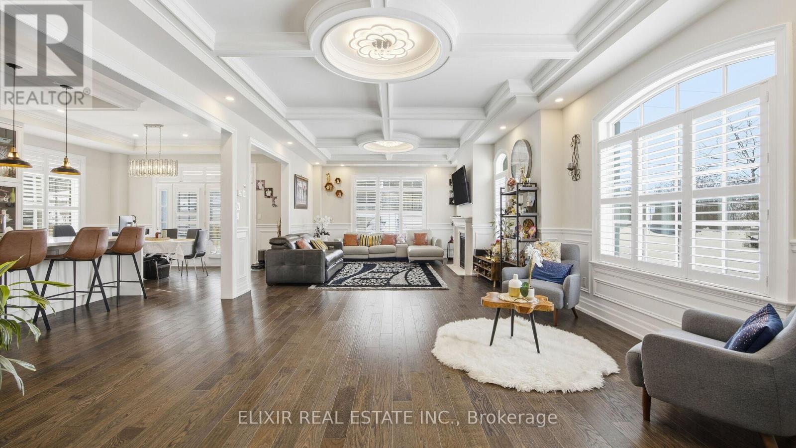Welcome to a statement of refined luxury in the prestigious Riverwood community of Halton Hills. Set on a rare, premium corner lot, this exceptional 2018-built detached residence offers 4+1 bedrooms and 5 bathrooms, thoughtfully designed for elevated living with uncompromising attention to detail. The home's stone and brick façade, paired with professionally installed interlocking in the front and backyard, delivers timeless curb appeal with effortless maintenance. Step inside to an atmosphere of sophistication highlighted by 10-ft custom coffered ceilings, rich premium hardwood flooring, designer wainscoting, and pot lights throughout. The expansive, sun-filled layout features separate living and family rooms with a defined dining space, creating the perfect balance between elegant entertaining and everyday comfort. The heart of the home is a chef-inspired gourmet kitchen, showcasing high-end JennAir stainless steel appliances, custom Cameo cabinetry, Caesarstone countertops, and a striking oversized island-designed for both culinary excellence and upscale hosting. A custom-stained staircase seamlessly matches the hand-scraped engineered hardwood flooring, leading to the upper level where luxury continues. Upstairs, discover four generously sized bedrooms, including a primary suite retreat with soaring ceilings, his-and-her closets, and a spa-like 5-piece ensuite. Each additional bedroom features a private or semi-private bathroom, offering hotel-style comfort and privacy for family and guests. The fully finished basement extends the home's luxurious living space with an additional bedroom, a large recreation area, and an open-concept exercise zone-ideal for guests or a home wellness retreat. Located near parks, trails, top-rated schools, and community centers. This is a rare luxury lifestyle opportunity in Georgetown's most sought-after neighborhood. Once you experience it, there's no comparison (id:4555)
