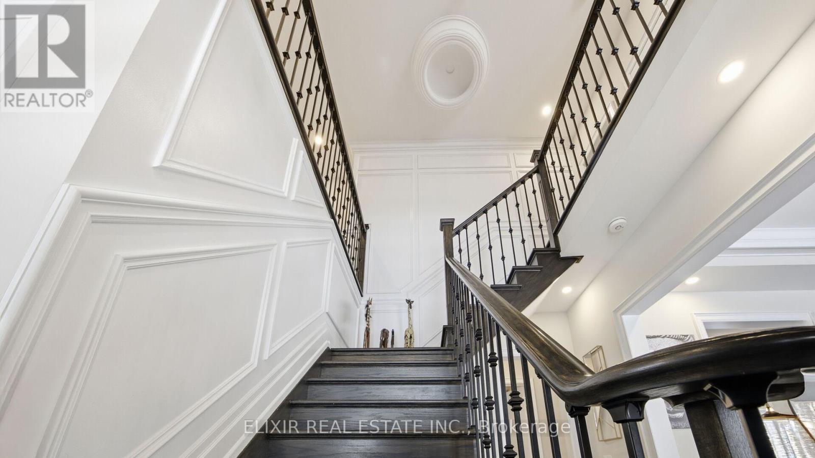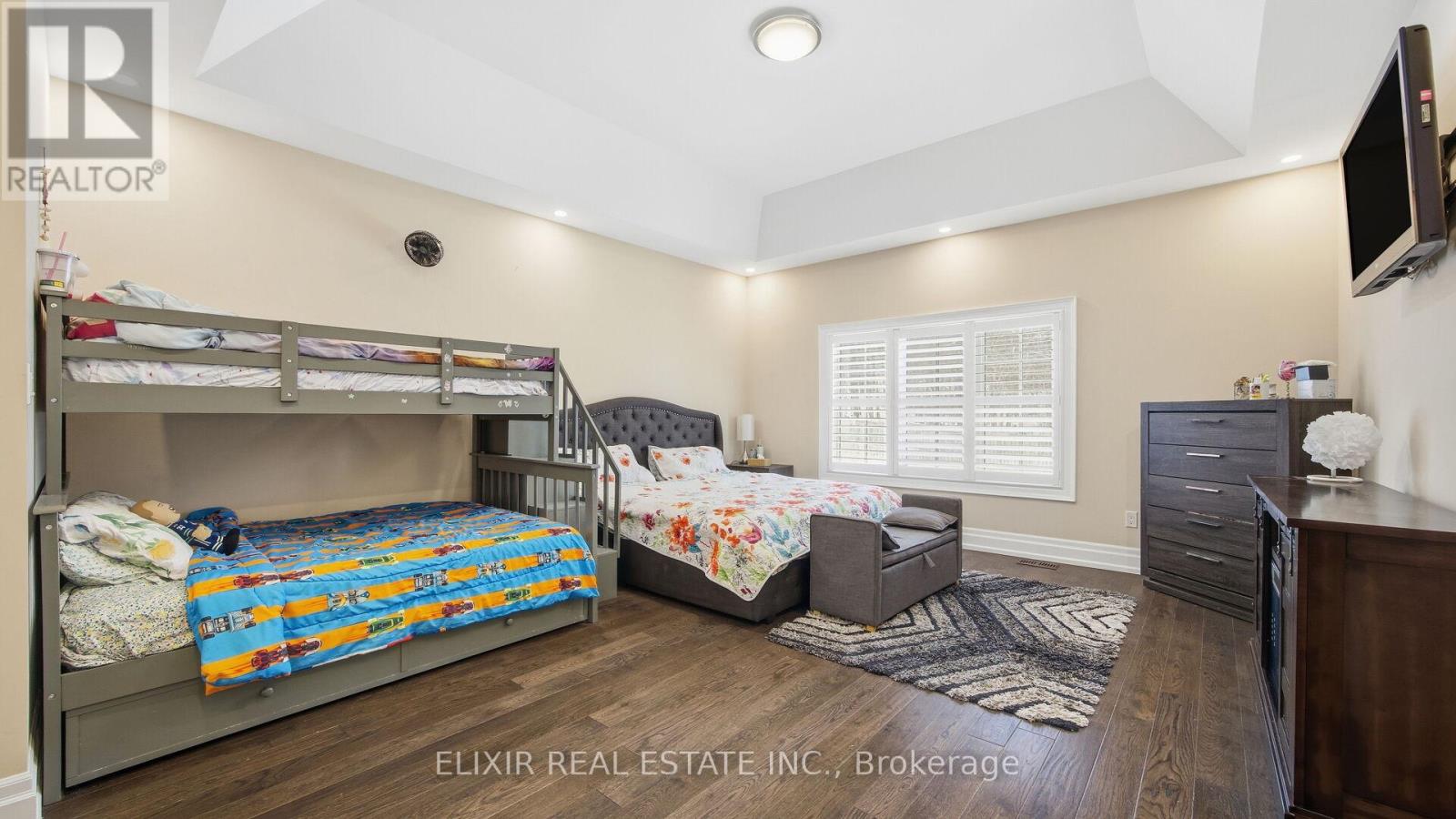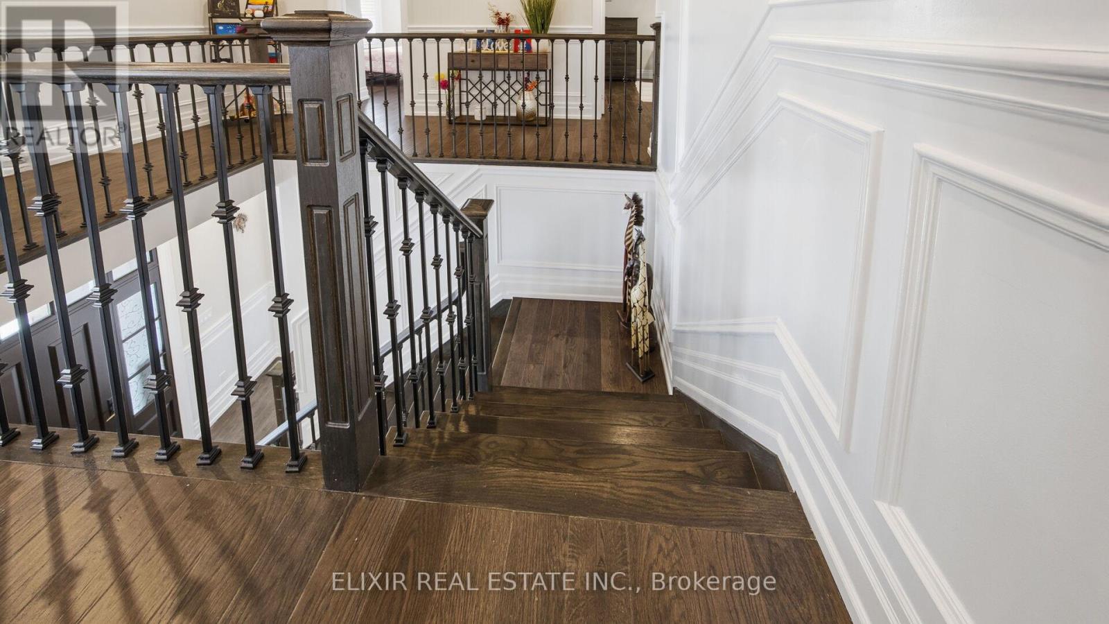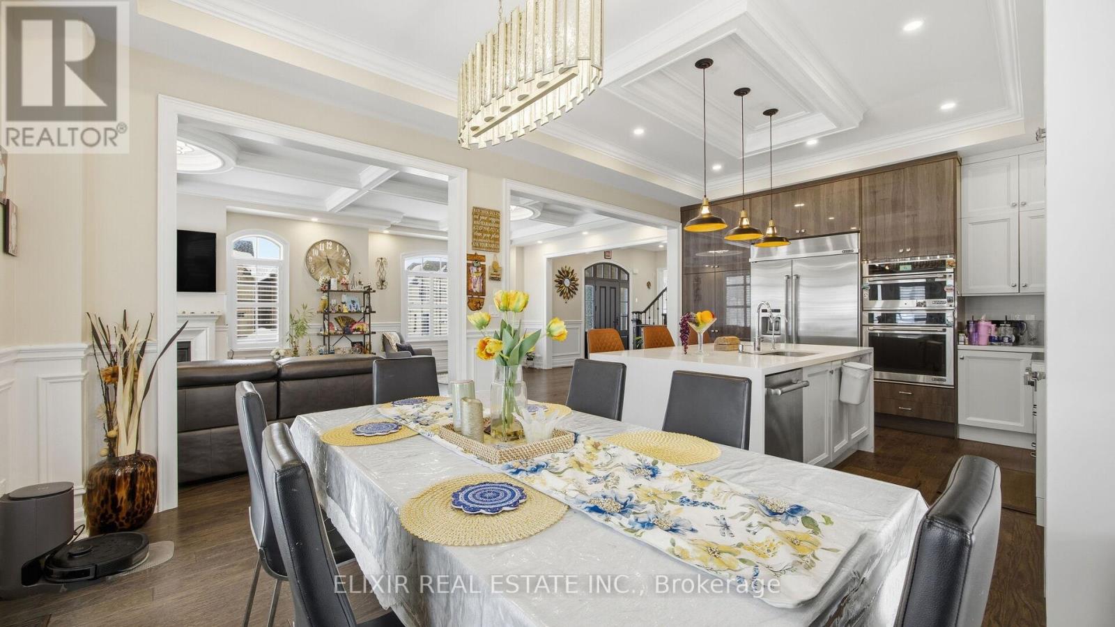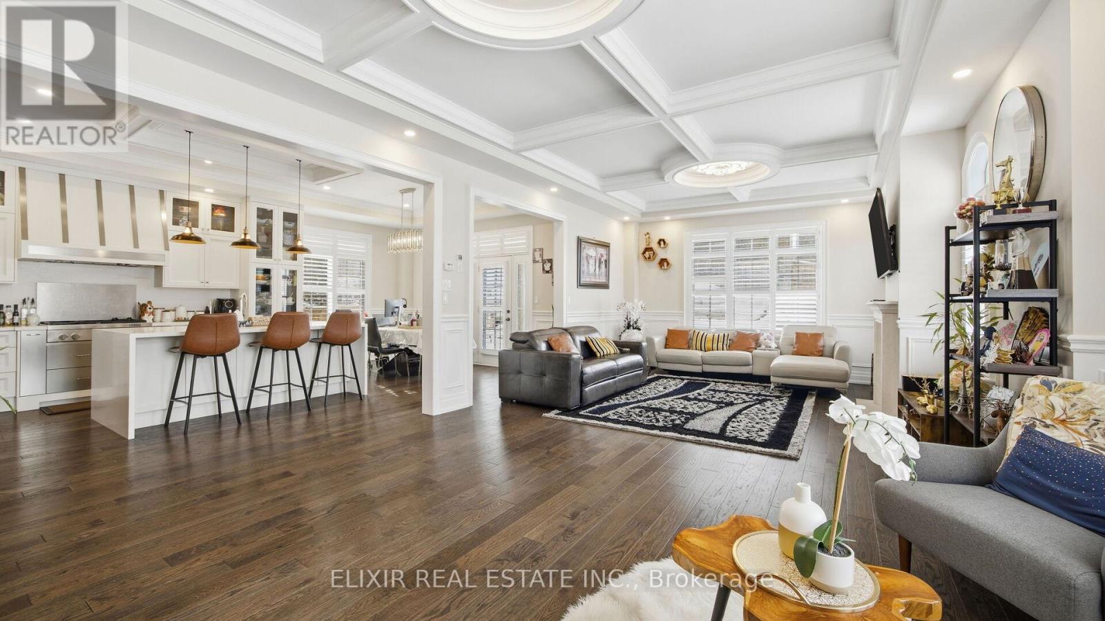 Welcome to a statement of refined luxury in the prestigious Riverwood community of Halton Hills. Set on a rare, premium corner lot, this exceptional 2018-built detached residence offers 4+1 bedrooms and 5 bathrooms, thoughtfully designed for elevated living with uncompromising attention to detail. The home's stone and brick façade, paired with professionally installed interlocking in the front and backyard, delivers timeless curb appeal with effortless maintenance. Step inside to an atmosphere of sophistication highlighted by 10-ft custom coffered ceilings, rich premium hardwood flooring, designer wainscoting, and pot lights throughout. The expansive, sun-filled layout features separate living and family rooms with a defined dining space, creating the perfect balance between elegant entertaining and everyday comfort. The heart of the home is a chef-inspired gourmet kitchen, showcasing high-end JennAir stainless steel appliances, custom Cameo cabinetry, Caesarstone countertops, and a striking oversized island-designed for both culinary excellence and upscale hosting. A custom-stained staircase seamlessly matches the hand-scraped engineered hardwood flooring, leading to the upper level where luxury continues. Upstairs, discover four generously sized bedrooms, including a primary suite retreat with soaring ceilings, his-and-her closets, and a spa-like 5-piece ensuite. Each additional bedroom features a private or semi-private bathroom, offering hotel-style comfort and privacy for family and guests. The fully finished basement extends the home's luxurious living space with an additional bedroom, a large recreation area, and an open-concept exercise zone-ideal for guests or a home wellness retreat. Located near parks, trails, top-rated schools, and community centers. This is a rare luxury lifestyle opportunity in Georgetown's most sought-after neighborhood. Once you experience it, there's no comparison (id:4555)
