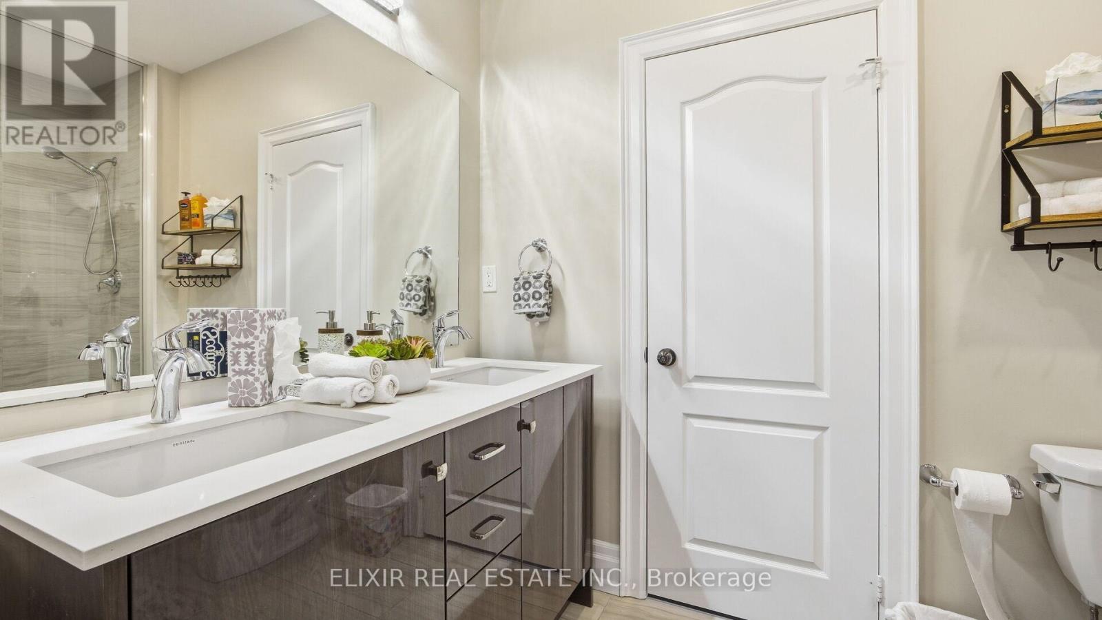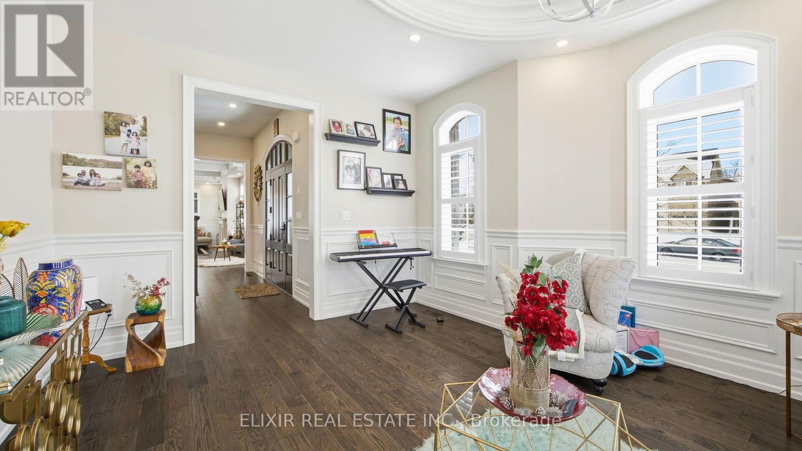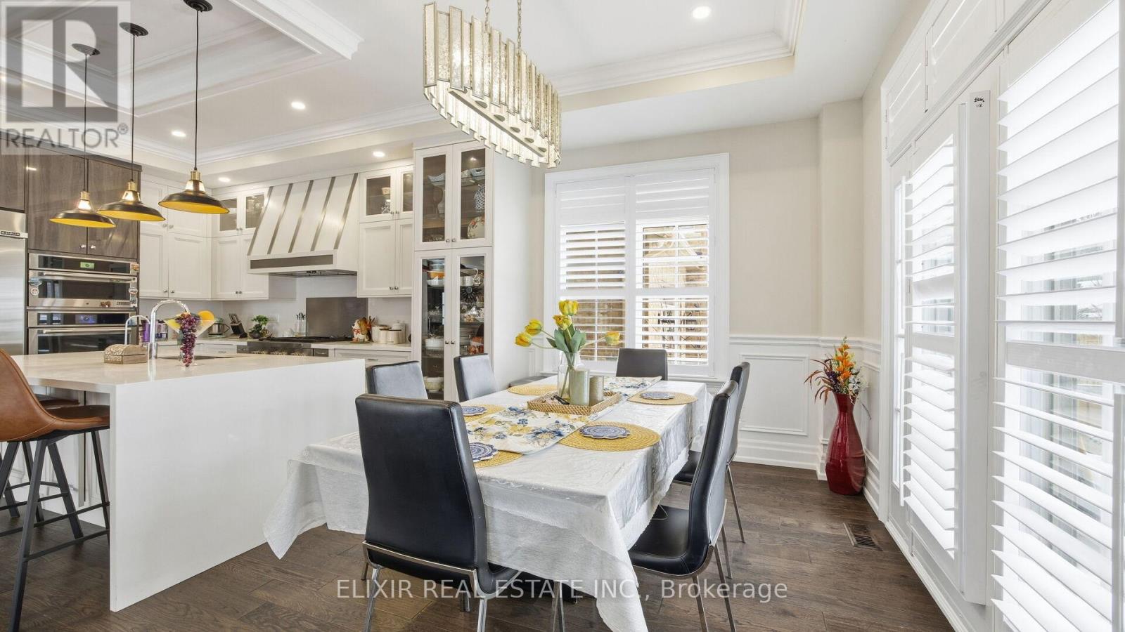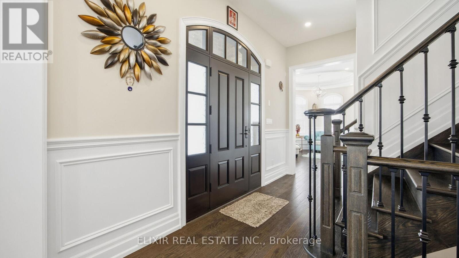 Welcome to a statement of refined luxury in the prestigious Riverwood community of Halton Hills. Set on a rare, premium corner lot, this exceptional 2018-built detached residence offers 4+1 bedrooms and 5 bathrooms, thoughtfully designed for elevated living with uncompromising attention to detail. The home's stone and brick façade, paired with professionally installed interlocking in the front and backyard, delivers timeless curb appeal with effortless maintenance. Step inside to an atmosphere of sophistication highlighted by 10-ft custom coffered ceilings, rich premium hardwood flooring, designer wainscoting, and pot lights throughout. The expansive, sun-filled layout features separate living and family rooms with a defined dining space, creating the perfect balance between elegant entertaining and everyday comfort. The heart of the home is a chef-inspired gourmet kitchen, showcasing high-end JennAir stainless steel appliances, custom Cameo cabinetry, Caesarstone countertops, and a striking oversized island-designed for both culinary excellence and upscale hosting. A custom-stained staircase seamlessly matches the hand-scraped engineered hardwood flooring, leading to the upper level where luxury continues. Upstairs, discover four generously sized bedrooms, including a primary suite retreat with soaring ceilings, his-and-her closets, and a spa-like 5-piece ensuite. Each additional bedroom features a private or semi-private bathroom, offering hotel-style comfort and privacy for family and guests. The fully finished basement extends the home's luxurious living space with an additional bedroom, a large recreation area, and an open-concept exercise zone-ideal for guests or a home wellness retreat. Located near parks, trails, top-rated schools, and community centers. This is a rare luxury lifestyle opportunity in Georgetown's most sought-after neighborhood. Once you experience it, there's no comparison (id:4555)