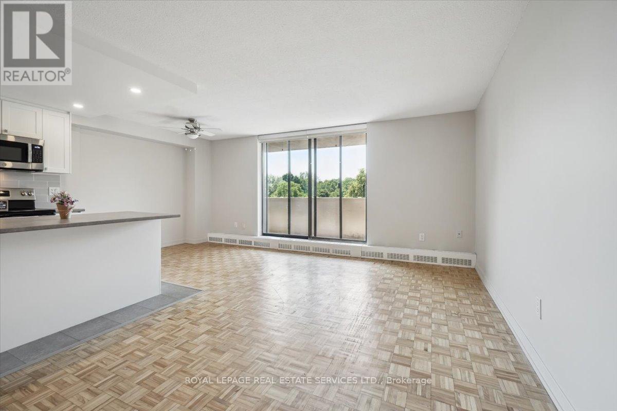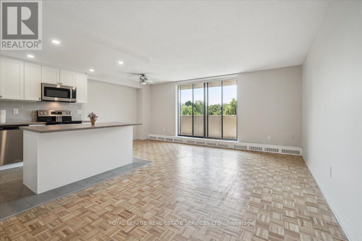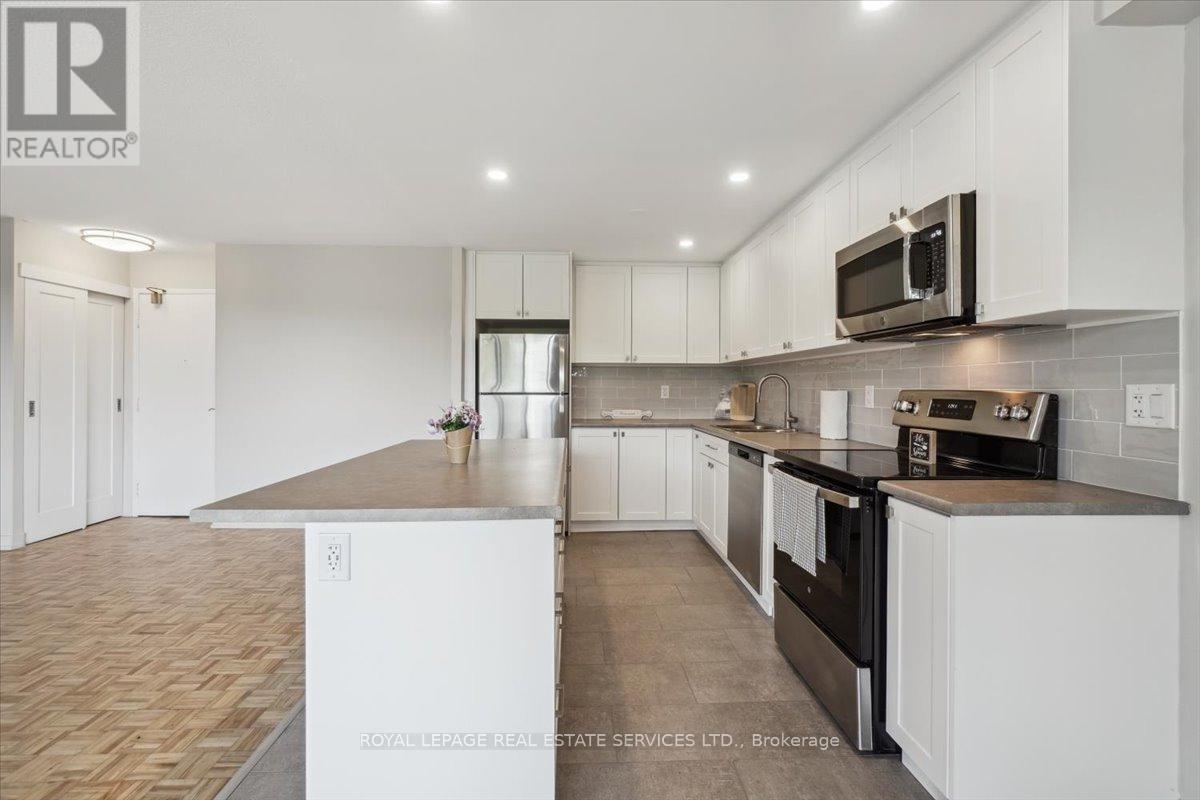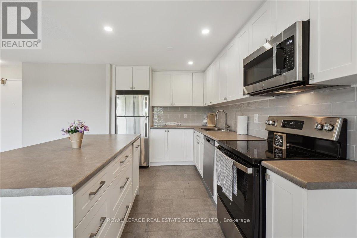 **Welcome to Silvercreek Towers , Where Nature Meets Convenience** Nestled in a peaceful natural setting yet just minutes from the many amenities of Georgetown, Silvercreek Towers offers the perfect blend of tranquility and accessibility. This spacious 2-bedroom suite boasts an open-concept layout with approximately 930 sq ft of living space, featuring hardwood flooring and a fresh coat of neutral paint throughout the suite. The renovated kitchen is a chefs delight, showcasing designer cabinetry with ample storage, a large island ideal for entertaining, sleek stainless steel appliances, a double sink, recessed lighting, a stylish tile backsplash, and plenty of prep space. Both the primary and second bedrooms include double sliding doors with custom built-in closet organizers. Additional updates include contemporary light fixtures and window coverings. Generous storage room located within the unit.. Building Amenities Include: Fitness room, Community BBQ area, Gazebo with picnic space, Pet-friendly environment, Onsite laundry facilities, Covered parking available. With easy access to GO Train and GO Bus services, and within walking distance to downtown Georgetown, shops, restaurants, parks, and trails, Silvercreek Towers offers the best of both worlds: serene surroundings and urban convenience. This is more than just a suite, its a place you will love to call home. (id:4555)