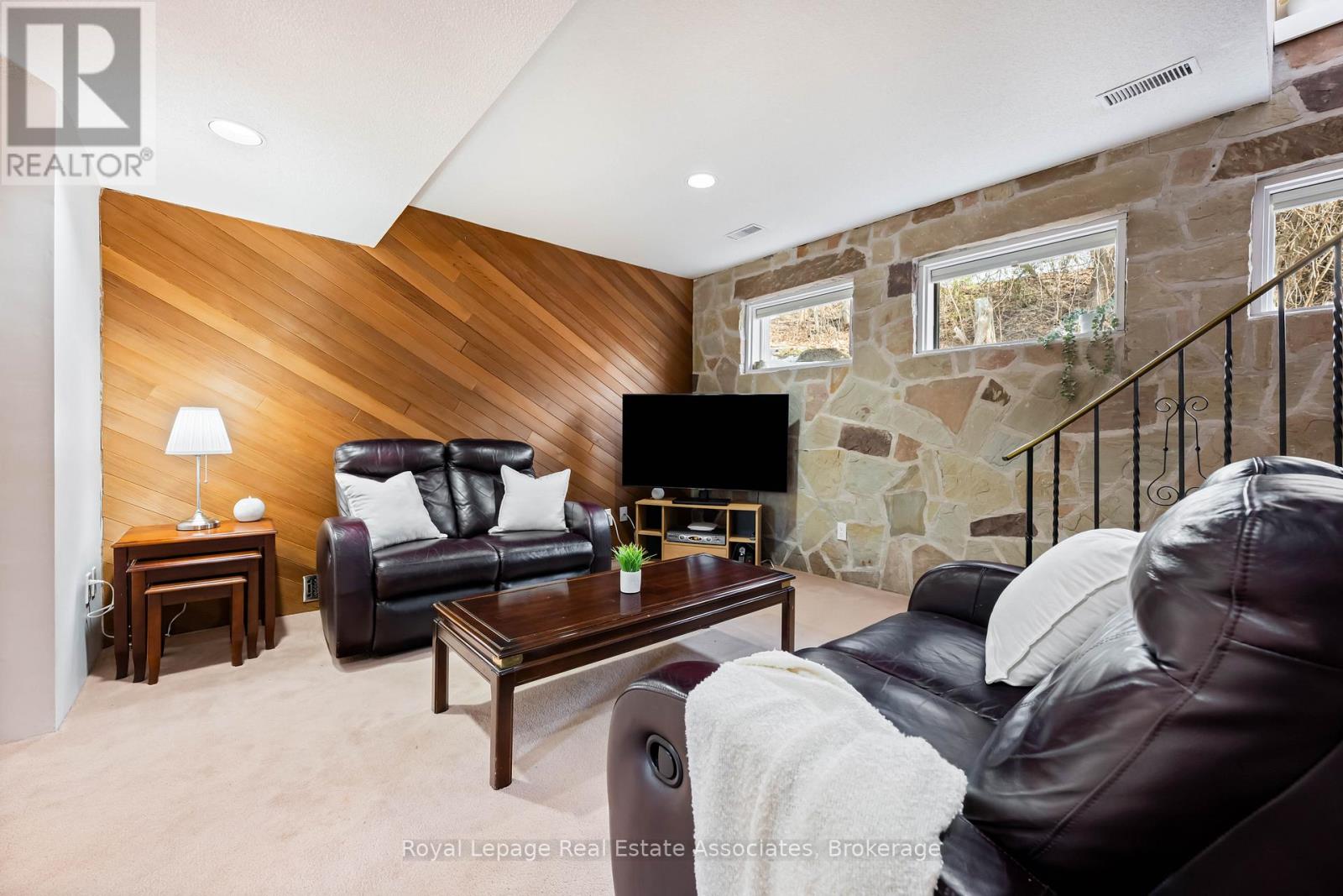 Tucked away on a private drive just minutes from the GO Station, Glen Williams, and Downtown Georgetown, this custom built 4-bedroom home provides 2137 sq ft of exceptional privacy, space, and a true connection to nature without sacrificing the convenience of town living. This is a rare opportunity to own a truly one-of-a-kind property with a beautifully treed .68-acre lot, shared ownership of a 1.096-acre parcel at the front, and breathtaking views of Silver Creek from every window. Designed with family life in mind, the home features four spacious, bright bedrooms, each with large windows showcasing beautiful views of the surrounding landscape. Both the primary and secondary bedrooms open directly onto the wraparound deck, creating seamless indoor-outdoor living. The cozy family room is highlighted by a stunning natural stone wall and gas stone fireplace, making it the perfect place to relax and unwind at the end of the day. The home also offers a large, bright eat-in kitchen with picturesque views of the creek, making it the perfect space for busy morning routines and evening family meals.Beyond the walls, the wraparound deck is the perfect place to start your day with a sunrise coffee and unwind in the evening while watching the sunset over the trees and creek. The expansive yard is perfect for families, giving kids plenty of room to play and explore. This is a place where your kids can truly be kids, spending afternoons exploring the woods, skipping rocks in the creek, or biking along quiet streets. This is more than a home; it's a sanctuary for family life offering a place to grow, play, and relax, all while enjoying the beauty of nature and the convenience of Georgetown just minutes away. (id:4555)