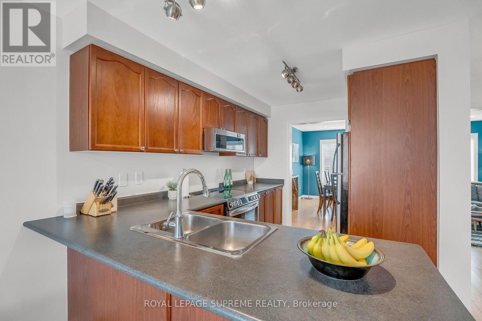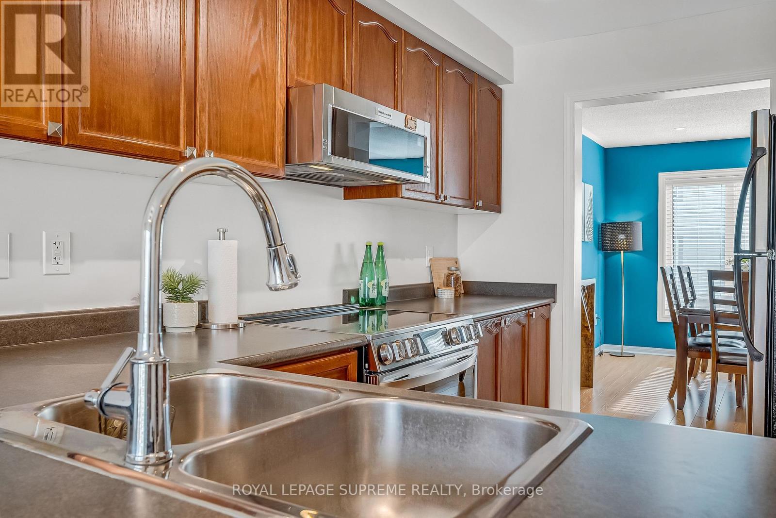 Charming and move-in ready, this beautifully maintained 3-bedroom, 3-bathroom freehold town home in the heart of Georgetown is perfectly suited for your next chapter. Bright and welcoming, the main floor features a spacious combined living and dining area with a breakfast space, along with a well-appointed kitchen complete with stainless steel appliances. Upstairs, the primary bedroom offers a walk-in closet and a private en-suite, while two additional bedrooms provide comfortable living space and overlook the backyard. The finished basement adds valuable living space and features a walkout to a fully fenced, landscaped backyard-perfect for relaxing or entertaining. This home has been thoughtfully upgraded throughout, including EcoChoice triple-pane casement windows, an insulated garage door with opener, water softener, oven/stove, microwave, and range hood, as well as a backyard deck with gazebo. The home has also been freshly painted throughout, including the ceilings.Additional improvements include luxury vinyl plank flooring in the basement, professionally installed electrical outlets, switches, and covers, whole-home LED lighting and fixtures, blinds, shades and curtains, updated fire and carbon monoxide alarms with fire extinguishers, a furnace with humidifier and Ecobee thermostat, and a sliding backyard door with built-in blinds.Low-maintenance living is made easy with low POTL fees and a convenient garage with interior access to the home. Ideally located in a quiet, family-friendly community just minutes from the Georgetown GO Station, schools, shops, and parks. Please refer to the detailed list of upgrades. A true pleasure to show. (id:4555)