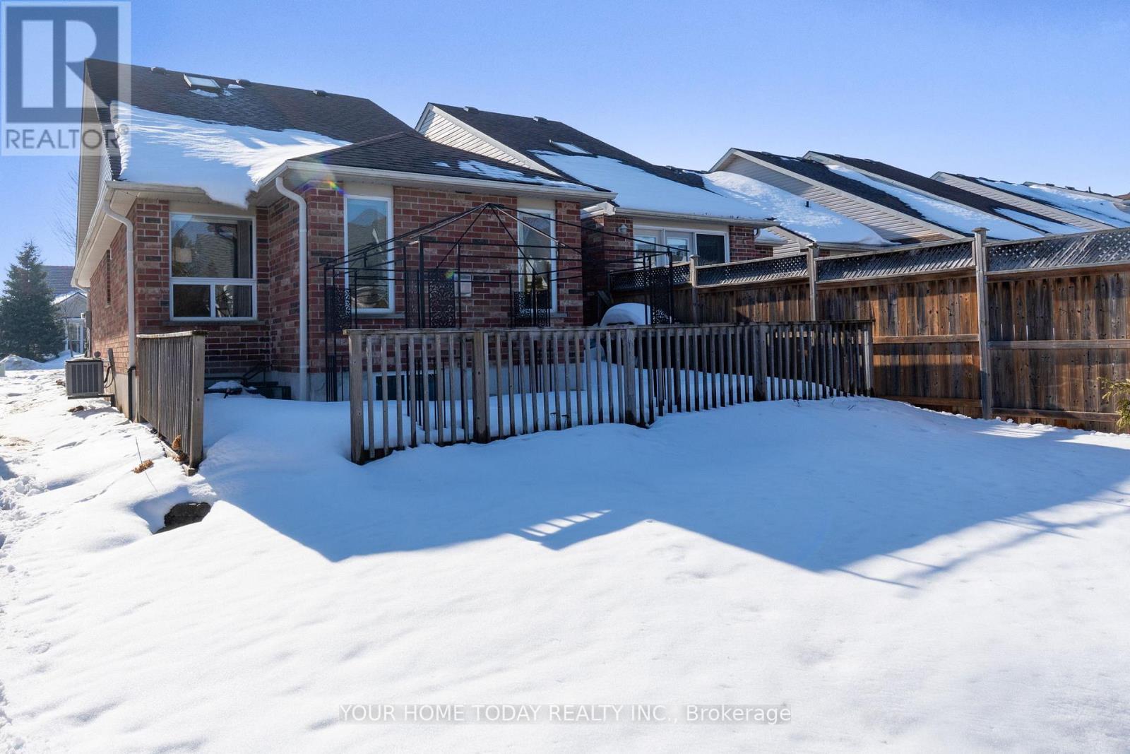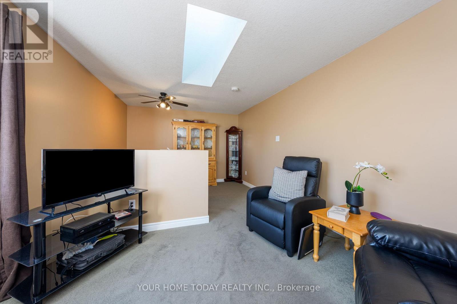 Rarely offered end-unit bungaloft townhouse in a quiet enclave on a sought-after court-perfect for those looking to enjoy the ease of main-floor living without giving up space. This beautifully maintained 2+1 bedroom, 3-bathroom one-owner home showcases pride of ownership throughout. The bright open-concept main level features a well-appointed kitchen overlooking the dining area and a sun-filled living room with soaring vaulted ceilings, cozy gas fireplace and walkout to a large multi-level deck with a private, nicely landscaped backyard-ideal for relaxing or entertaining. The main floor offers two bedrooms including a spacious primary suite with a walk-in closet and 4-piece ensuite, a second full bathroom, convenient main-floor laundry, and direct access to the garage. Upstairs, the versatile loft provides additional living space perfect for a family room, office or reading retreat. The finished lower level extends the home with a generous rec room with a wet bar, a third bedroom or office, a craft room, a 3-piece bathroom, a cold cellar and plenty of storage. Located close to parks, shops, the rec centre, GO station, Prospect Park and scenic Fairy Lake, with easy access for commuters. A wonderful opportunity to enjoy comfortable, low-maintenance living in a fantastic community. (id:4555)