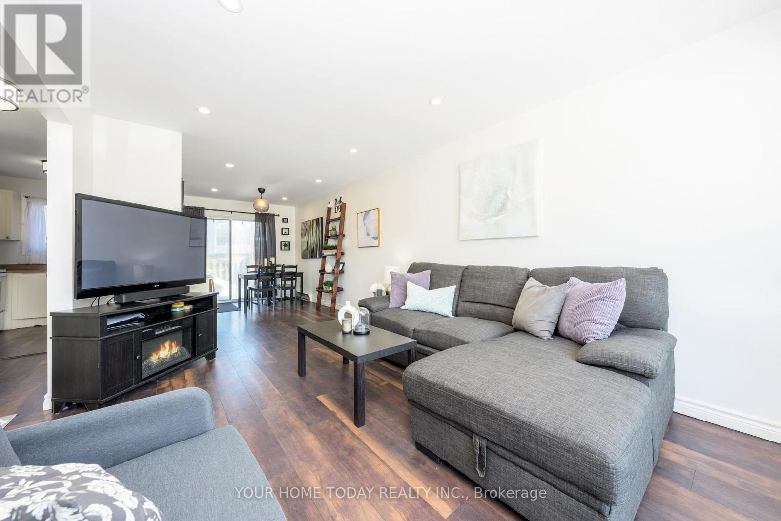 Welcome to this beautifully updated 3-bedroom condo townhouse in the heart of Georgetown - where comfort, style and convenience come together effortlessly. This bright, inviting and move-in-ready home is perfectly positioned within walking distance to schools, mall, restaurants, arena and nearby parks - everything you need is just moments away. Inside, tasteful laminate flooring flows seamlessly throughout the main and upper levels, creating a fresh, modern feel from the moment you step in. The sun-filled kitchen features classic shaker-style cabinetry, neutral finishes and a large window overlooking the fully fenced yard. The open-concept living and dining area is warm and welcoming, enhanced by pot lights that add brightness and ambiance. Whether you're enjoying a quiet evening or entertaining guests, this space feels airy and connected. A walkout from the dining area leads to your private deck and fenced yard ideal for summer barbecues, morning coffee, or relaxing outdoors. Upstairs, a staircase accented with striking wrought-iron balusters leads to three generous bedrooms and a beautifully updated 4-piece bathroom, offering flexible space for family, guests, or a home office. The finished lower level adds even more versatility with a spacious rec room, laundry area and ample storage. Stylish, functional and thoughtfully updated, this is an exceptional opportunity to own a wonderful home in a location that truly makes everyday living easy. (id:4555)