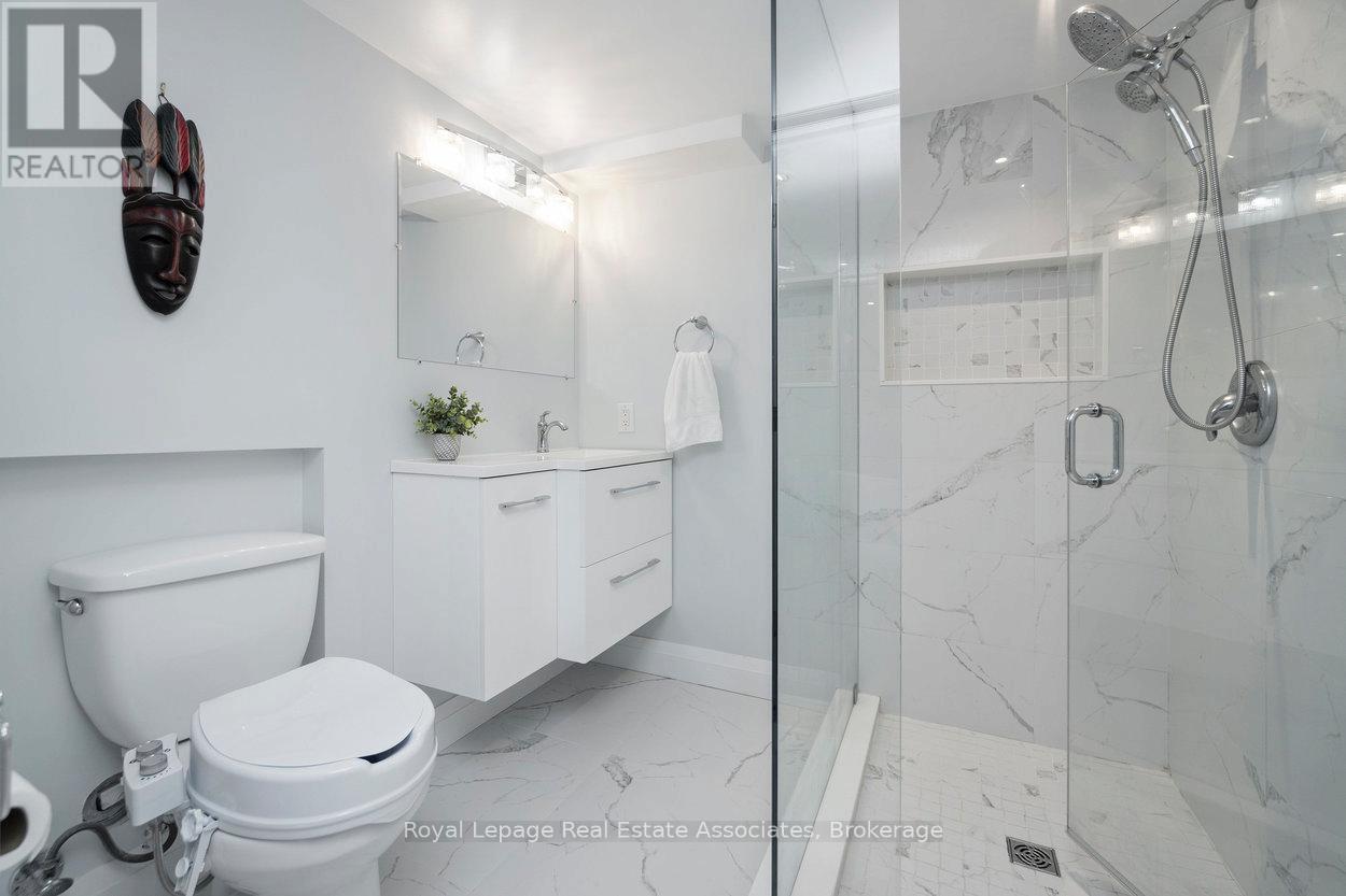 This fantastic family home is completely finished from top to bottom and is bigger than it looks! Located on a quiet, family-friendly street in Acton, close to shopping, the GO Station, trails, parks and more. The main level features a large living/dining combination with beautiful hardwood floors, a bright living room, an office, a 3-piece bathroom and walk-in access from the garage. The eat-in kitchen, with built-in appliances and a ceramic floor, walks out to a beautifully landscaped, fenced-in yard with a stone patio and natural gas line for a BBQ. Upstairs, the home offers a master bedroom and two other good-sized bedrooms, along with a 4-piece bathroom. The lower level is totally finished with a fourth bedroom, a 3-piece bathroom, a huge rec room with above-grade windows and pot lights and offers even more space for relaxation and entertainment. (id:4555)