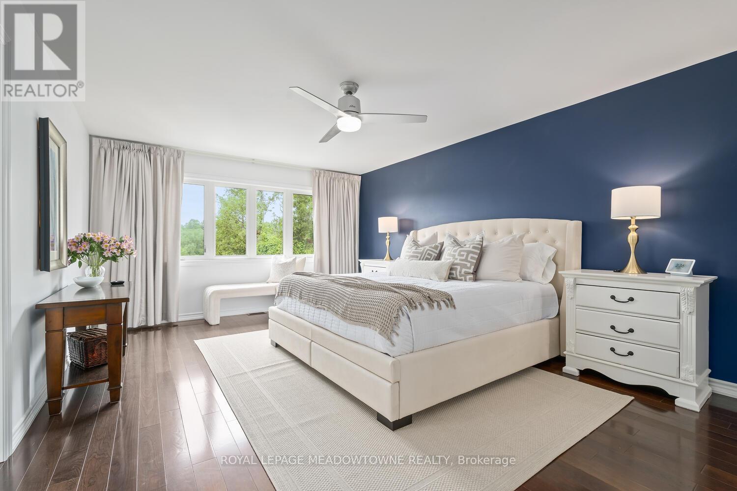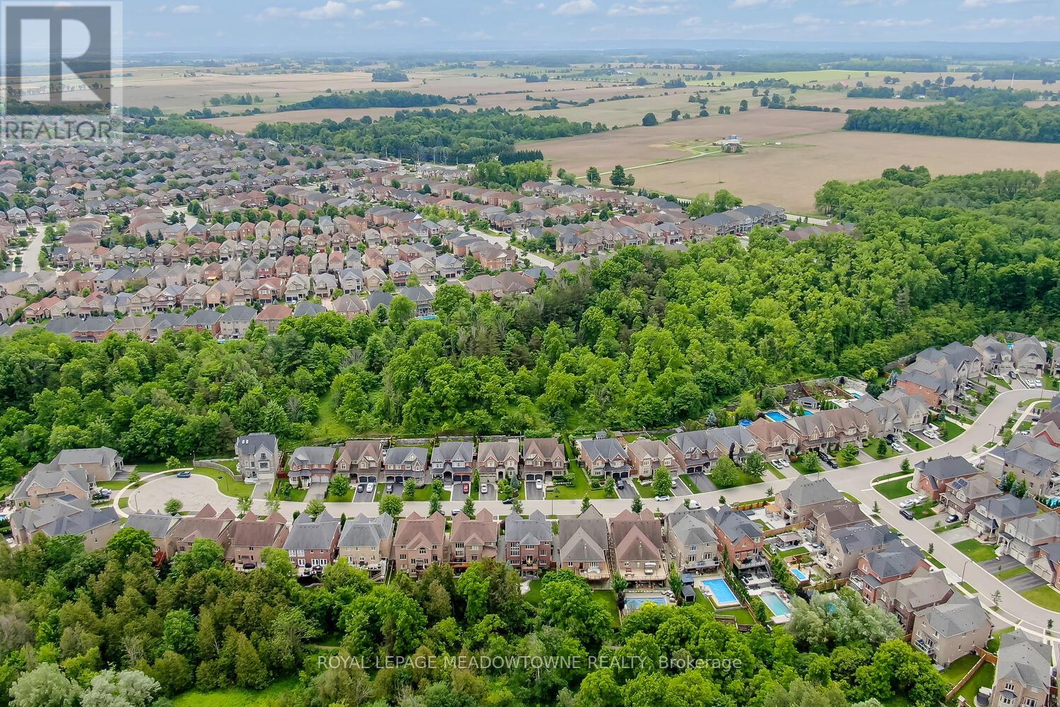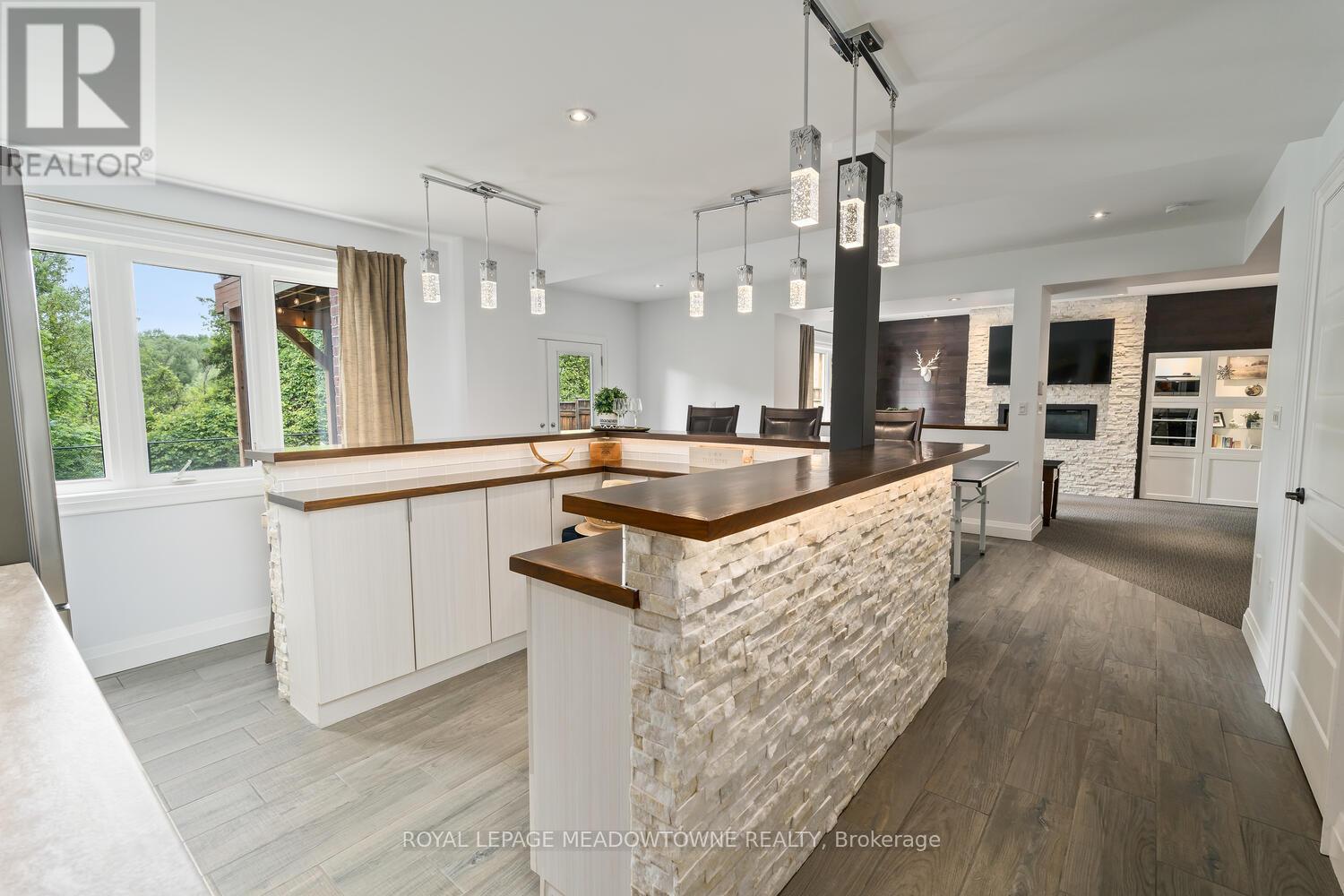 This elegant Energy Star Certified home sits on a premium 50-foot lot backing onto a serene ravine, offering exceptional privacy and scenic views. Surrounded by walking trails, parks, and top-rated schools, and just a short walk to Downtown Georgetown, it also features a pool-sized backyard. The grand foyer with chandelier leads to a versatile office that can serve as a main floor bedroom. With 4,359 sq ft of finished living space, this traditionally designed home includes a fully finished walk-out basement with an additional kitchen and bedroom-ideal for extended family. The main floor living room features 18-foot ceilings, a gas fireplace, hardwood floors, built-ins, and large windows overlooking the ravine. The gourmet Barzotti eat-in kitchen offers granite countertops, stainless steel appliances, a large island, 9-foot ceilings, and a walk-out to the deck, complemented by a formal dining room with coffered ceilings and wainscotting. A powder room and laundry complete the main level. Upstairs, the primary suite offers ravine views, his and hers walk-in closets, and a luxurious 5-piece ensuite. Three additional bedrooms, a 4-piece bathroom, and an open-concept office overlooking the living room complete the upper level. The walk-out basement features a cozy family room with a stone gas fireplace, backyard access, a kitchen/bar area that can easily be converted into a kitchen, 4-piece bath with in-floor heating, ample storage, and a cantina. A perfect blend of elegance, space, and functionality in a sought-after executive neighbourhood. (id:4555)