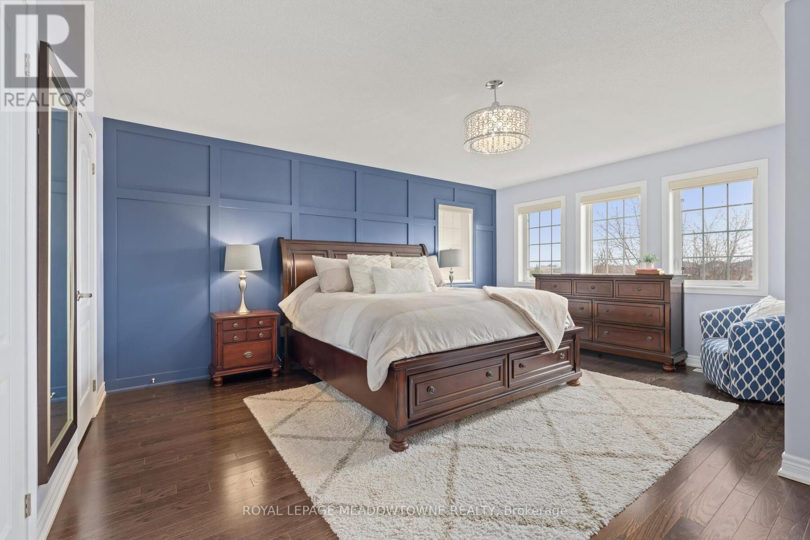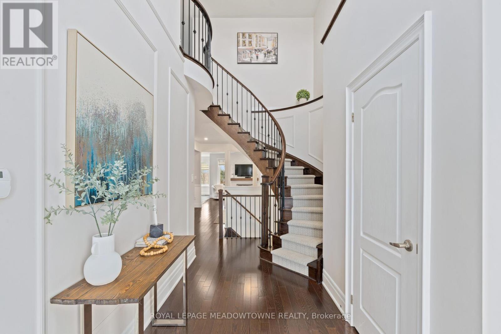 This stunning Georgetown South home, perfectly positioned on a premium lot where nature becomes part of your everyday life. From the moment you arrive, the custom flagstone porch and grand double door entry set the tone for what awaits inside. Step into a soaring foyer that opens into a beautifully finished home, where every detail has been thoughtfully curated. The heart of the home is a magazine worthy, fully renovated kitchen designed to impress, flowing seamlessly into the family room, complete with a striking stone gas fireplace and expansive views of the water beyond. With 4 spacious bedrooms and 4 bathrooms, including a dream primary retreat with a luxurious ensuite, this home offers both comfort and sophistication. Hardwood floors, custom ceilings, crown moulding, and pot lights add warmth and elegance. The finished basement with a custom fireplace provides the perfect space for a home office or quiet retreat, adapting effortlessly to your lifestyle. Step outside to a spectacular two-tier deck wrapped in natural stone, extending around the side and front of the home-an ideal setting for entertaining or simply unwinding while surrounded by peaceful views and the sounds of nature. Located just steps to scenic walking trails, the Gellert Community Centre, shopping, and convenient commuter routes, this home blends tranquility with everyday convenience. With no sidewalk, there's parking for up to 6 vehicles. This is more than a home, it's a lifestyle you'll fall in love with. (id:4555)