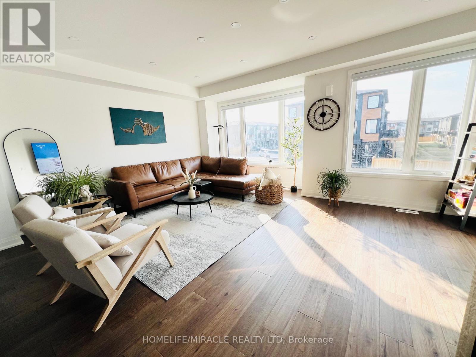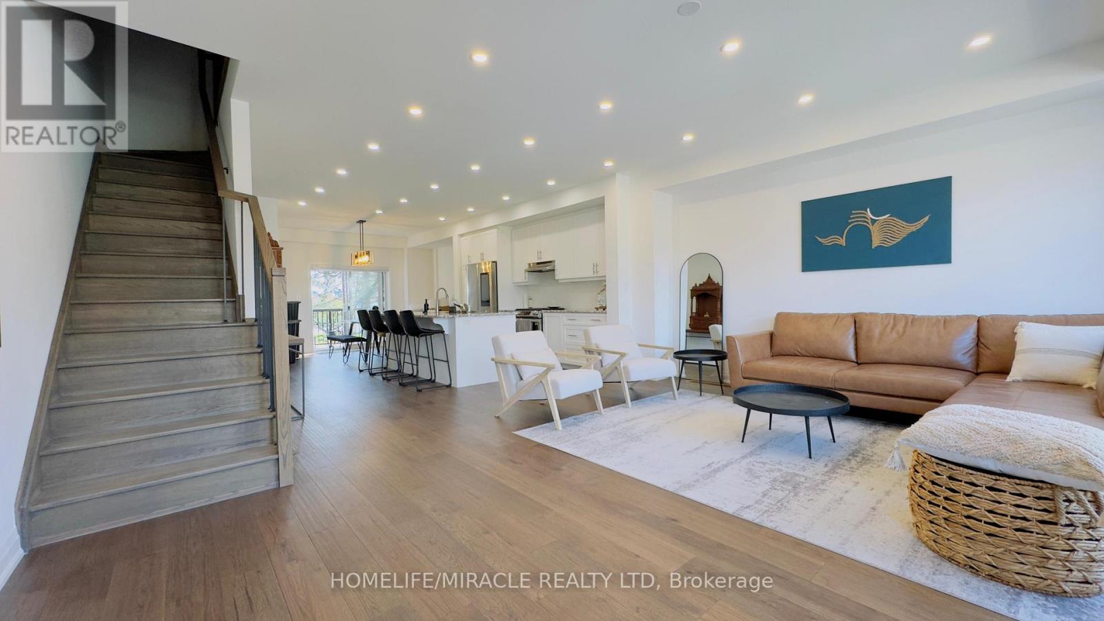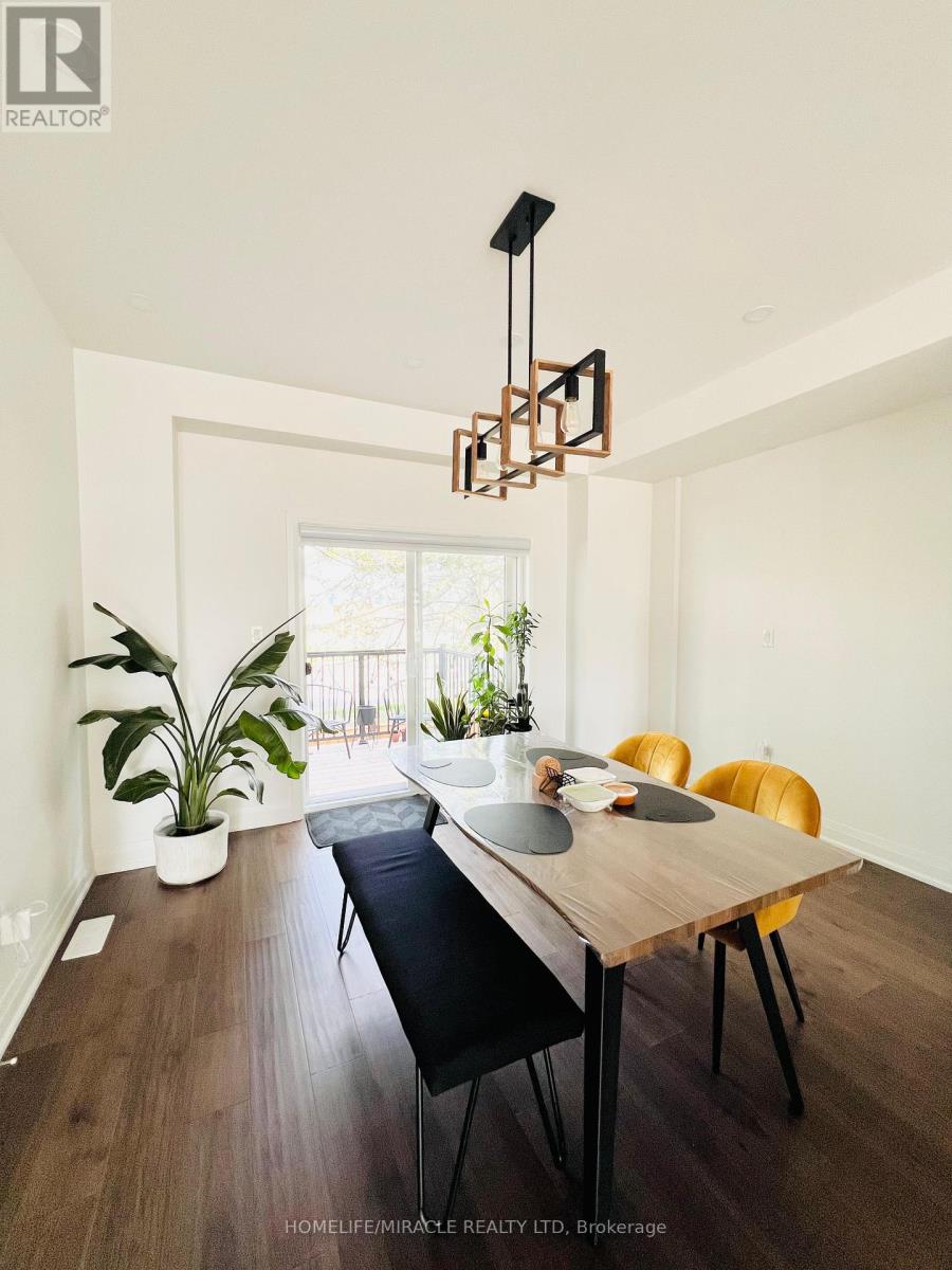 Discover your dream home in the prestigious Trafalgar Square development of Georgetown! This nearly new (1.5 years old) luxury freehold townhome blends contemporary sophistication with practical design, offering the best in comfort & style offering nearly 2000sqft. Ideally located in a highly desirable neighbourhood steps from the golf course, city hall, and backing onto peaceful green space, this home promises both convenience and tranquillity. The "Wildwood" model is the largest interior unit available, featuring an open-concept layout that's bathed in natural light. Enjoy high ceilings, large windows, & an effortless flow from the spacious living area to the gourmet kitchen & dining area-perfect for both everyday living and entertaining. With over $50,000 in premium upgrades, this home includes 3 spacious bedrms, 3 elegant bathrms, and a walk-out den/family rm on the main level that leads to your private backyard. Whether you're unwinding or hosting guests, this home has it all. Don't miss out-schedule your private tour today! Upgrades include: 1. Large Plank Hardwood Flooring throughout the main floor 2. Large upgraded natural stone Island with electrical outlets on both sides & a Large one-compartment stainless steel sink with a premium chrome faucet 3. Premium soft closing hydraulic Kitchen Cabinets with large 4" chrome handles 4. Stone countertops in washrooms with premium Moen Faucets 5. Pot lights (5CT conditions) 2700k to 6000k colour-changing Pot lights as per your mood & weather 6. All Wi-Fi-enabled latest Smart Samsung Appliances for seamless connectivity through smartphone 7. Smart Ecobee Thermostats with Sensors. 8. Brand New Water Softener 9. Hardwired front and back cameras from Defender Guard Security, in addition to the Ecobee Front Doorbell Camera. 10. 4" Large Blackout Zebra Blinds for added privacy throughout 11. Gas hookup for BBQ on the deck 12. Occupancy-activated front passage lights 13. Full motion (Swivel/Tilt) TV wall mount up to 85\ (id:4555)