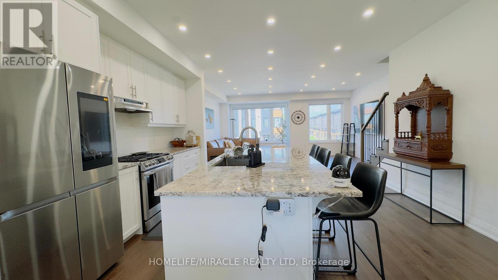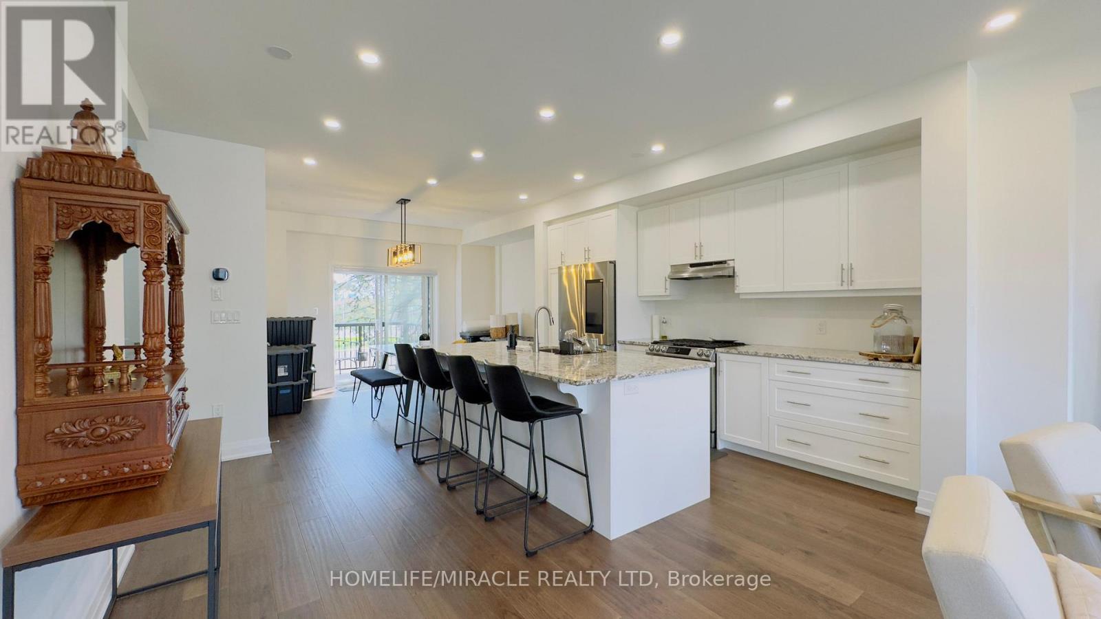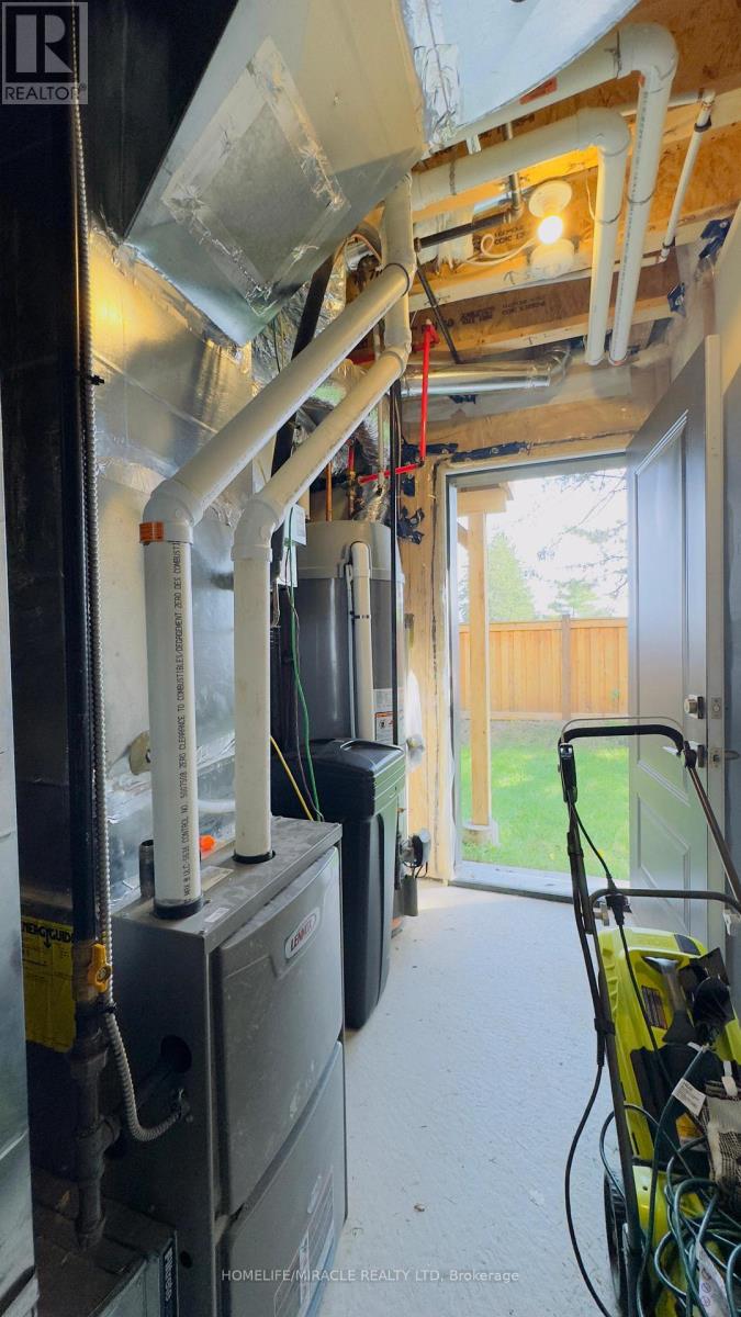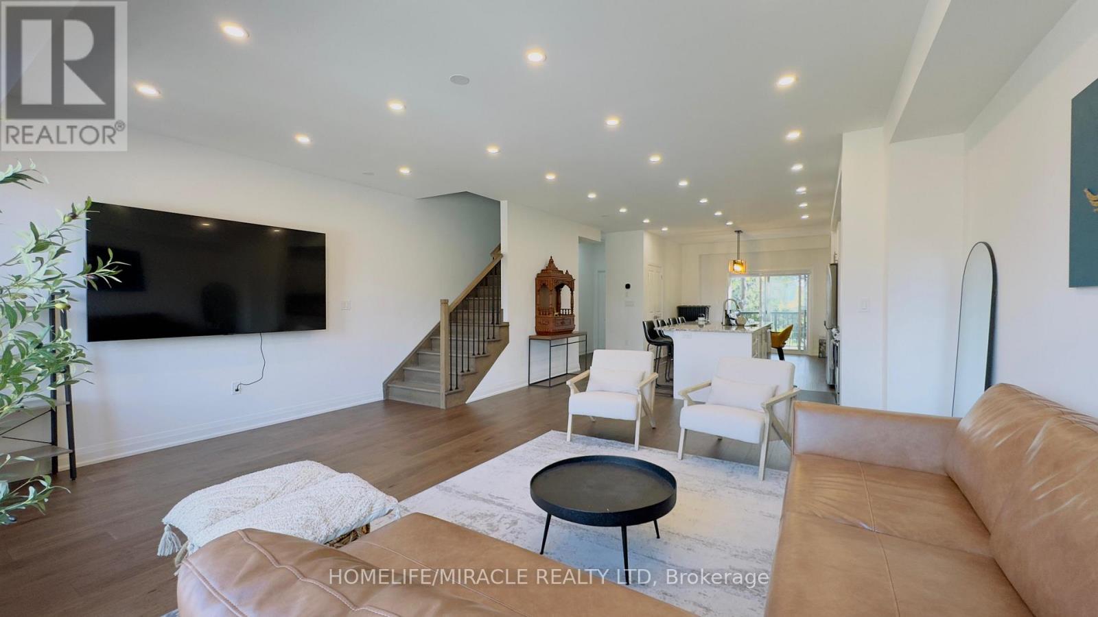 Discover your dream home in the prestigious Trafalgar Square development of Georgetown! This nearly new (1.5 years old) luxury freehold townhome blends contemporary sophistication with practical design, offering the best in comfort & style offering nearly 2000sqft. Ideally located in a highly desirable neighbourhood steps from the golf course, city hall, and backing onto peaceful green space, this home promises both convenience and tranquillity. The "Wildwood" model is the largest interior unit available, featuring an open-concept layout that's bathed in natural light. Enjoy high ceilings, large windows, & an effortless flow from the spacious living area to the gourmet kitchen & dining area-perfect for both everyday living and entertaining. With over $50,000 in premium upgrades, this home includes 3 spacious bedrms, 3 elegant bathrms, and a walk-out den/family rm on the main level that leads to your private backyard. Whether you're unwinding or hosting guests, this home has it all. Don't miss out-schedule your private tour today! Upgrades include: 1. Large Plank Hardwood Flooring throughout the main floor 2. Large upgraded natural stone Island with electrical outlets on both sides & a Large one-compartment stainless steel sink with a premium chrome faucet 3. Premium soft closing hydraulic Kitchen Cabinets with large 4" chrome handles 4. Stone countertops in washrooms with premium Moen Faucets 5. Pot lights (5CT conditions) 2700k to 6000k colour-changing Pot lights as per your mood & weather 6. All Wi-Fi-enabled latest Smart Samsung Appliances for seamless connectivity through smartphone 7. Smart Ecobee Thermostats with Sensors. 8. Brand New Water Softener 9. Hardwired front and back cameras from Defender Guard Security, in addition to the Ecobee Front Doorbell Camera. 10. 4" Large Blackout Zebra Blinds for added privacy throughout 11. Gas hookup for BBQ on the deck 12. Occupancy-activated front passage lights 13. Full motion (Swivel/Tilt) TV wall mount up to 85\ (id:4555)