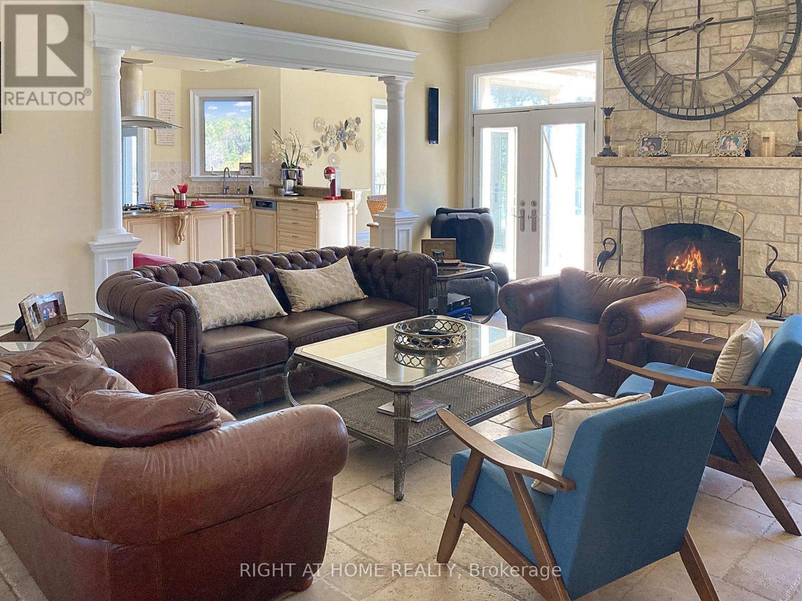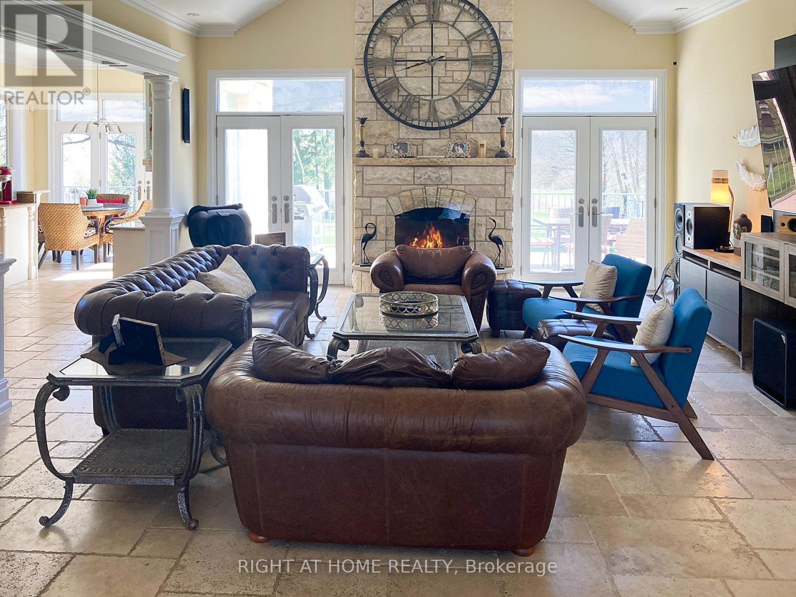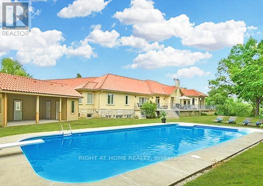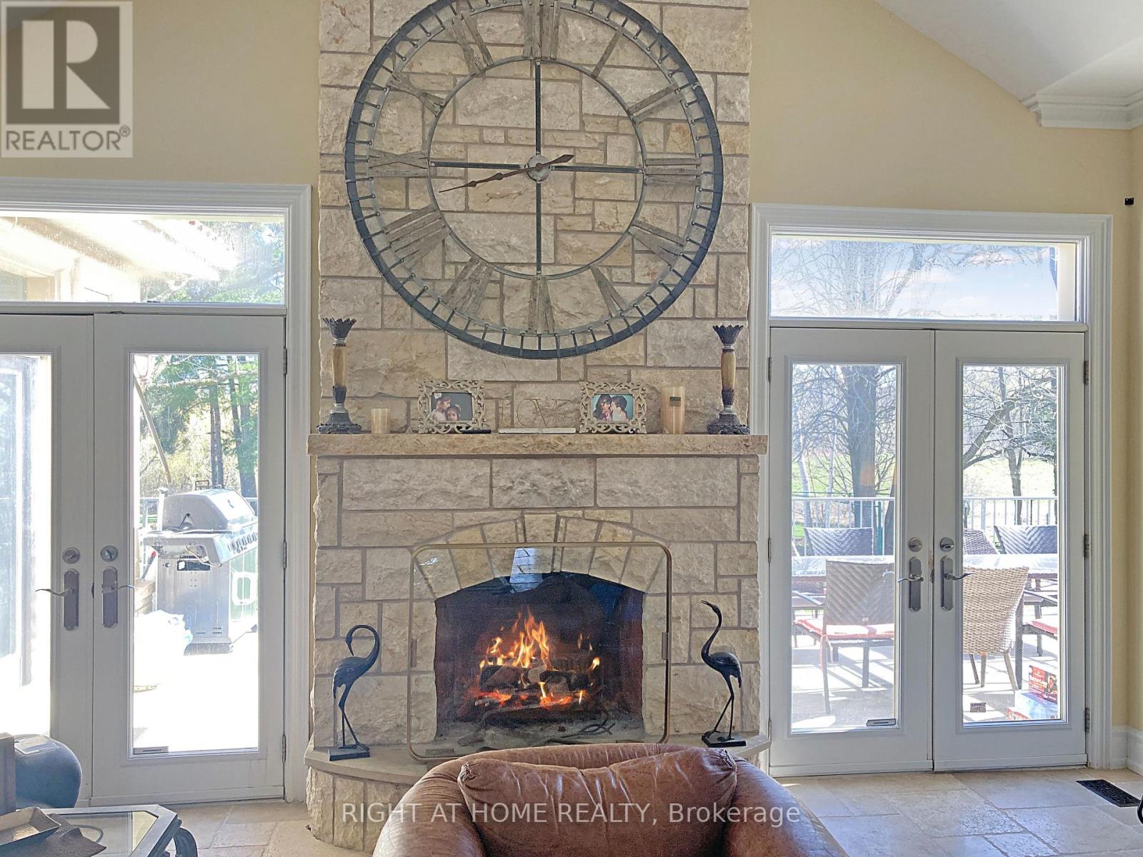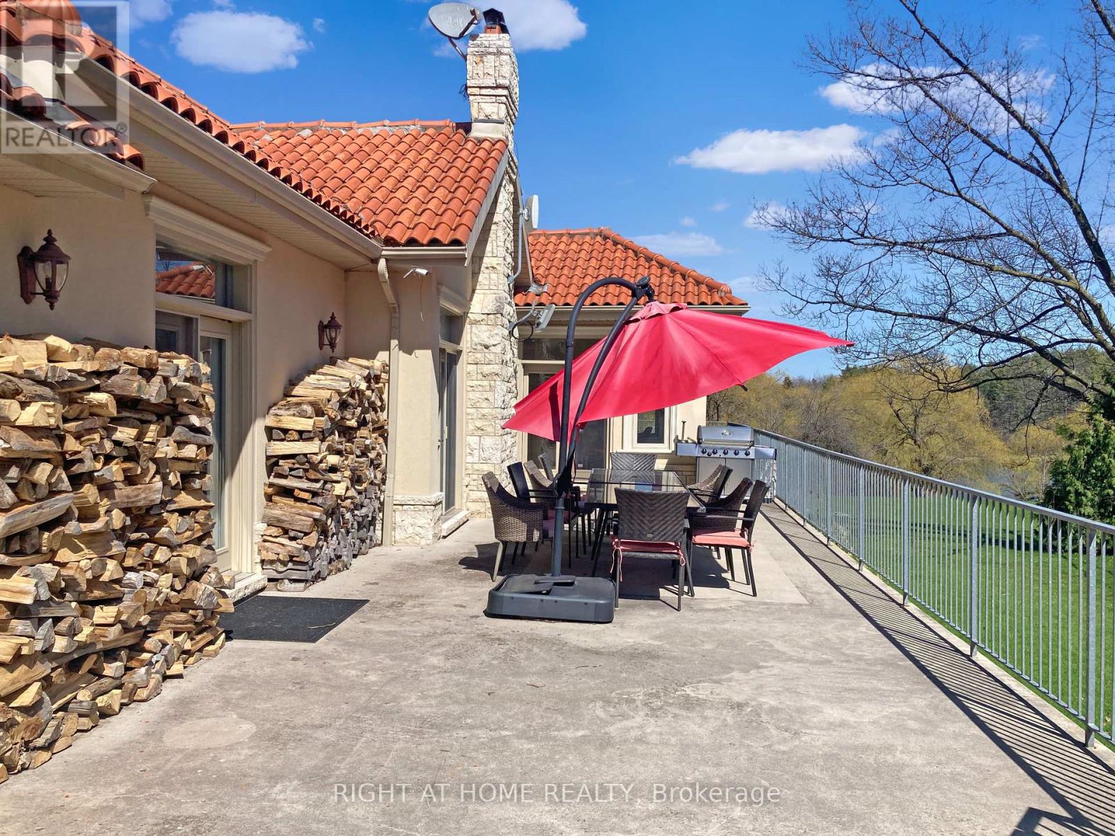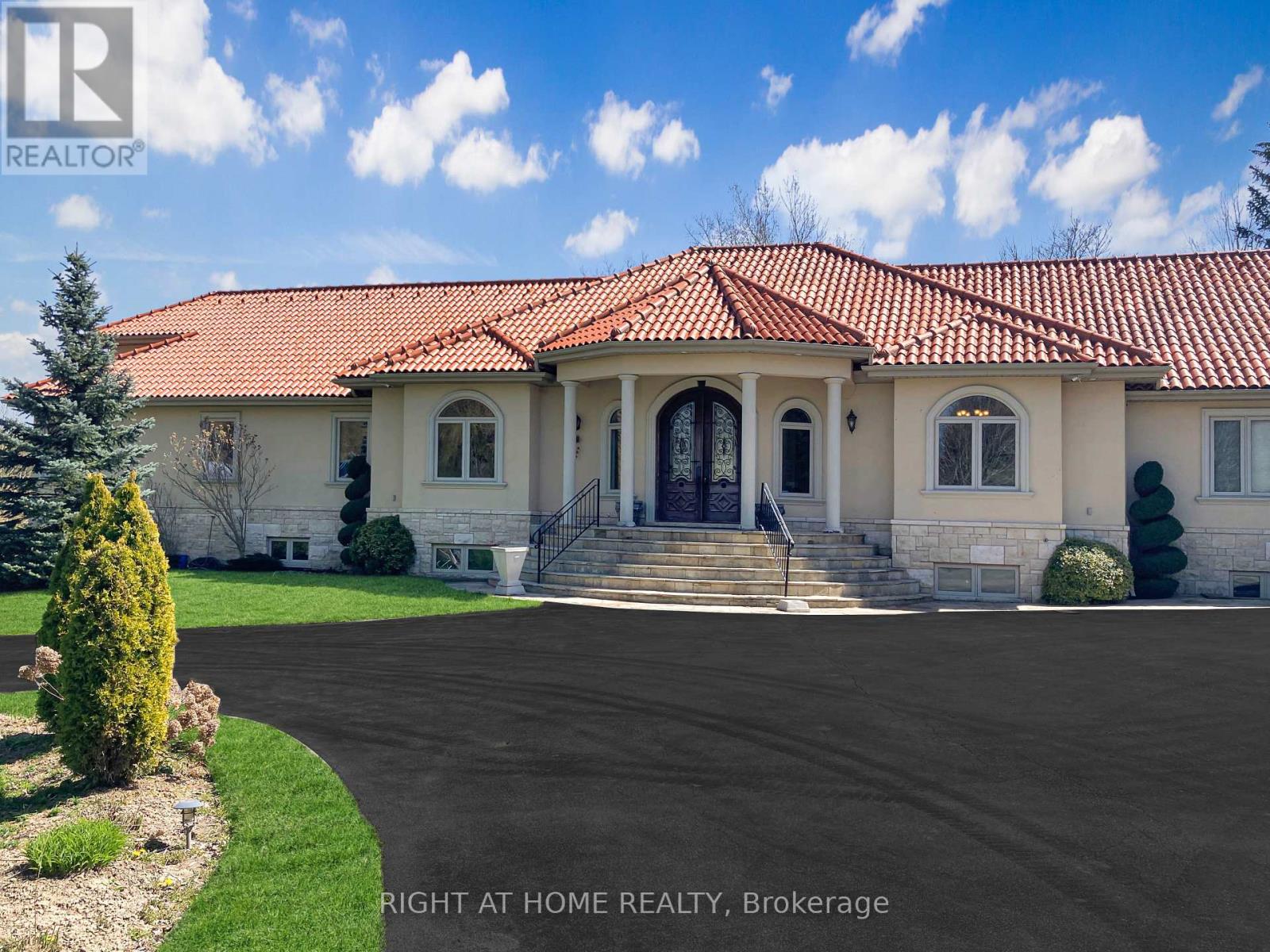 Your personal paradise tucked away amidst the beauty of Terra Cotta - a stunning 11-acre parcel enhanced by a nearly-2-acre spring-fed private lake and 1,400 ft of shoreline teeming with wildlife. How fitting that this Spanish-style raised-ranch also boasts a beautiful terra cotta tile roof. Step into luxury as you enter the large open concept foyer with adjoining family room with 12' ceilings and a floor-to-ceiling stone fireplace, perfect for cozy evenings. This expansive home offers 12 rooms on the main floor, including 4 large bedrooms, 3 with spacious ensuites, for a total of 5 baths. Classic travertine flooring throughout the main level, complemented by hardwood flooring in the living room, dining room, and study, exuding elegance at every turn. Multiple walkouts on the main level take you to a large deck overlooking an expansive lawn gently sloping down to the private lake, creating a picturesque setting for relaxation and entertainment. A brightly lit basement bedroom with an ensuite and a private walkout to the backyard, provides a peaceful retreat for guests, family members or as a nanny suite. Experience comfort and efficiency with a high-end, dual-redundant in-floor radiant heating system that heats the entire home and the 4-car garage. Enjoy top to bottom warmth even on the coldest days while reducing costs and promoting an eco-conscious lifestyle. Unwind with family and friends by the freshwater pool, equipped with everything needed for conversion to saltwater. The partially finished basement with 10' ceilings offers endless possibilities for customization to suit your lifestyle and preferences. Welcome to your dream home and to rural serenity. Welcome to luxury meeting tranquillity. And all this is just 10 minutes away from key amenities in downtown Georgetown, 8 minutes from Northwest Brampton and 30 minutes from Pearson Airport. (id:4555)