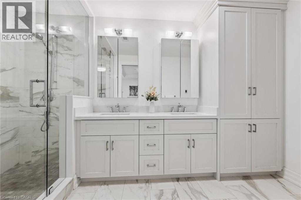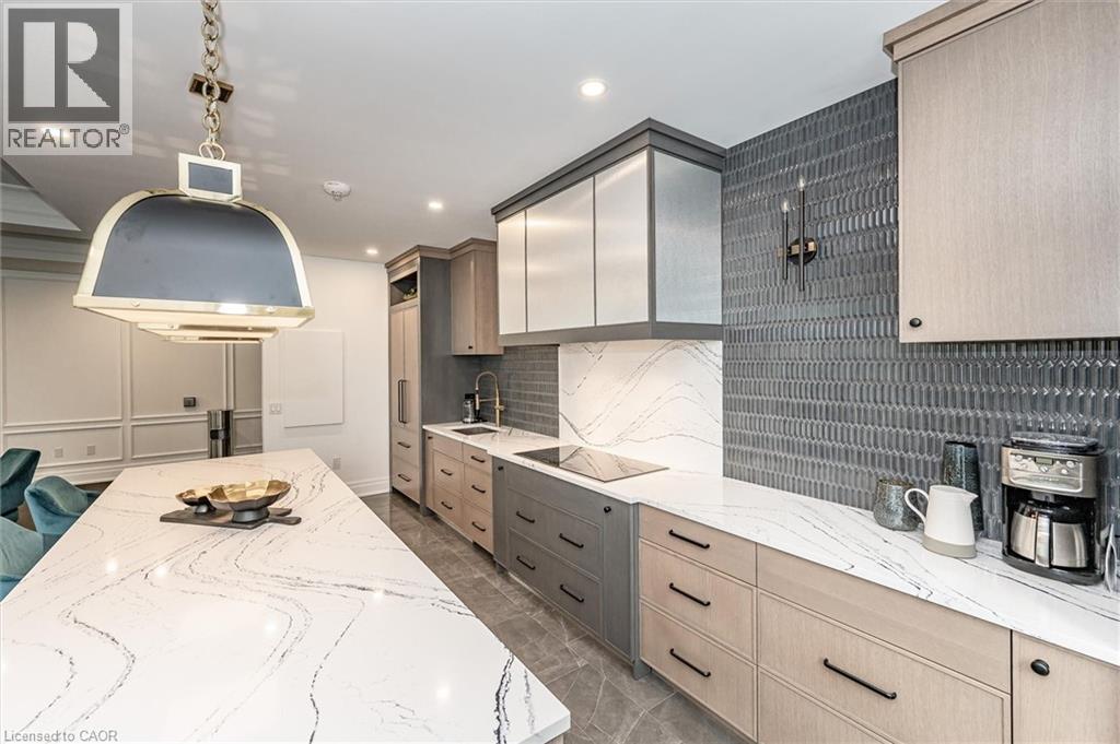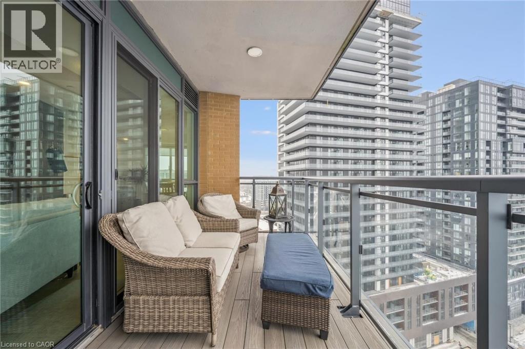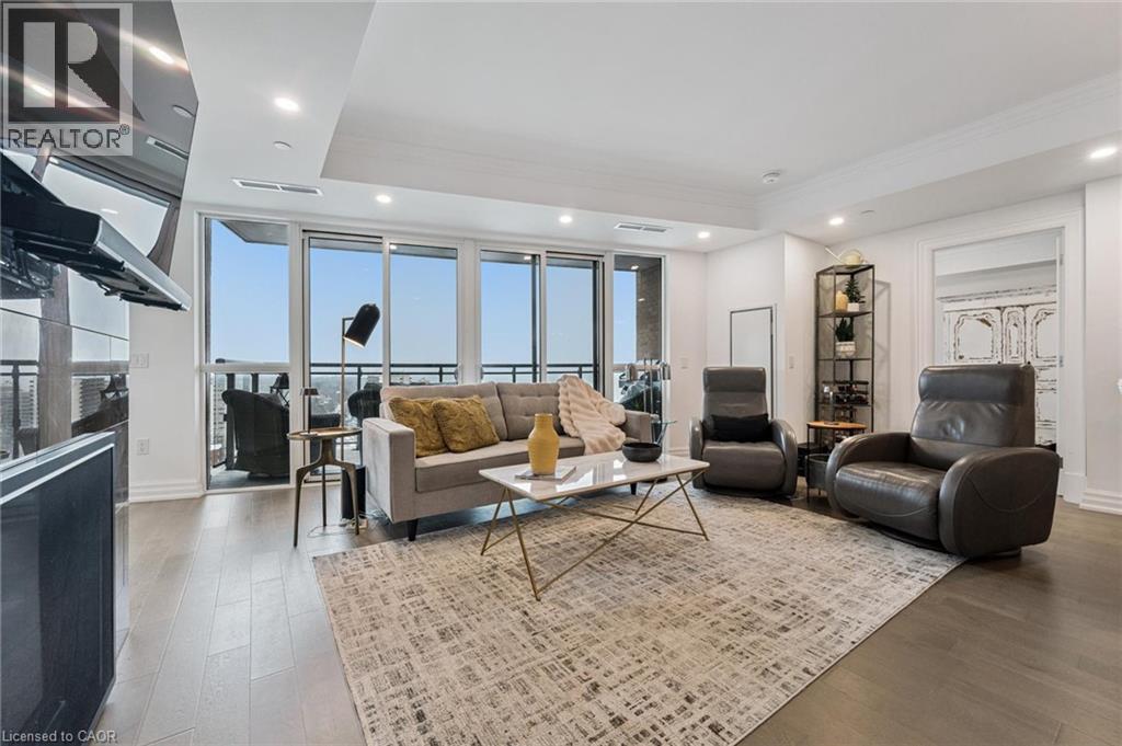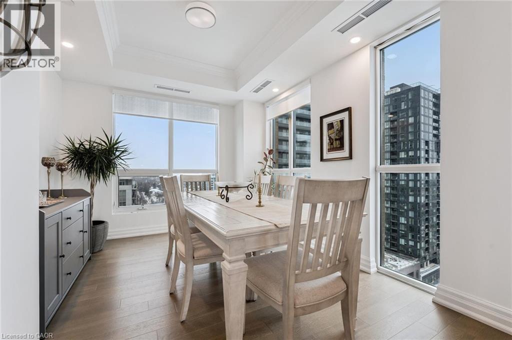 Experience refined lakeside living at Bridgewater Private Residences. This 1,275 sq. ft. corner suite offers a great layout with sweeping views of Lake Ontario and the Burlington–Toronto skyline. The floor plan includes two spacious bedrooms, each with its own ensuite bathroom and heated floors, as well as a separate dining room that can also serve as an office/den or additional bedroom, study, or fitness space. The upgraded kitchen includes Thermador appliances, a five-burner gas cooktop, upgraded large island with additional lower cabinet storage, and a layout designed to capture the lake views. The living and dining areas offer generous space for multiple furniture configurations, with an upgraded large 36” gas fireplace, perfect for warm winter evenings and direct access to the balcony equipped with a gas line for a barbecue and upgraded maintenance free, custom balcony decking from Condo Kandy. Additional features include automatic Hunter Douglas blinds, in-suite laundry, large closets, and floor-to-ceiling windows. Residents enjoy a collection of on-site amenities, including an indoor pool, two fitness rooms, a rooftop courtyard, games room, party room, 24-hour concierge, bike storage, and valet visitor parking. The suite also includes two parking spaces, with the option for EV charging installation. Bridgewater Private Residences offers a sought-after waterfront lifestyle in downtown Burlington with convenient access to shops, restaurants, parks, and the lakefront. (id:4555)