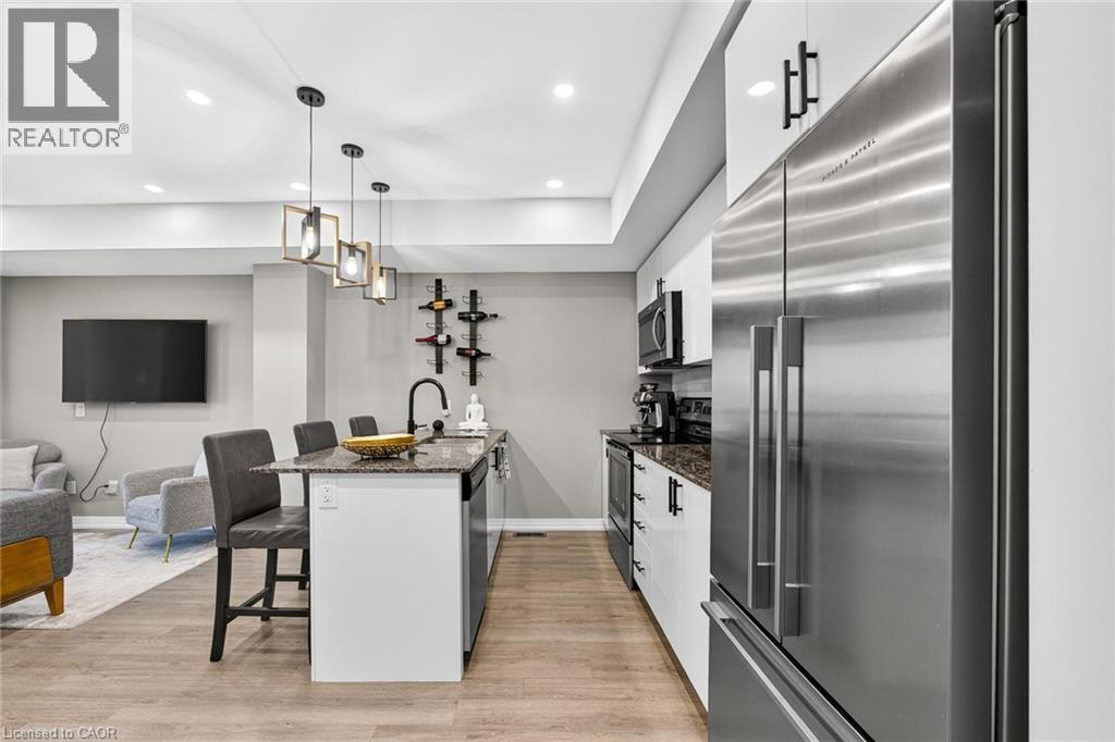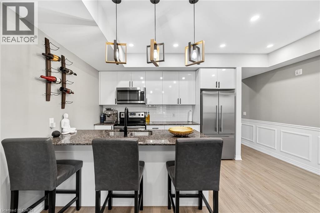 This fantastic UPGRADED stacked townhouse offers 2 spacious bedrooms with 2 full washrooms and 1 half bathroom on the main floor. Located in the highly sought after Dempsey neighbourhood, this unit boasts over 1000sqft of living space on the main floor. Step into the living space combined with the kitchen for an open concept main level filled with natural light flowing through the Juliet balcony. Upgraded light fixtures, and wainscotting, and granite countertops add another level of character and elegance. The lower level features 2 bedrooms with large windows, upgraded soundproof wall panels, 2 full washrooms, and in-suite laundry. This home is move in ready and steps from restaurants, schools and easy access to highways. (id:4555)