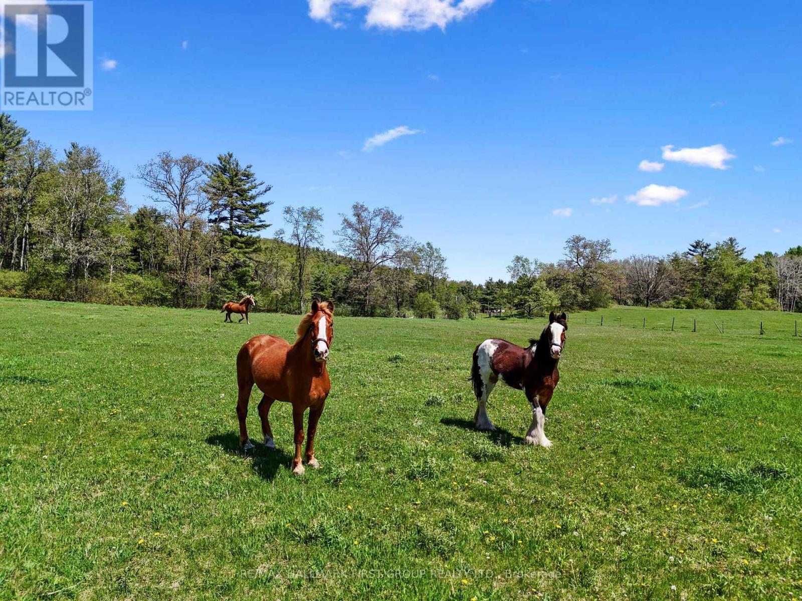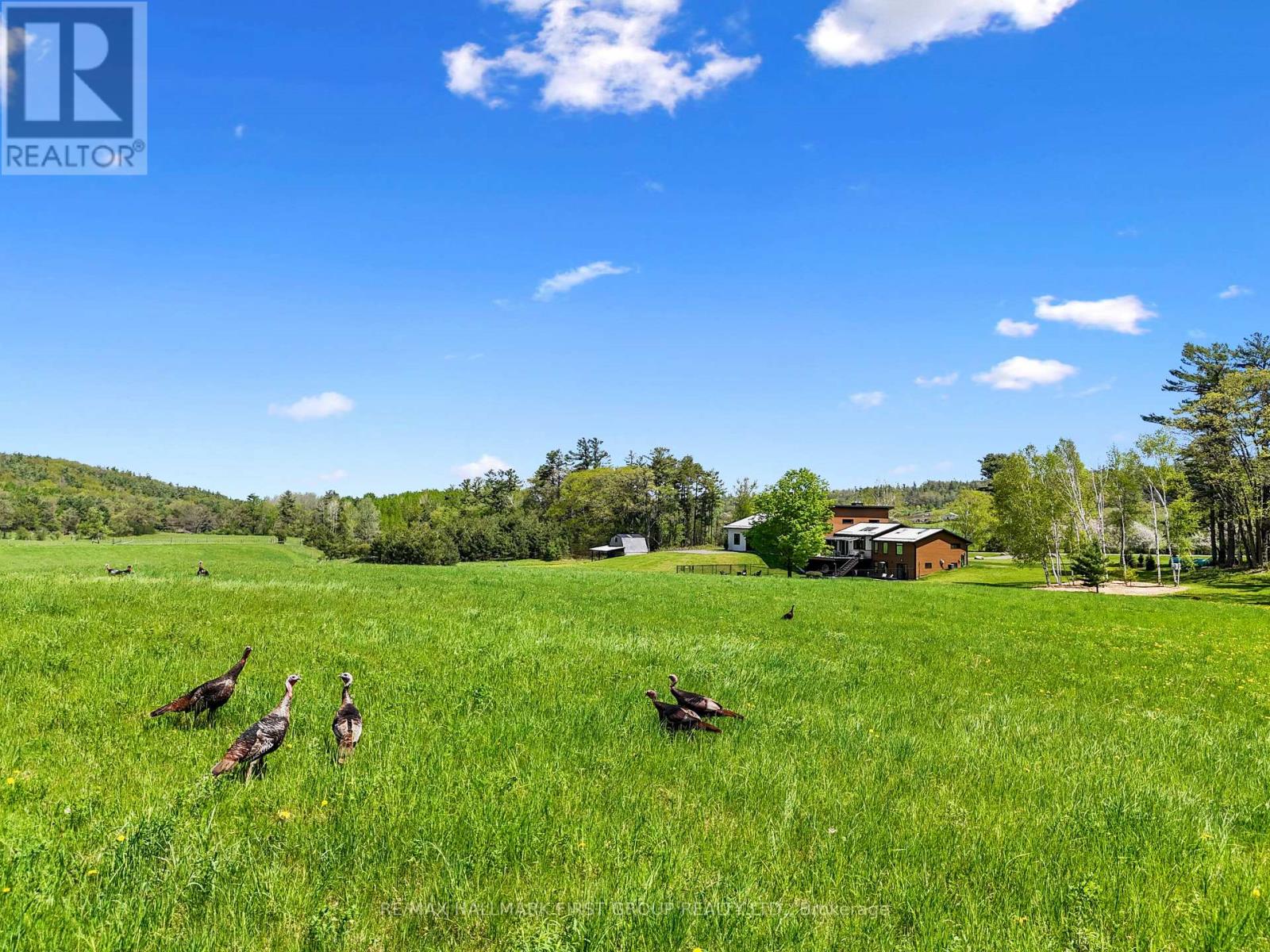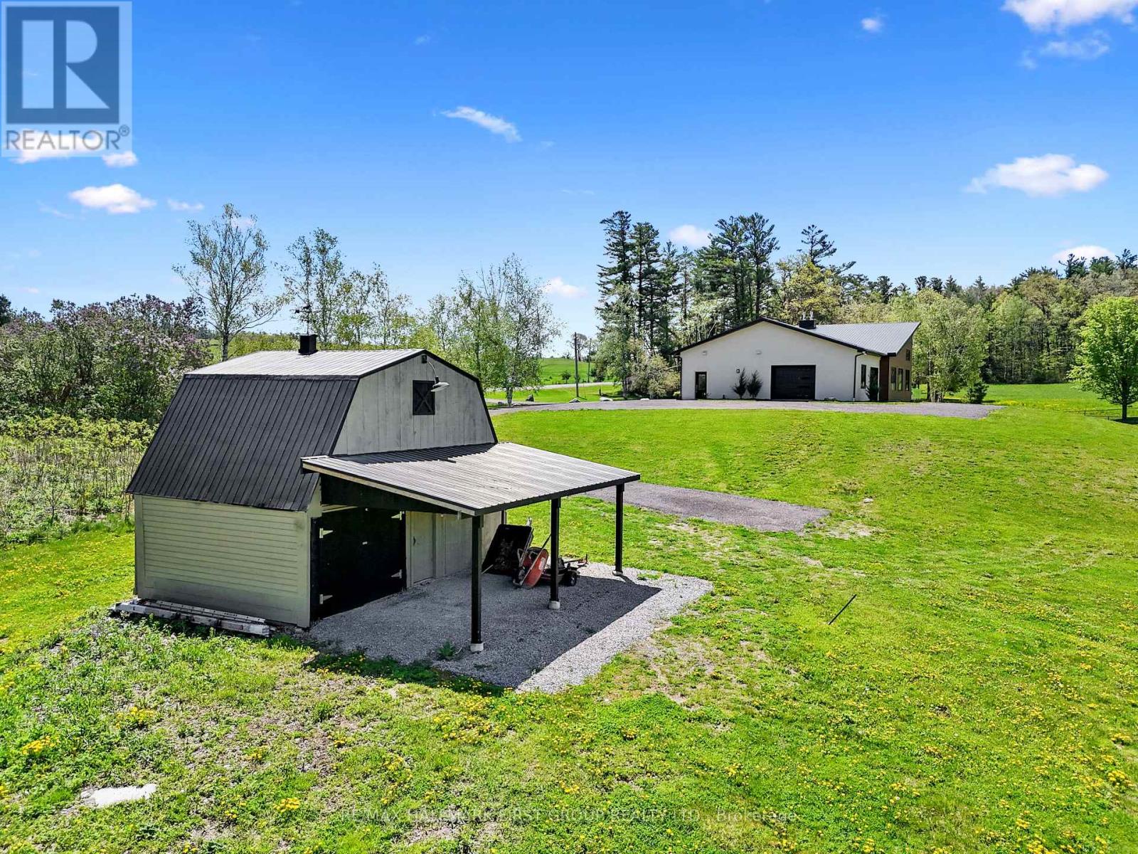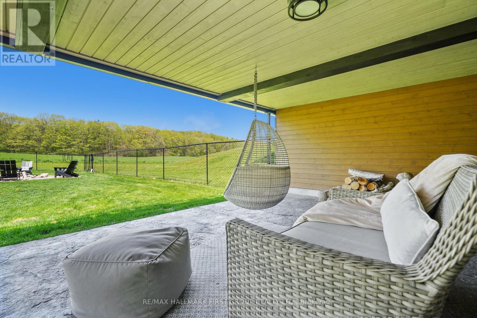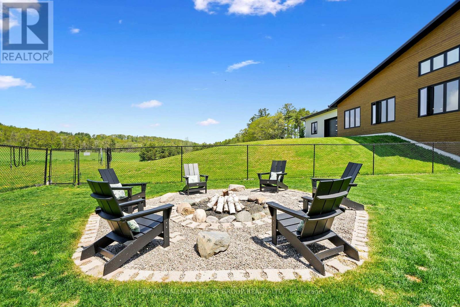 Set on a sprawling 23-acre estate, this striking modern residence exemplifies the perfect balance between contemporary elegance and rural serenity. Every detail has been thoughtfully curated, blending sleek architectural design with high-performance construction, including efficient ICF walls and radiant heated concrete flooring. Step into a grand, open-concept living area defined by cathedral ceilings and a dramatic wall of windows. A double-sided Napoleon propane fireplace anchors the space, connecting the living room to a sophisticated dining area adorned with modern lighting and walkout to the second-level deck ideal for outdoor entertaining. Sunlight pours into the kitchen through oversized windows and skylights, offering breathtaking views of the rolling countryside beyond and showcasing top-tier Jenn-Air appliances, striking Dekton countertops and a waterfall island with a breakfast bar. Resort-style living awaits in the private attached oasis. A 14x24 heated indoor saltwater pool, soaring 20-foot ceilings, expansive windows, a hot tub, and space for a lounge or home gym create an oasis-like experience, ideal for year-round relaxation and entertaining. The primary suite is a tranquil retreat featuring a walk-in closet and spa-inspired ensuite with dual vanity, freestanding soaker tub, and glass shower enclosure with steam shower. An additional bedroom and two bathrooms round out the level. The finished lower level adds flexible living space, including a sprawling bedroom suite with sitting area, semi-ensuite bath, and walkout to a covered patio. A massive recreation room with a walk-in closet offers potential for a future fourth bedroom. Enjoy a lower covered patio area, fenced yard, and firepit area, perfect for summer nights under the stars. Additional highlights include a radiant heated 4-car garage and a 16x24 barn for versatile use. This one-of-a-kind property is the pinnacle of modern rural luxury. Just under 15 minutes to Cobourg and Highway 401. (id:4555)